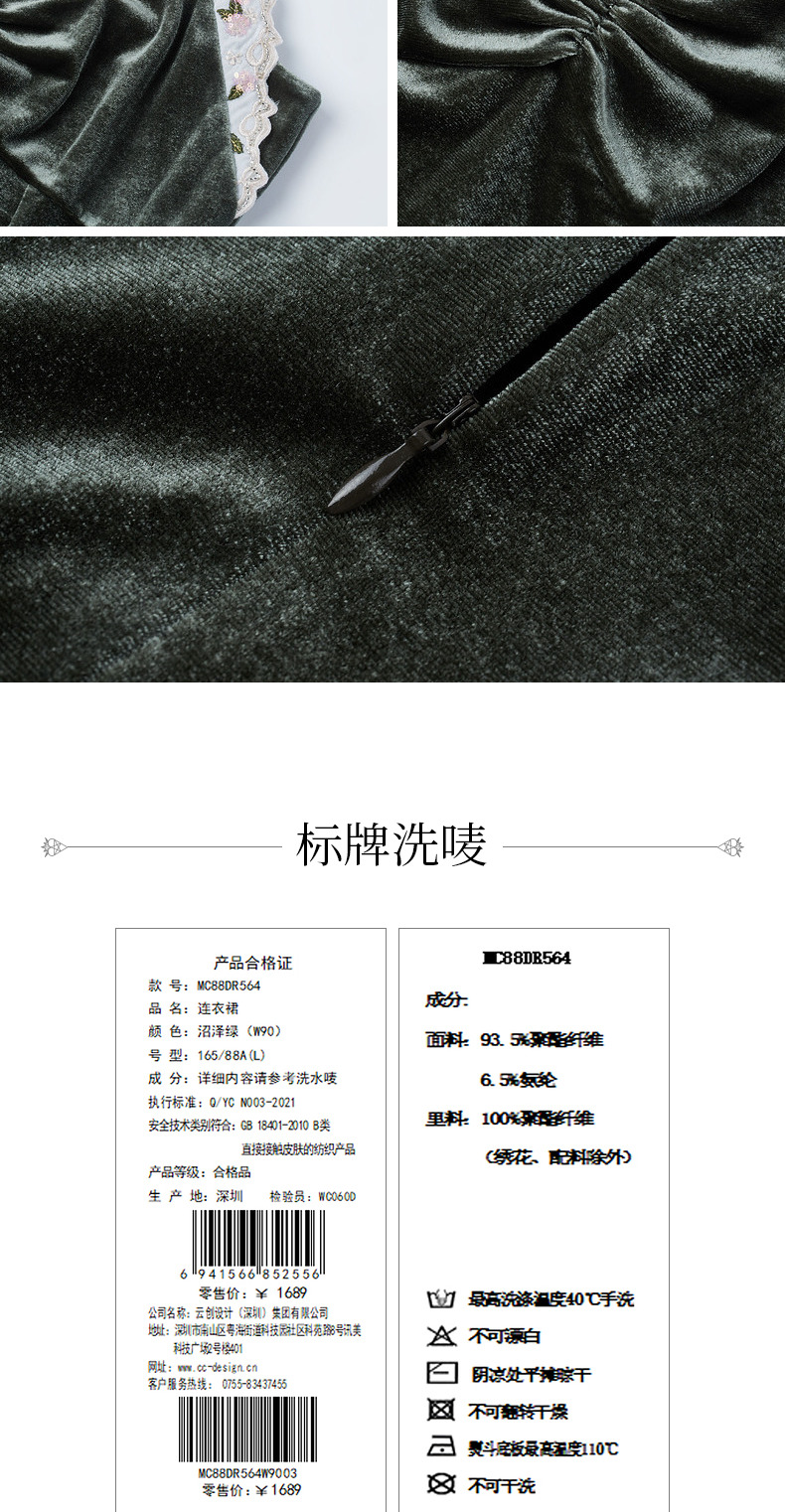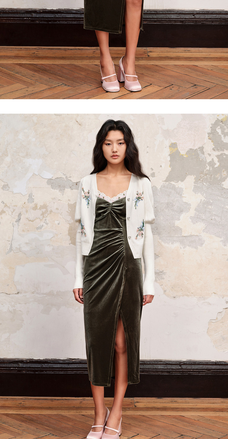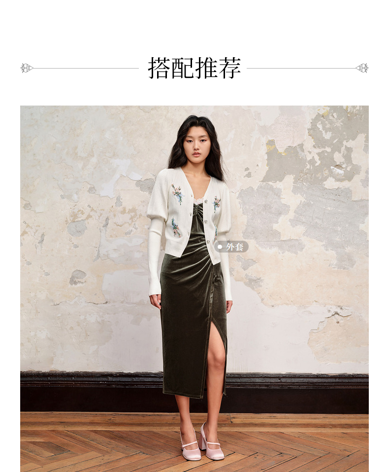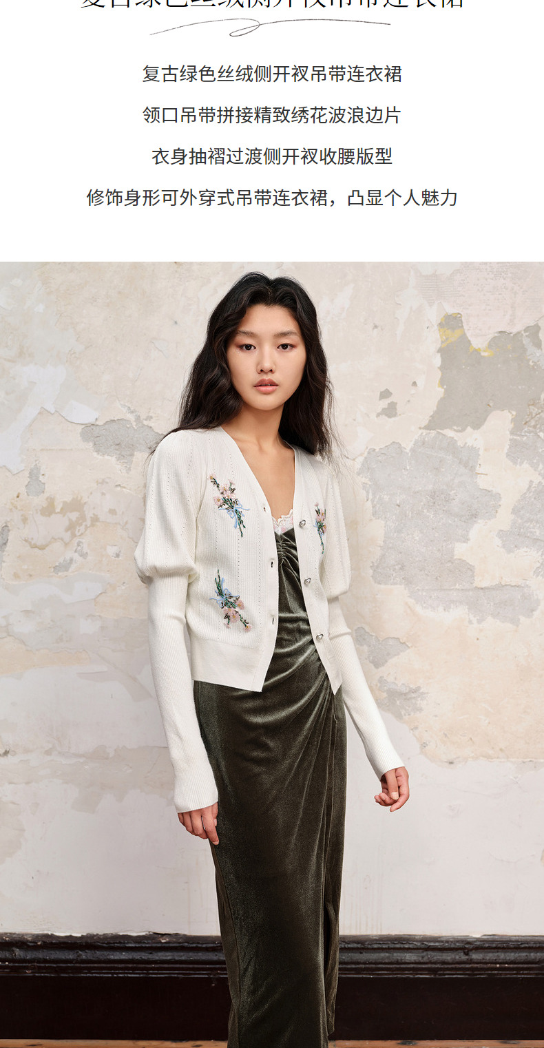 MAXRIENY*复古绿色丝绒侧开衩吊带连衣裙裙子(货号:MC88DR564)