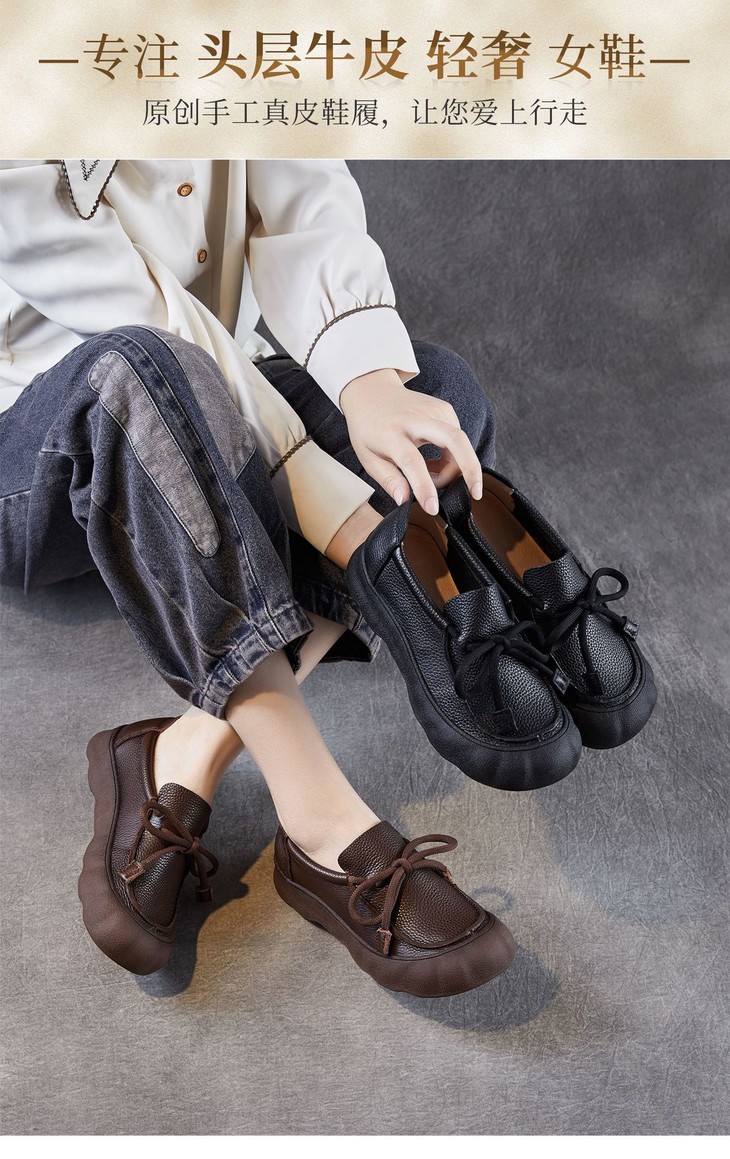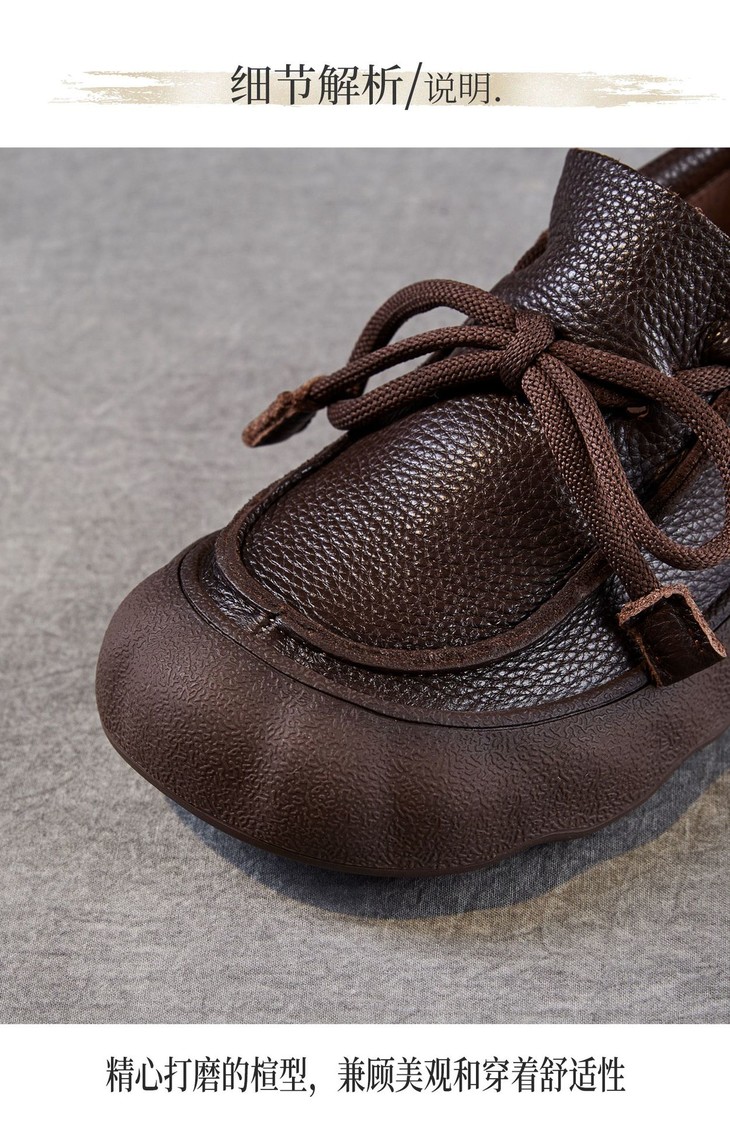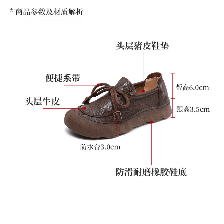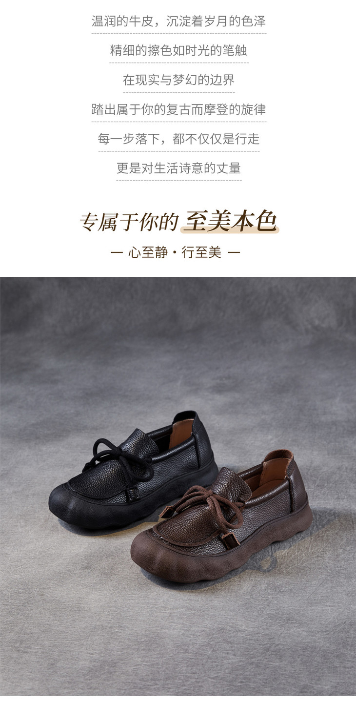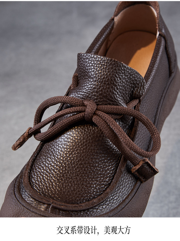 复古手工真皮休闲鞋,软底软面平底圆头系带森系单鞋ZM258601