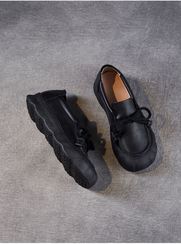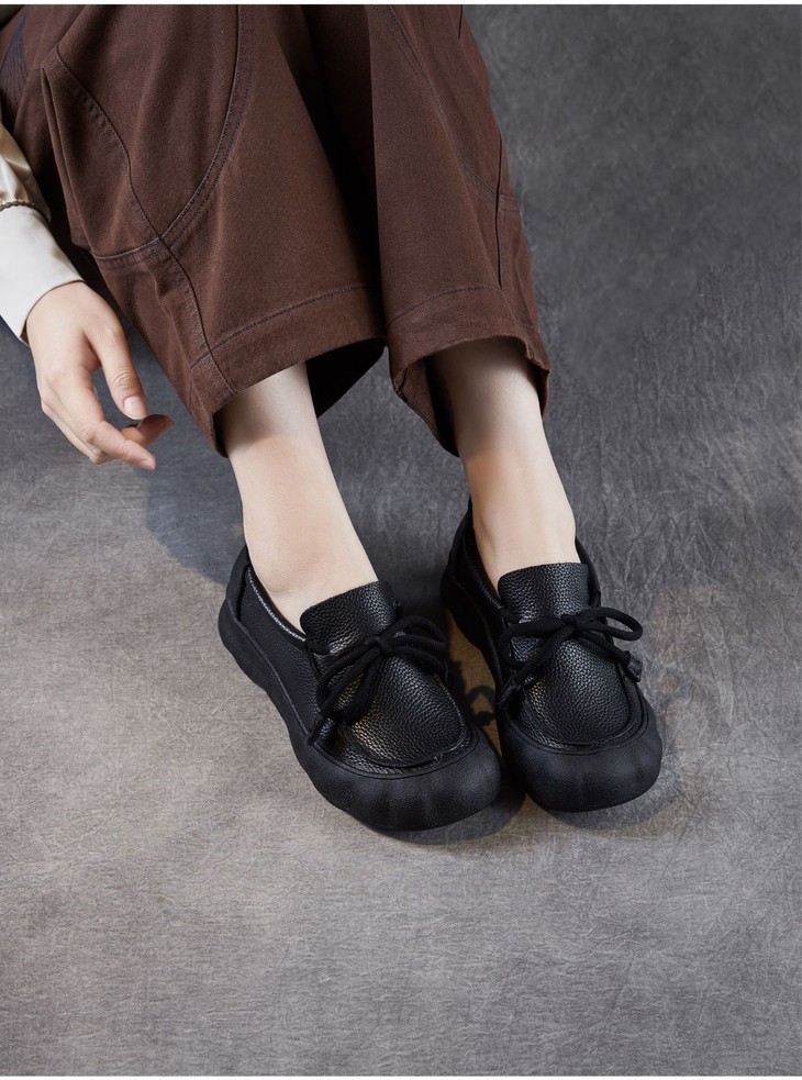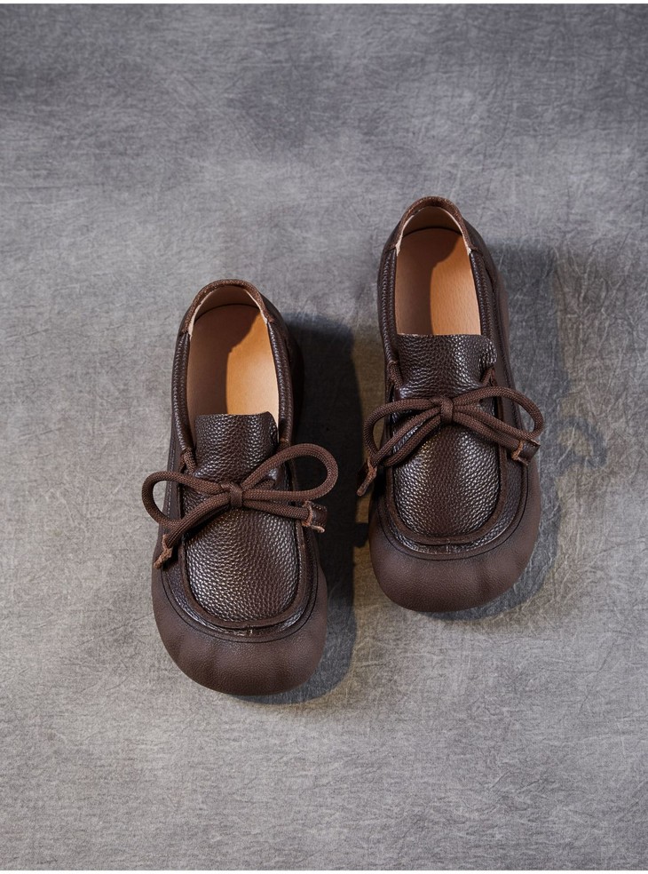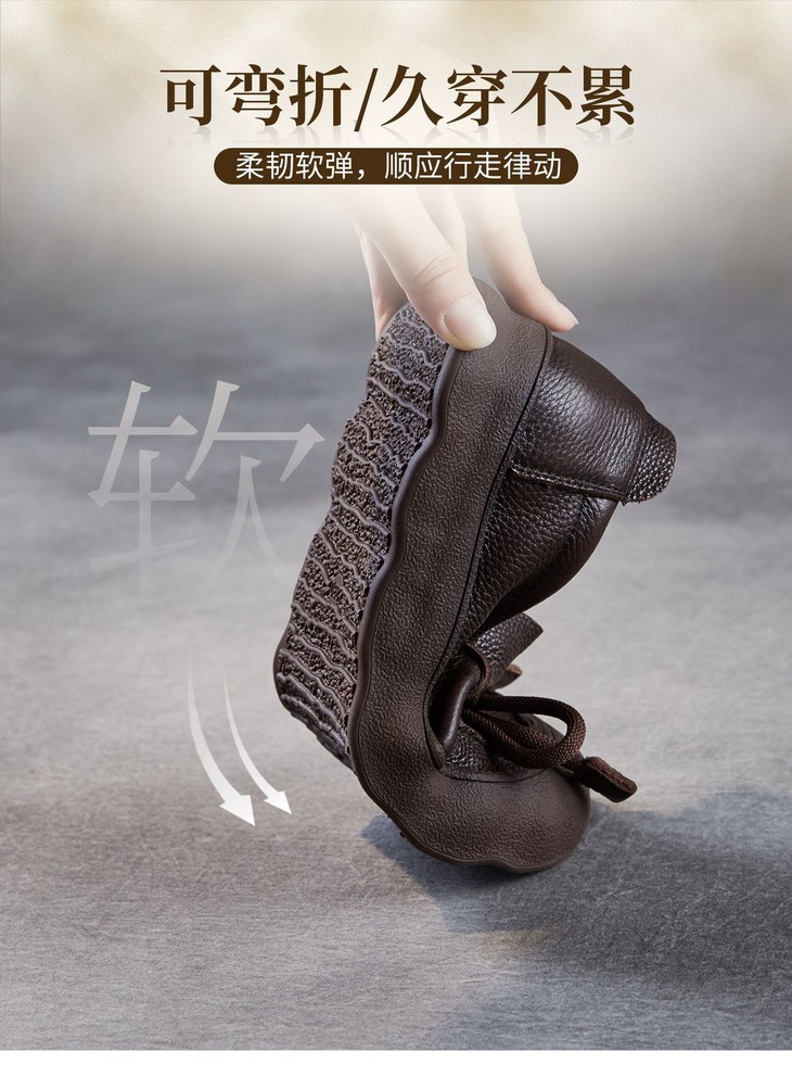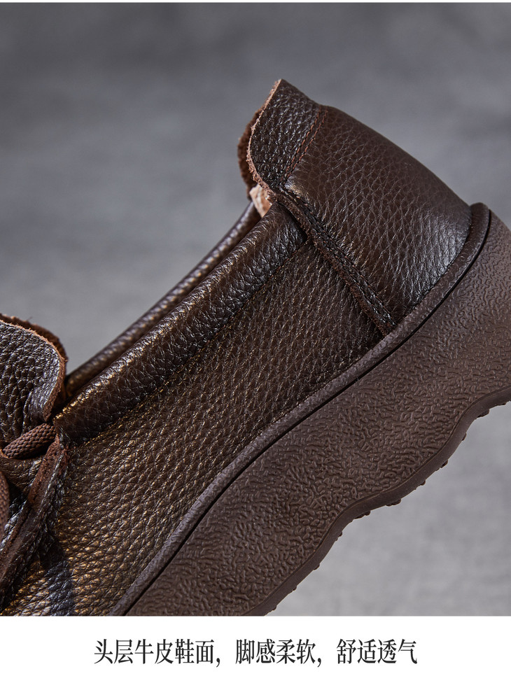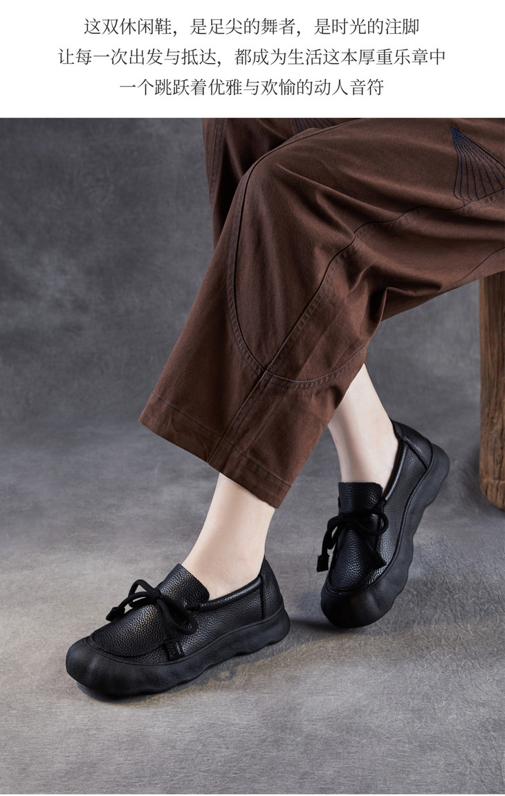 复古手工真皮休闲鞋,软底软面平底圆头系带森系单鞋ZM258601