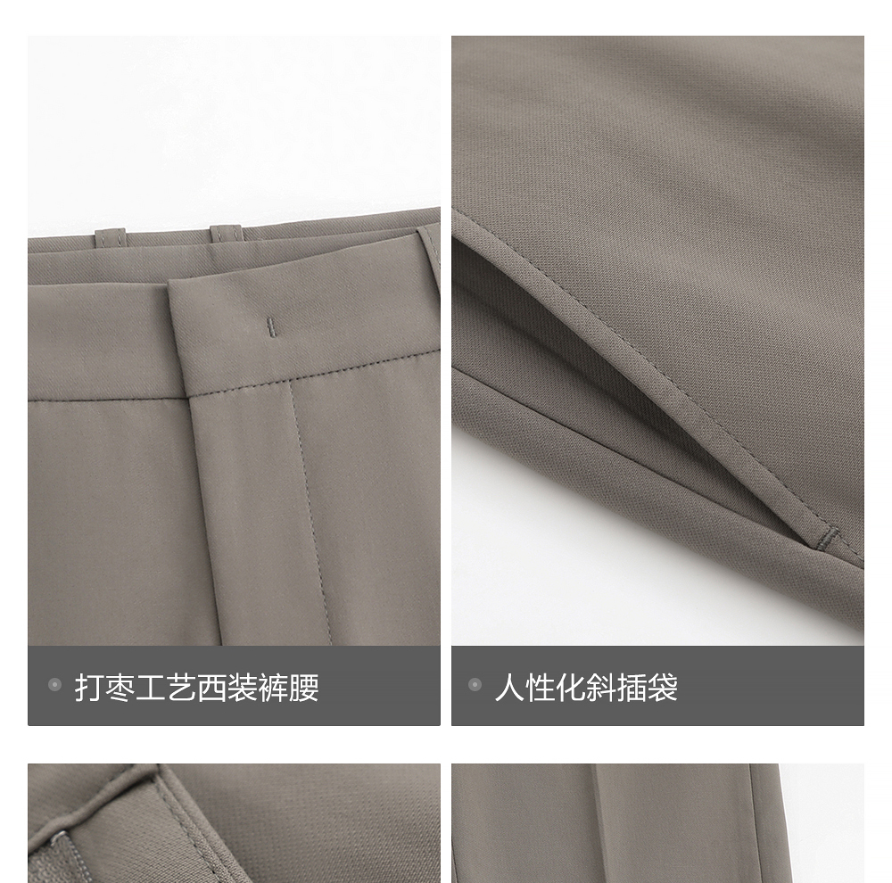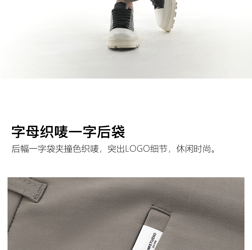HIM漢崇 厚修身小脚商务正装西裤男黑色休闲直筒长裤 2024冬季