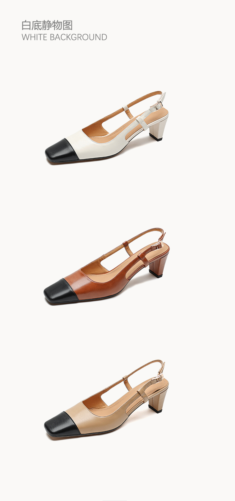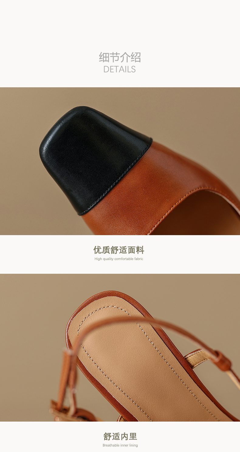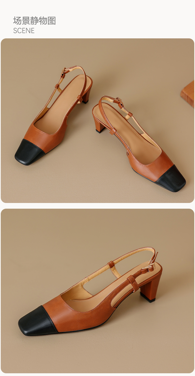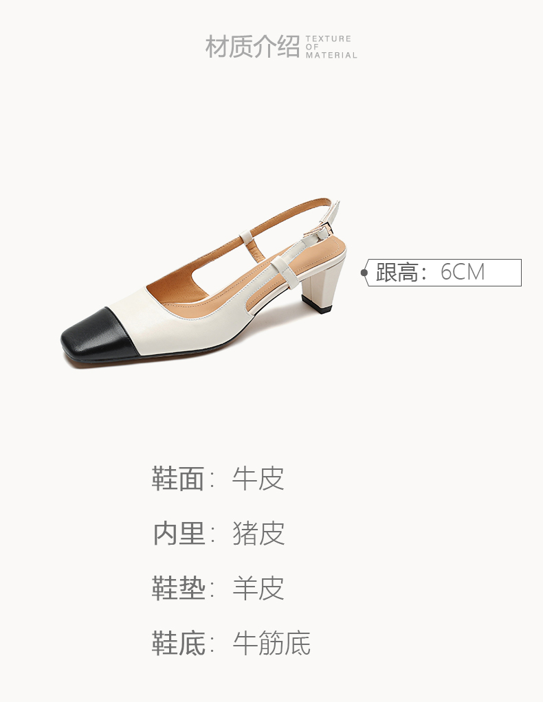 优雅小香风,拼色后空高跟方头包头凉鞋MLD-D6051
