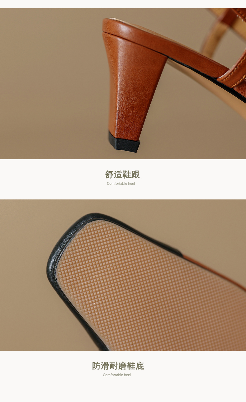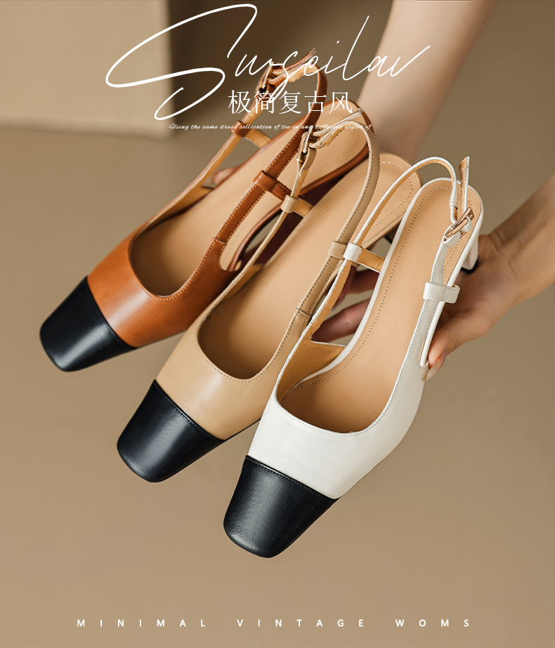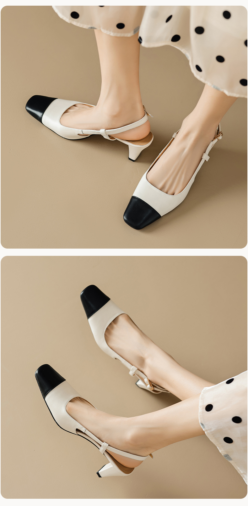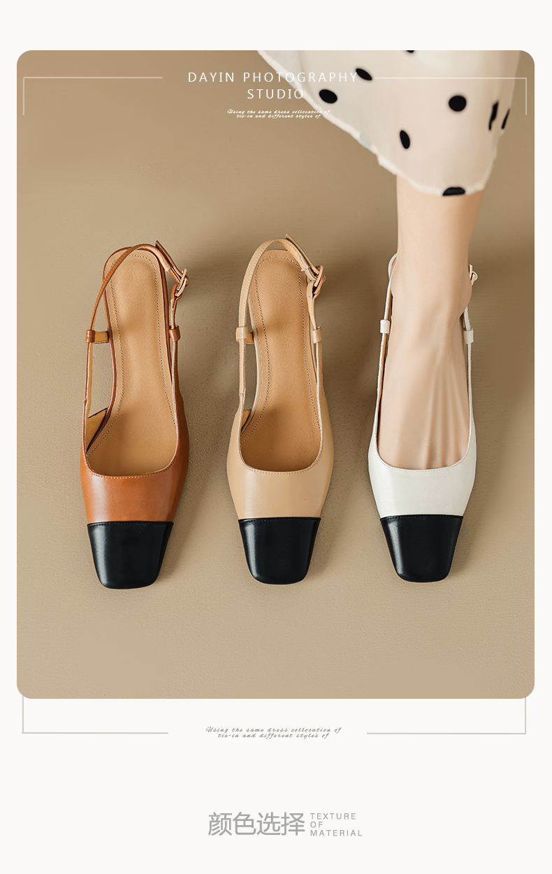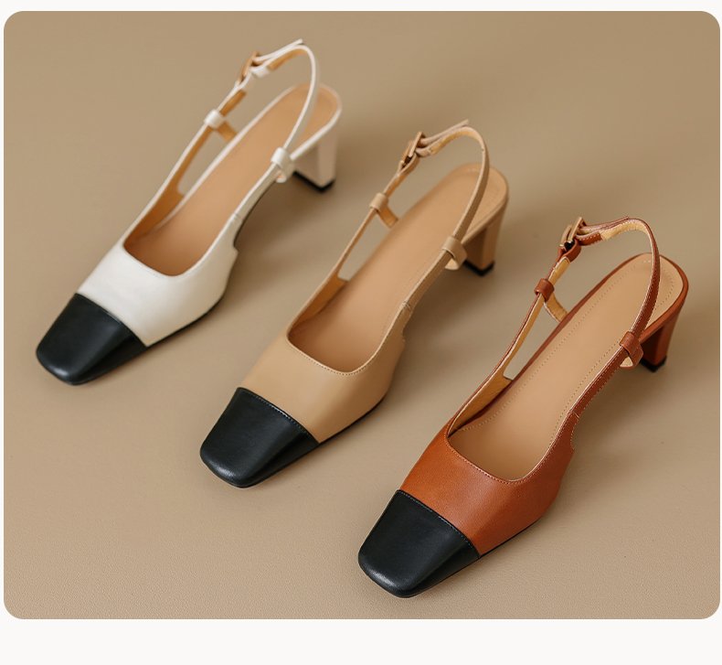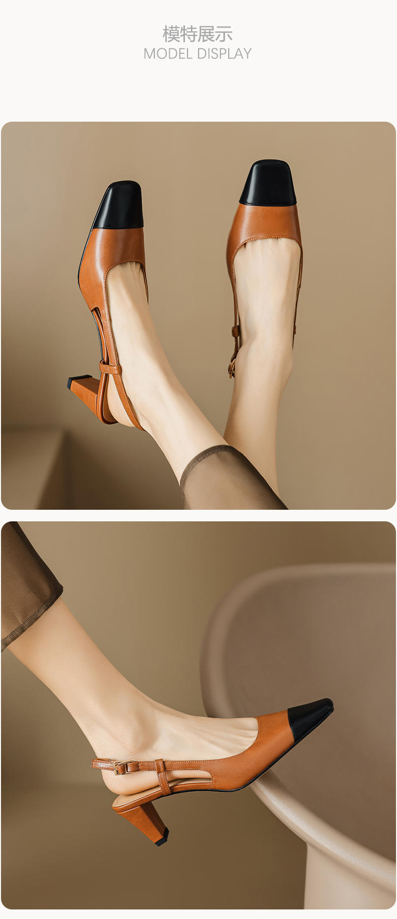 优雅小香风,拼色后空高跟方头包头凉鞋MLD-D6051