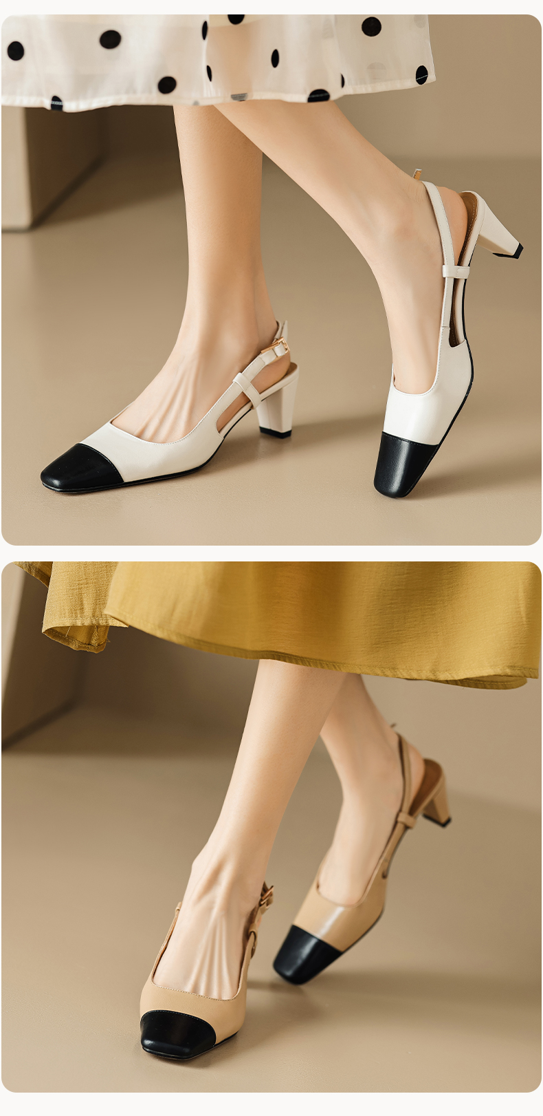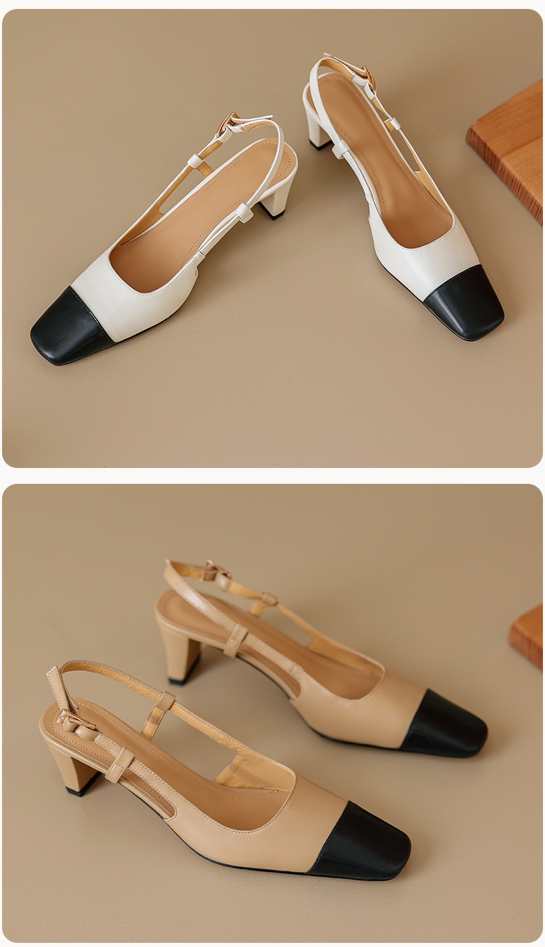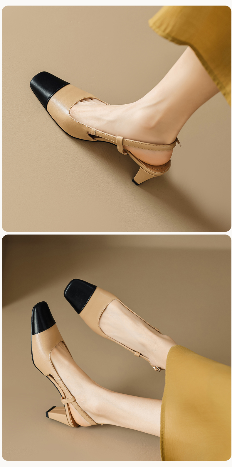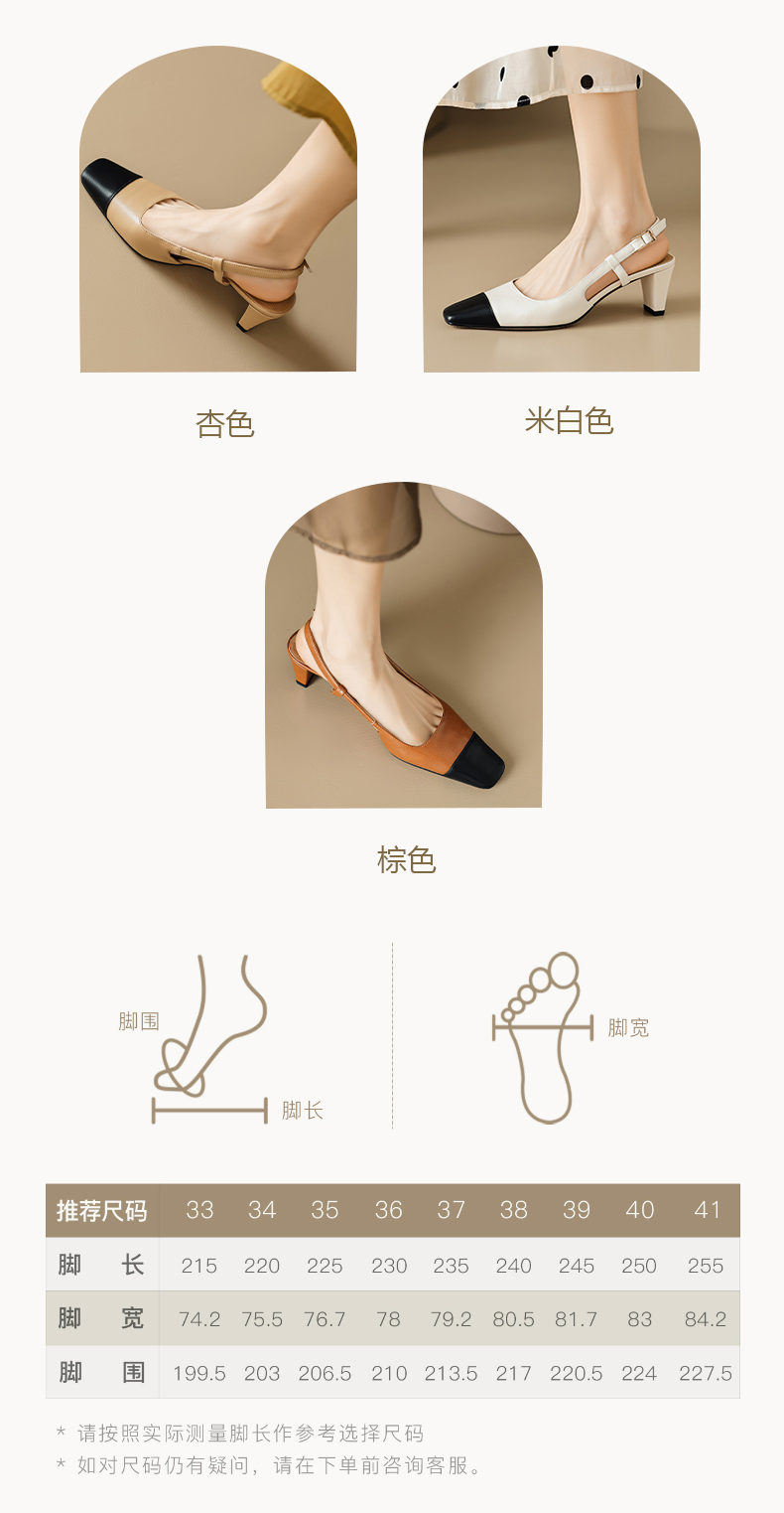 优雅小香风,拼色后空高跟方头包头凉鞋MLD-D6051