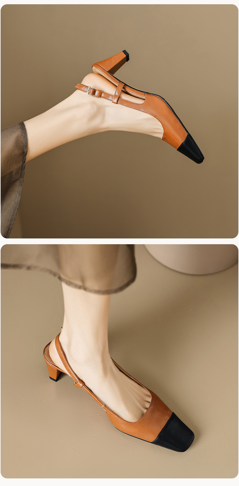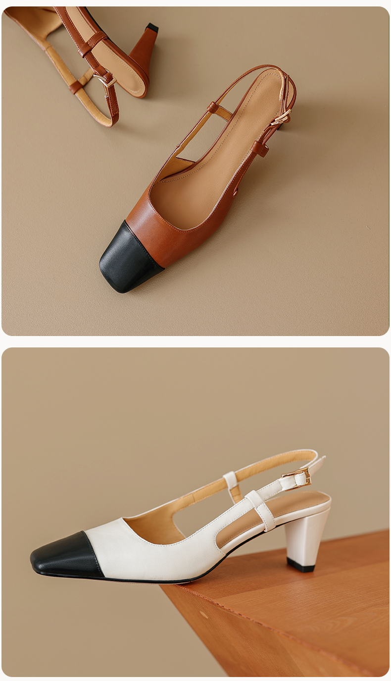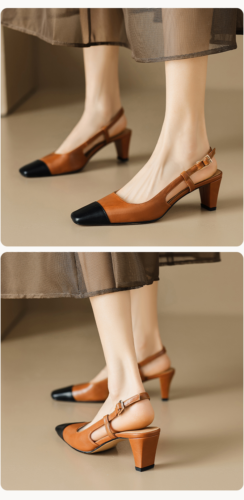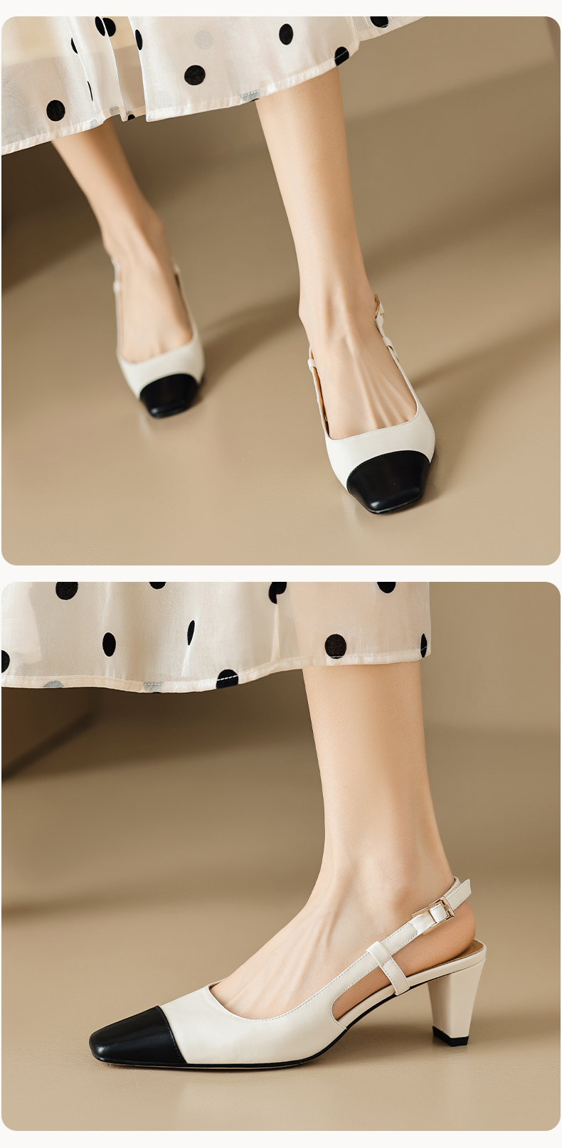 优雅小香风,拼色后空高跟方头包头凉鞋MLD-D6051