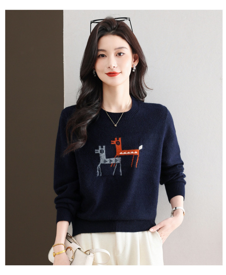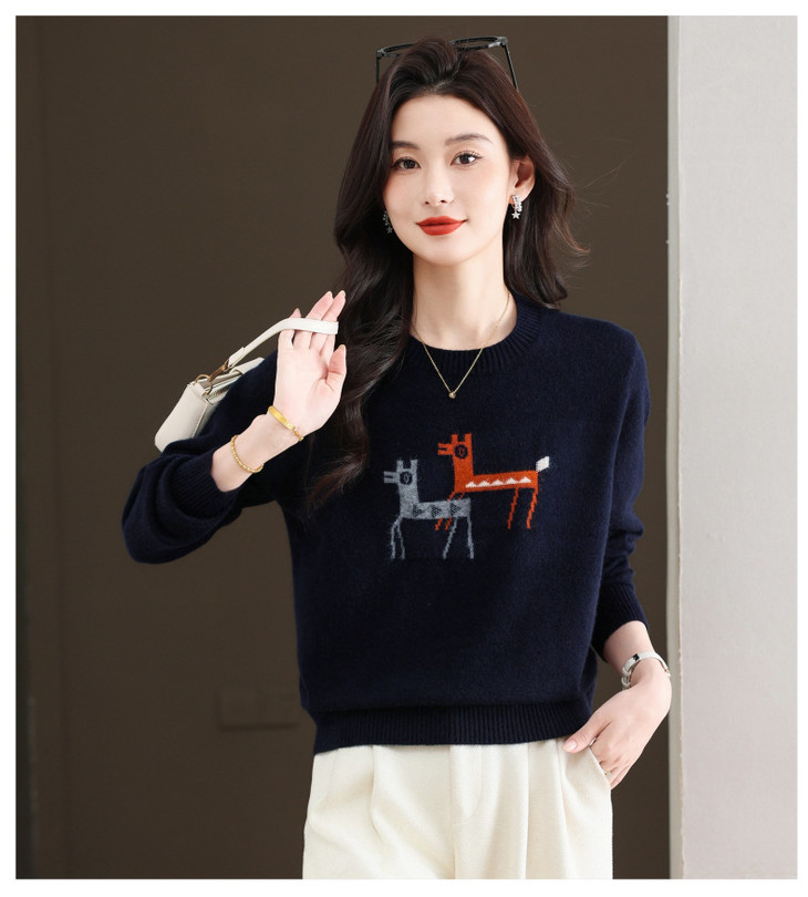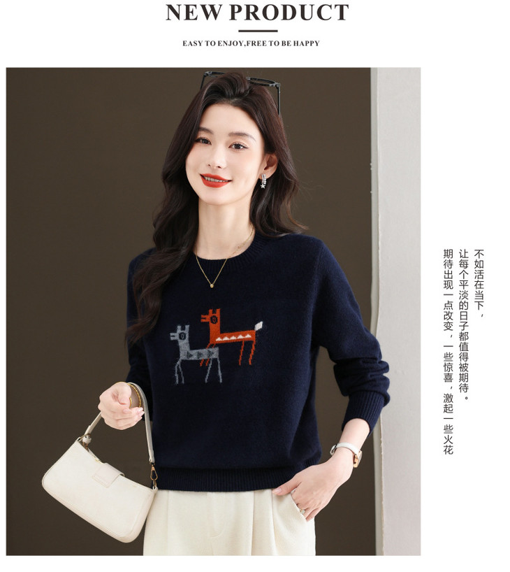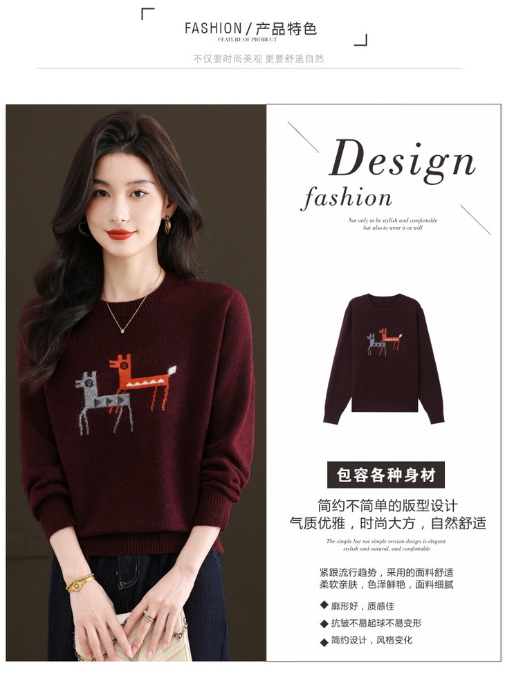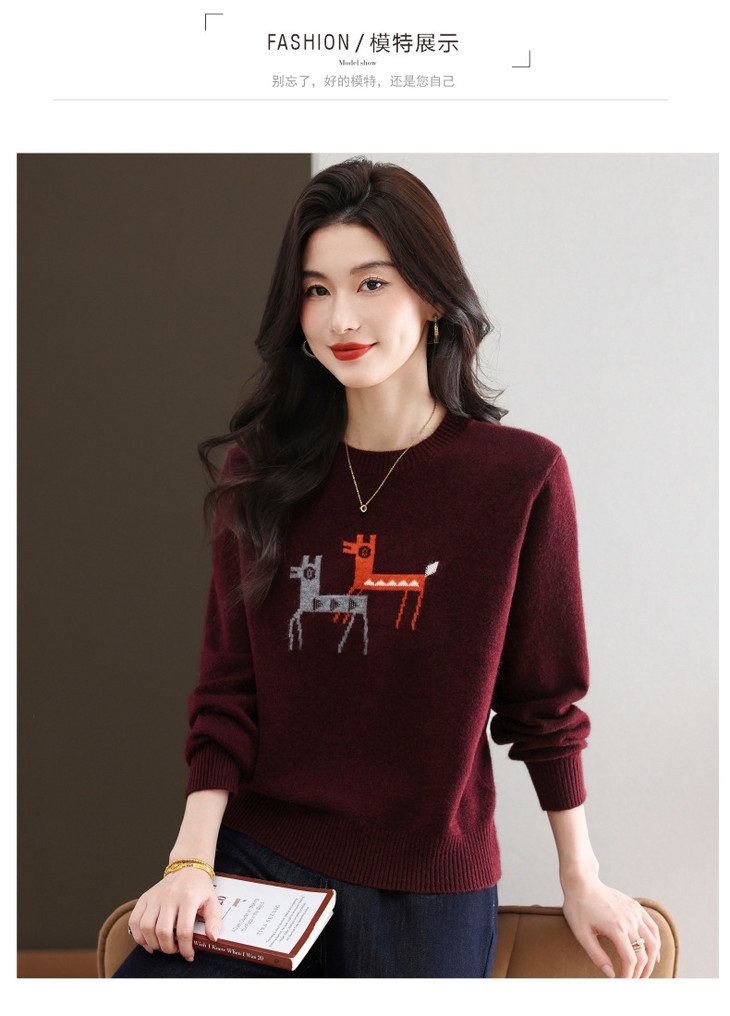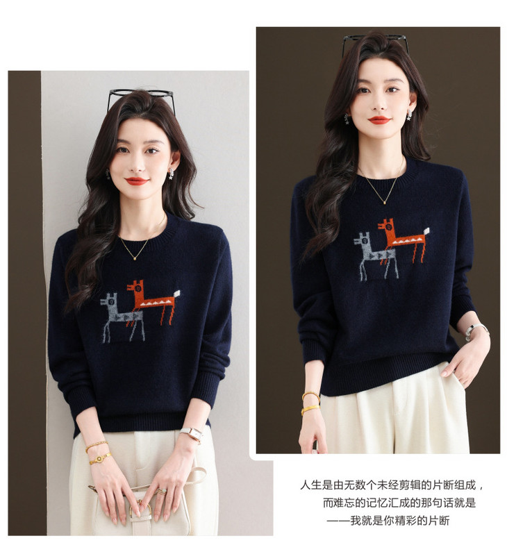 圆领卡通小鹿提花图案,宽松减龄针织衫上衣CC-101-15807