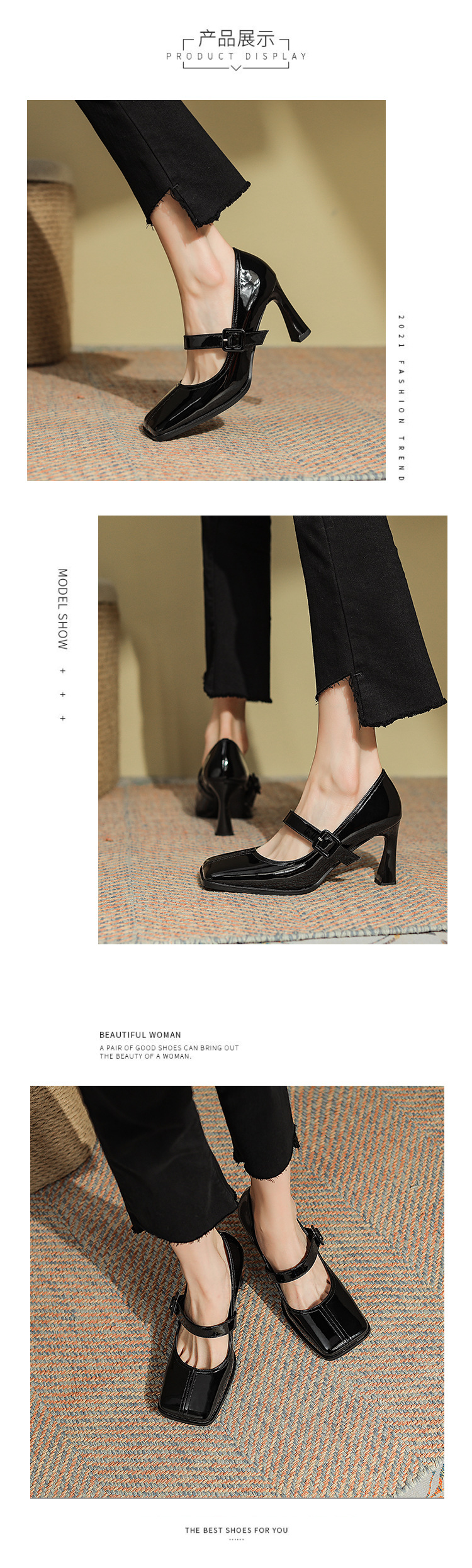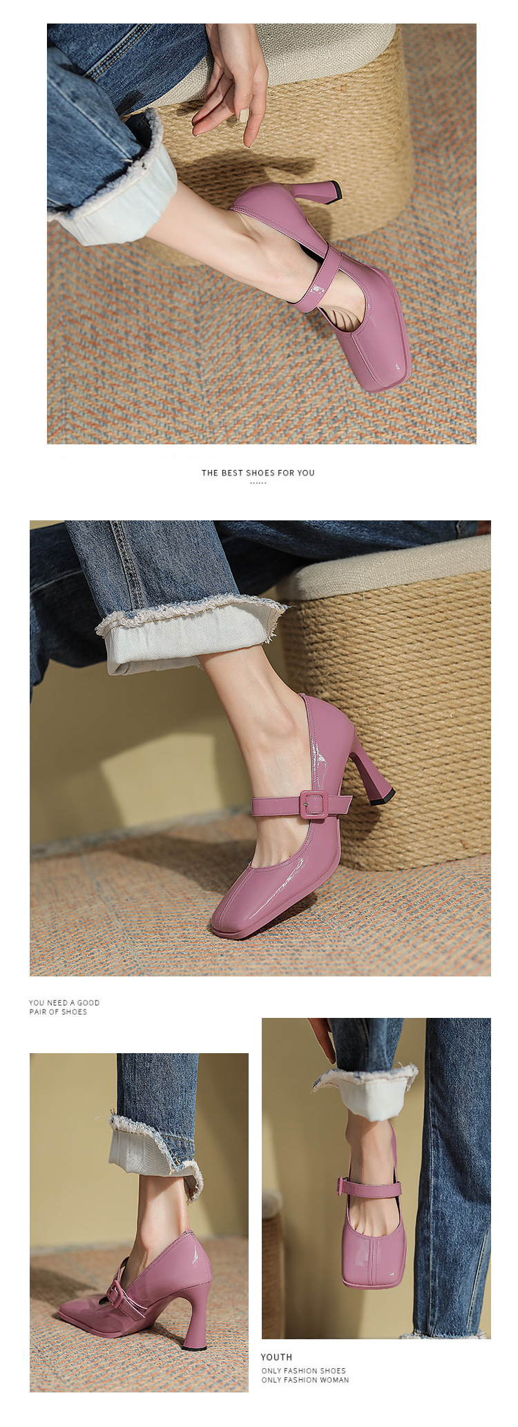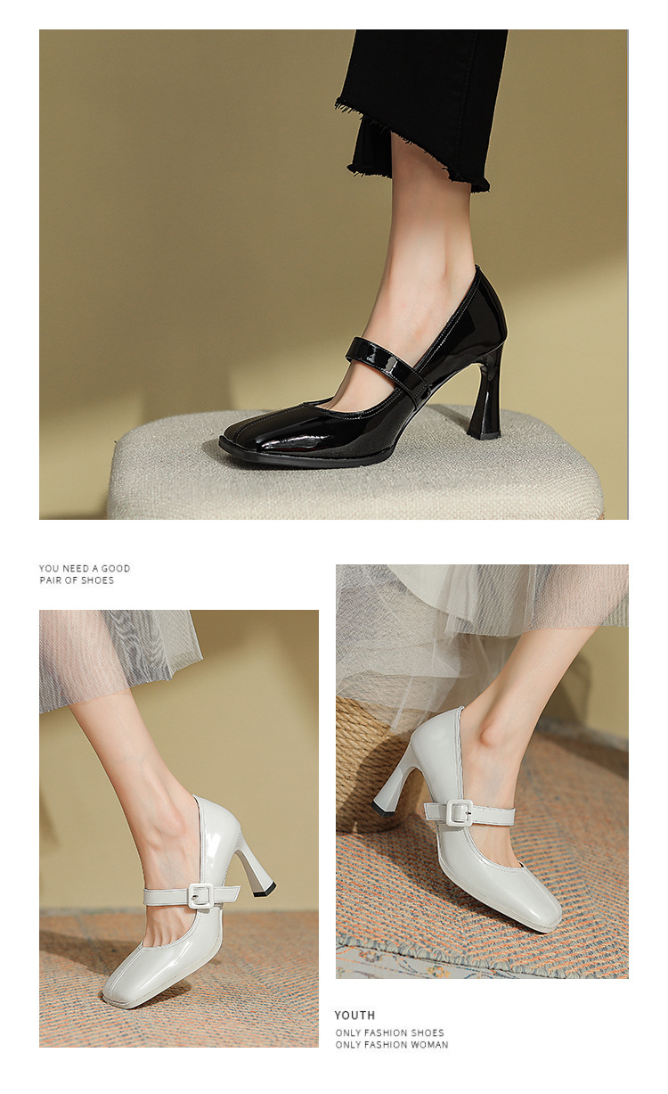 粗跟方头浅口四季单鞋,高跟女鞋瓢鞋DJ-A972