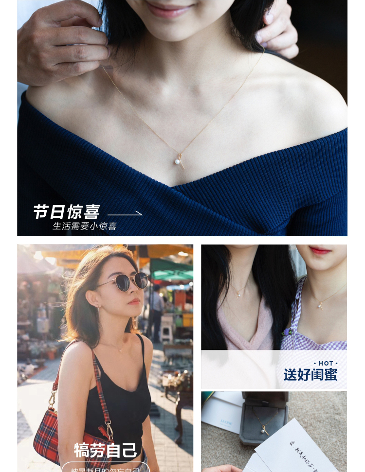 &符号18k黄金单颗女淡水珍珠吊坠项链礼物叠戴感满天星情人节礼物