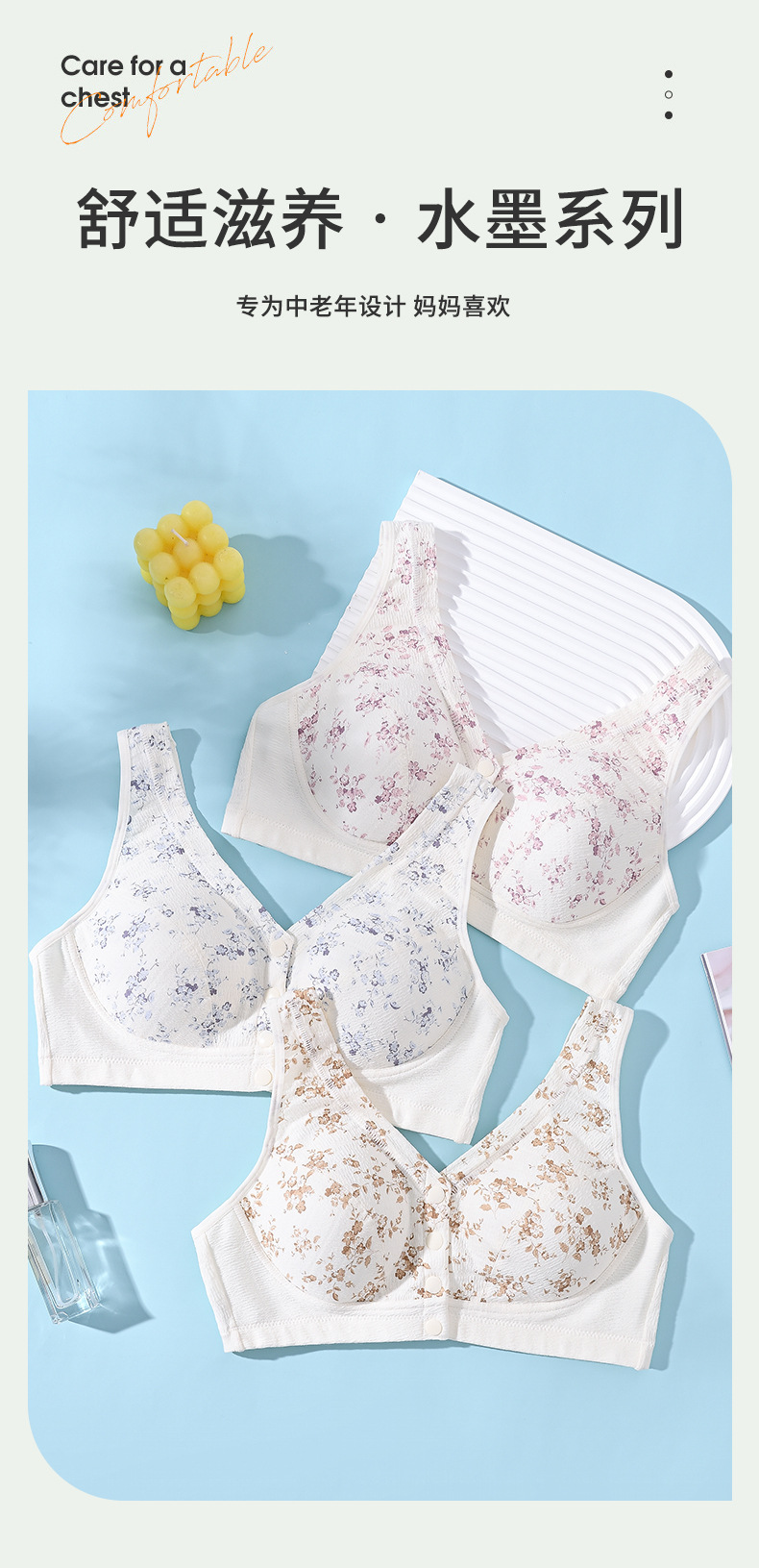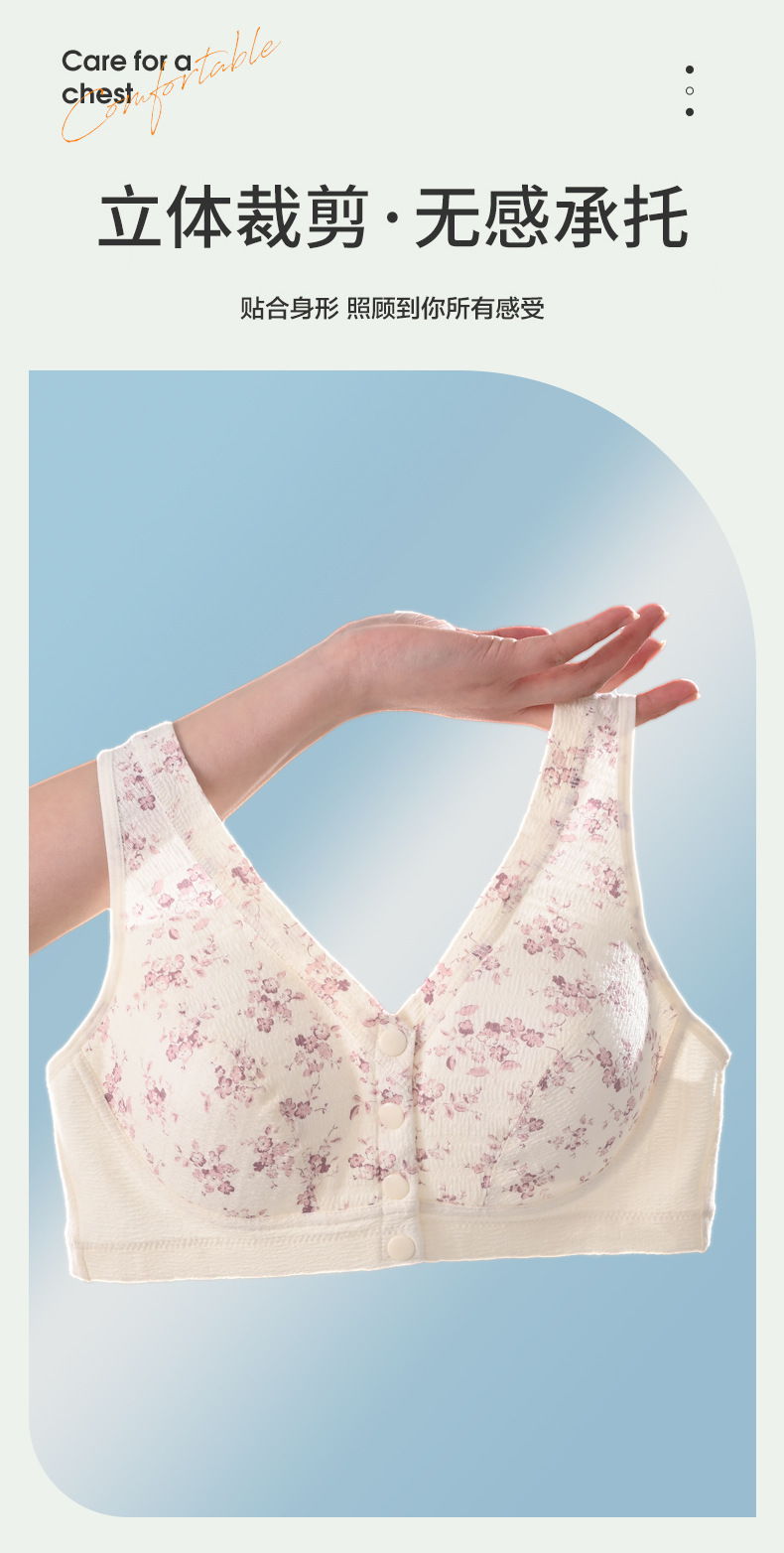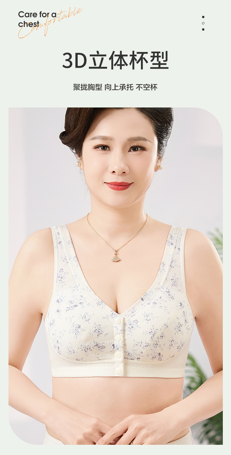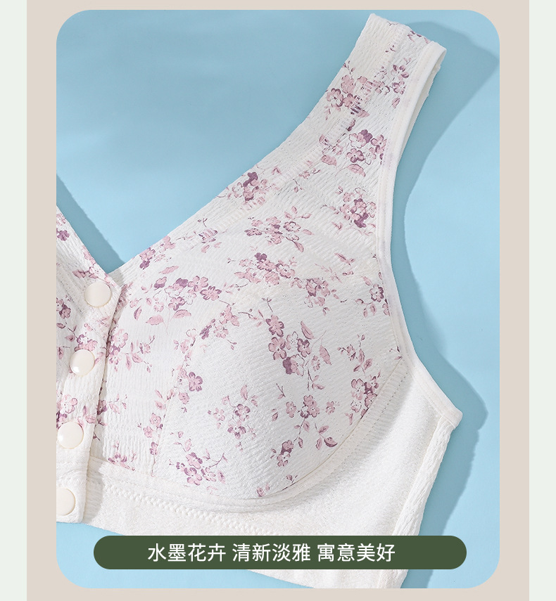 雀说 【3件】纯棉国风水墨中老年文胸前扣背心式内衣8095