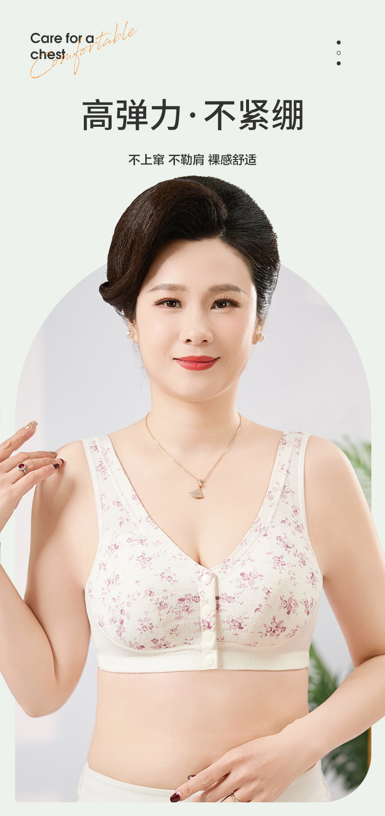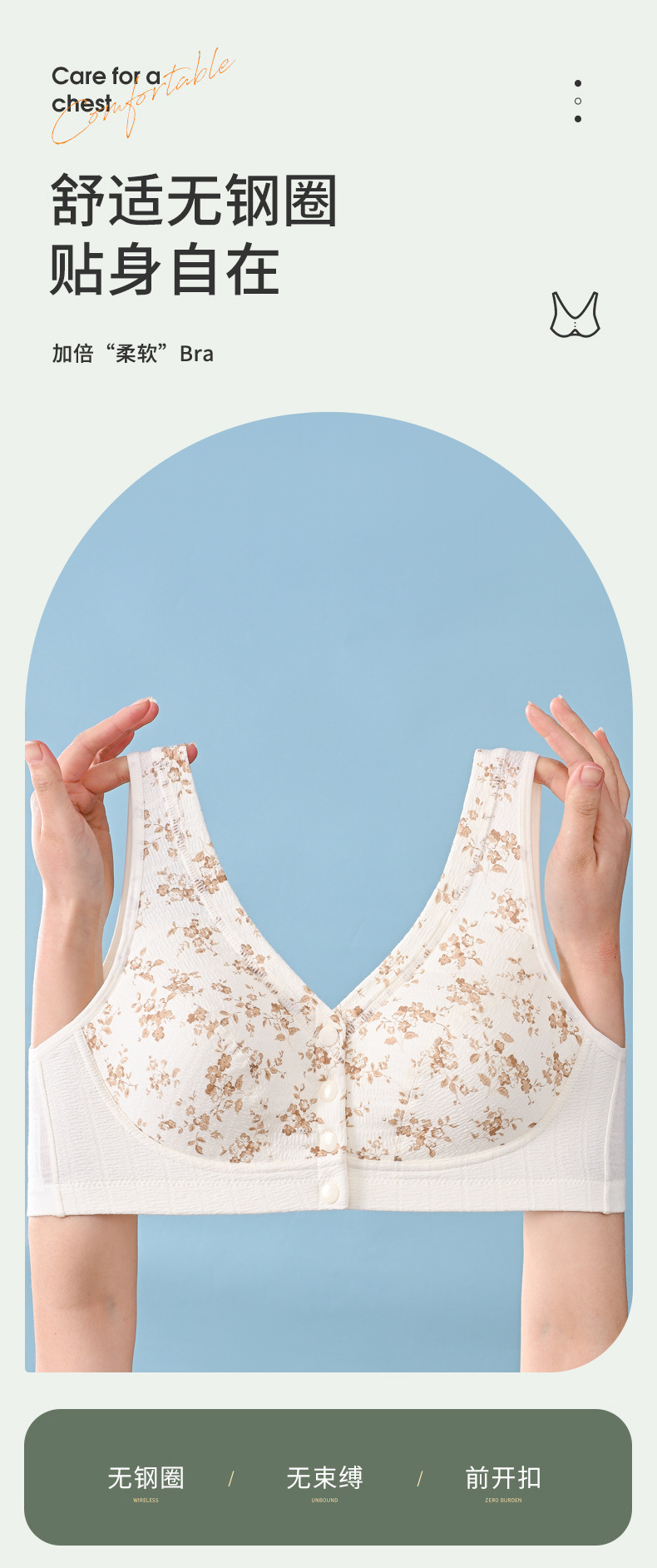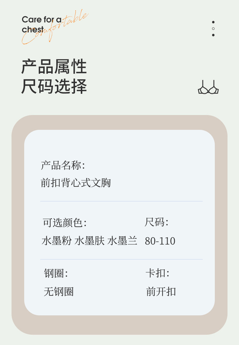 雀说 【3件】纯棉国风水墨中老年文胸前扣背心式内衣8095