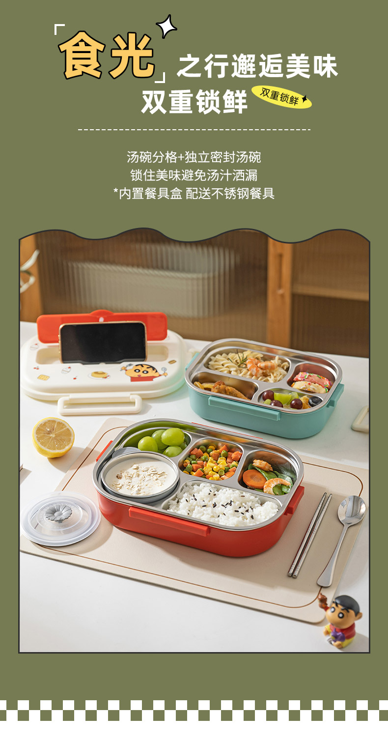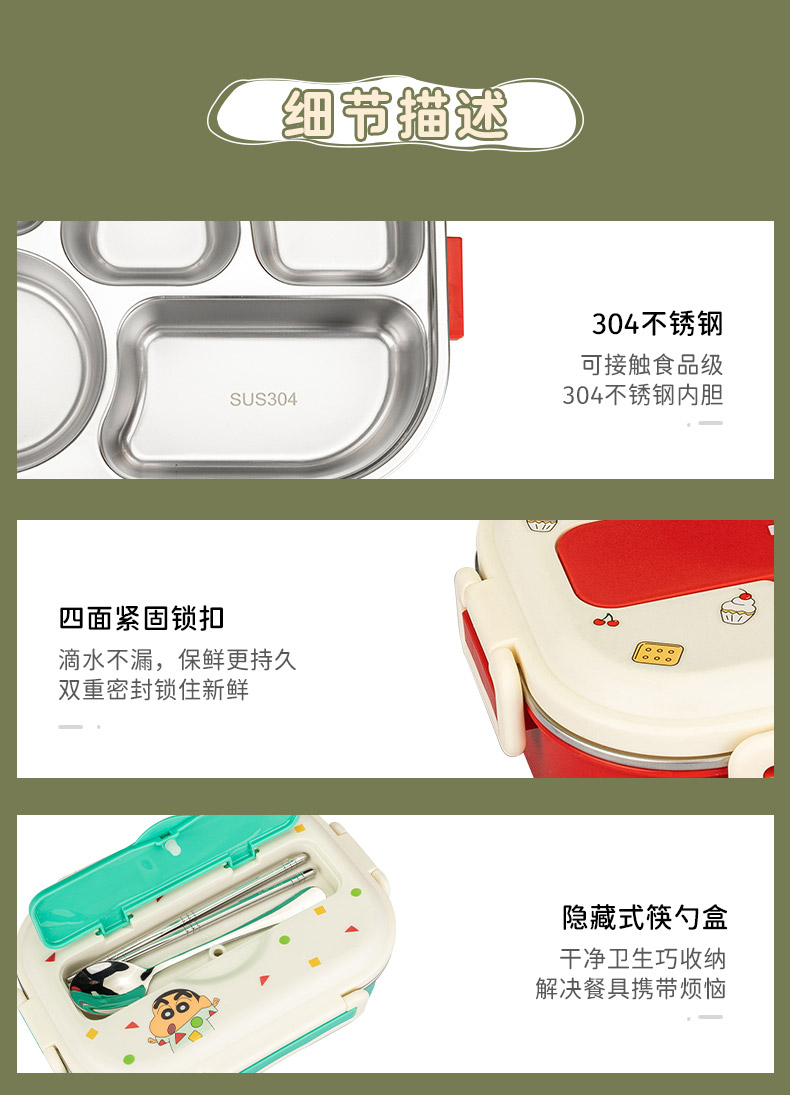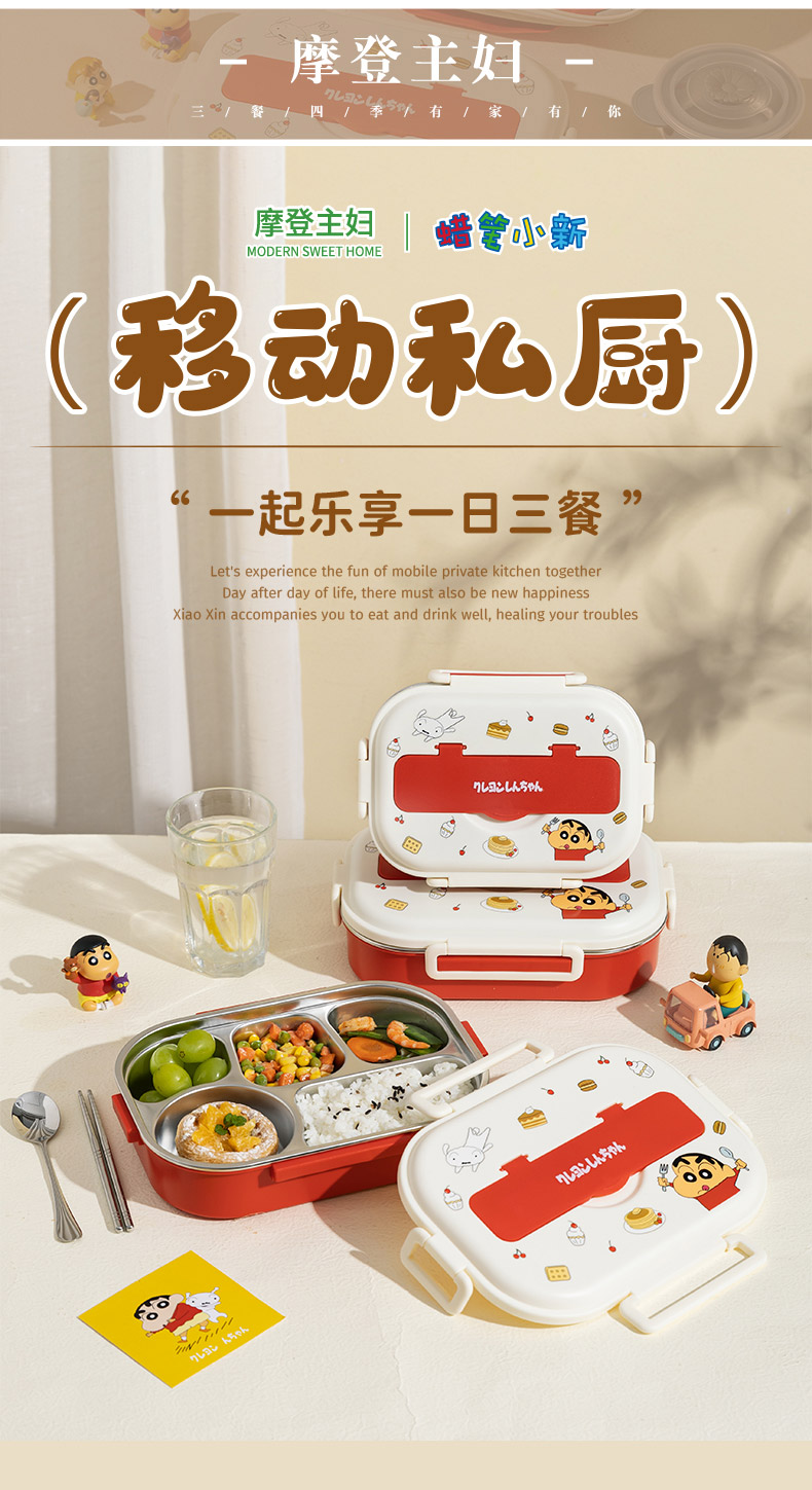 摩登主妇&蜡笔小新 不锈钢保温分格饭盒秋冬上班族学生便当盒