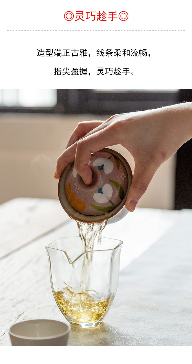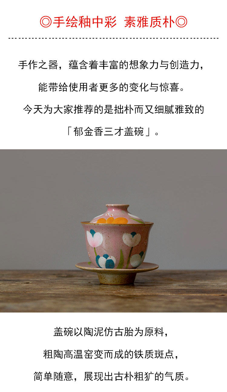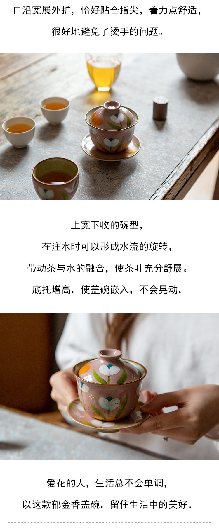 茶香记 郁金香三才盖碗 釉中彩 童趣手绘 素雅质朴 灵巧趁手