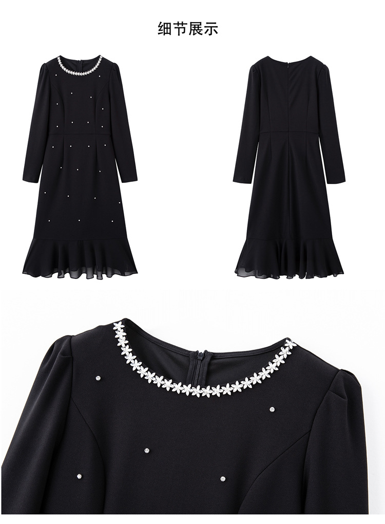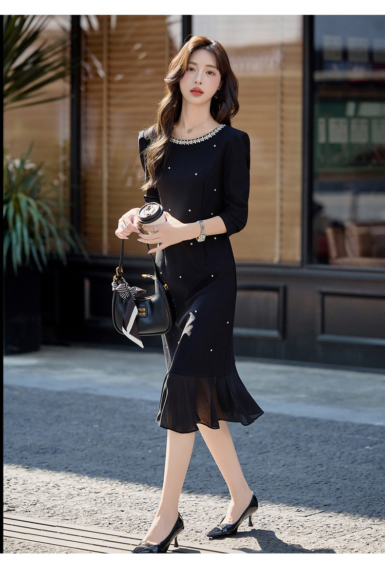HR MEIQIN5707气质优雅鱼尾裙修身显瘦钉珠A字裙连衣裙 商品图4