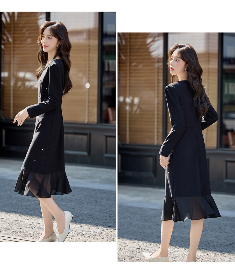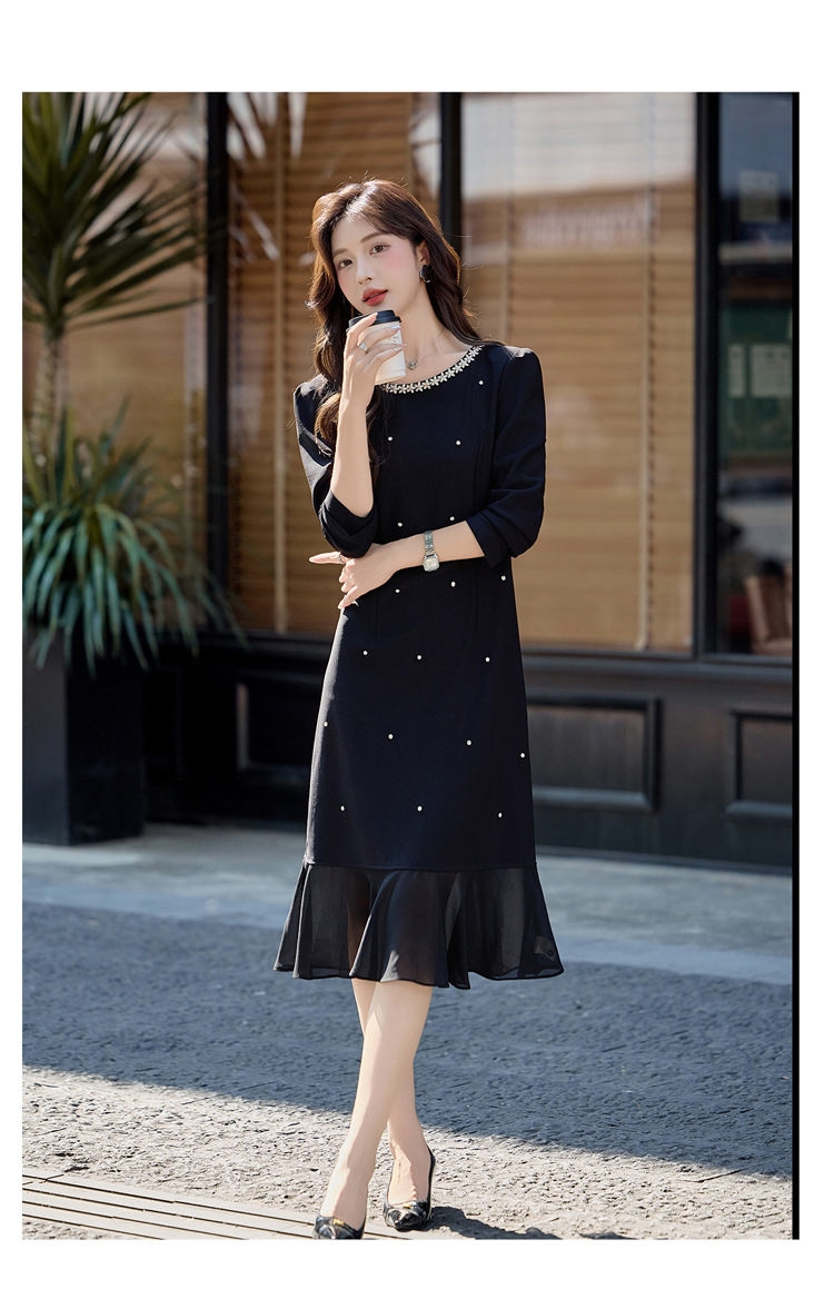 HR MEIQIN5707气质优雅鱼尾裙修身显瘦钉珠A字裙连衣裙 商品图0
