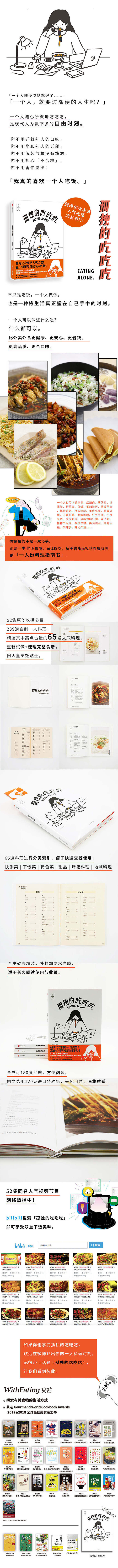《孤独的吃吃吃》由超人气内容品牌「食帖WithEating」原创出品,独家公开同名超人气原创视频中的经典食谱,分享一人饮食的畅快与幸福。