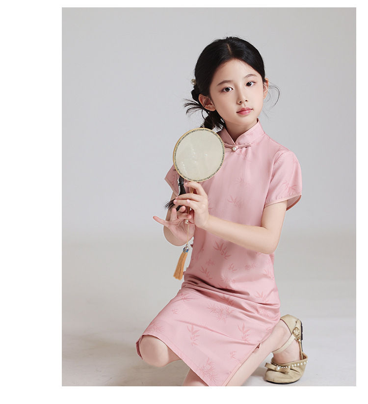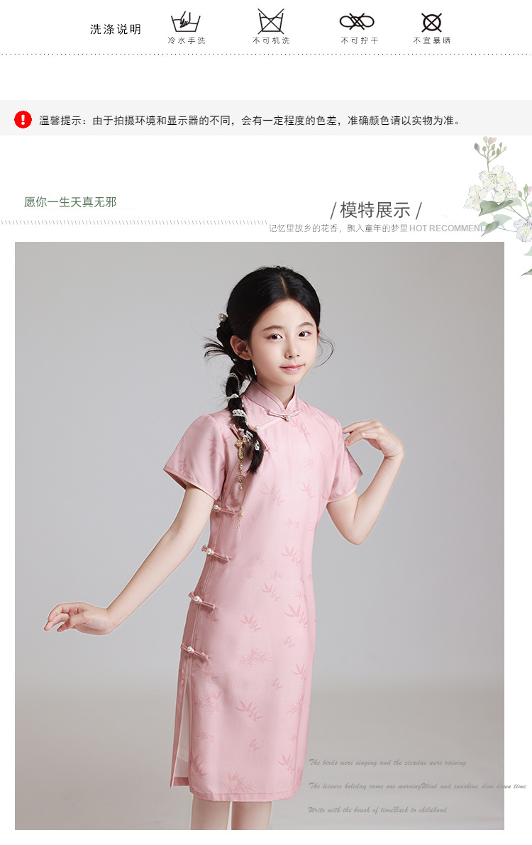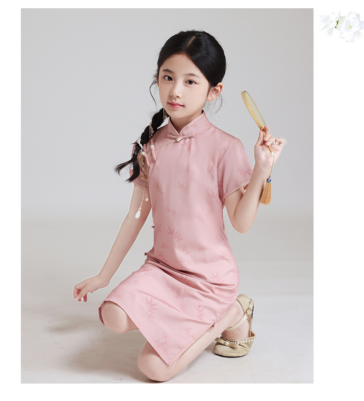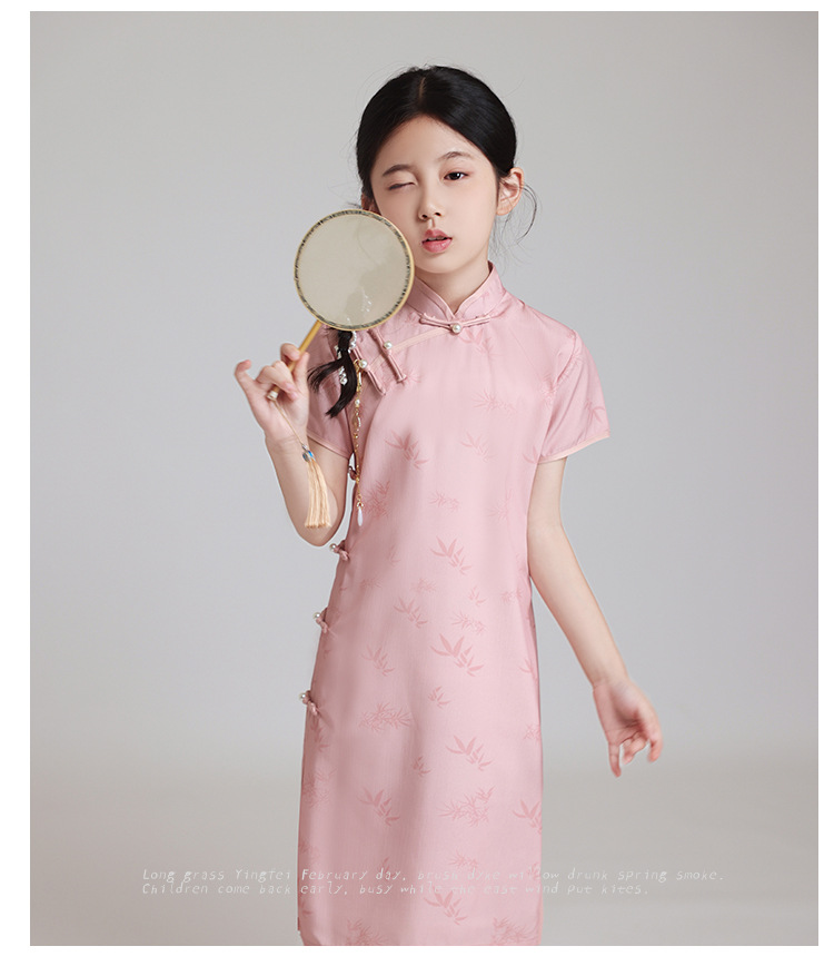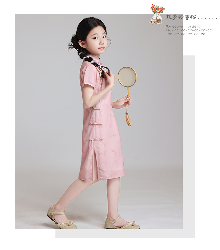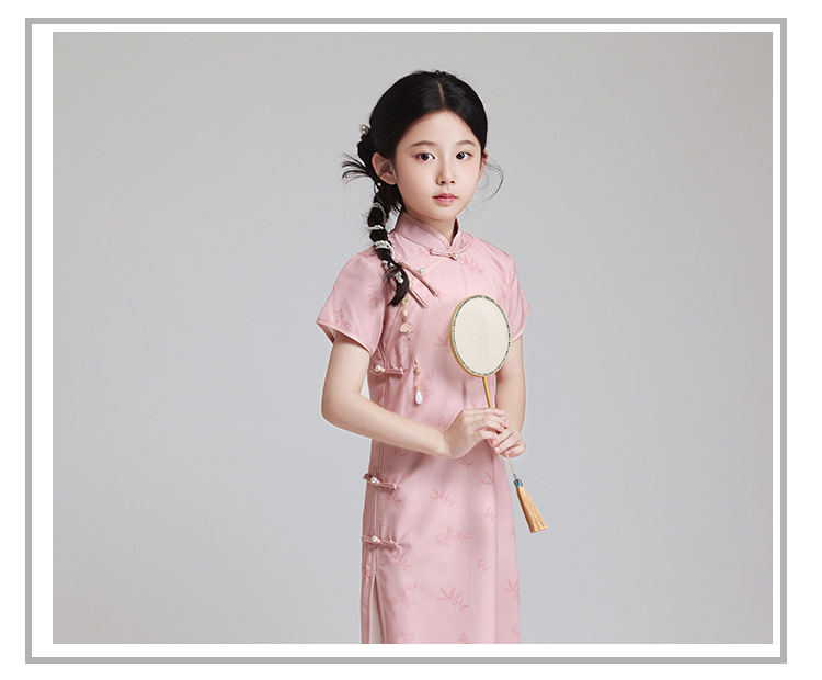 LSB粉色改良儿童旗袍夏季2024新款女童日常高端中国风小女孩高级表演