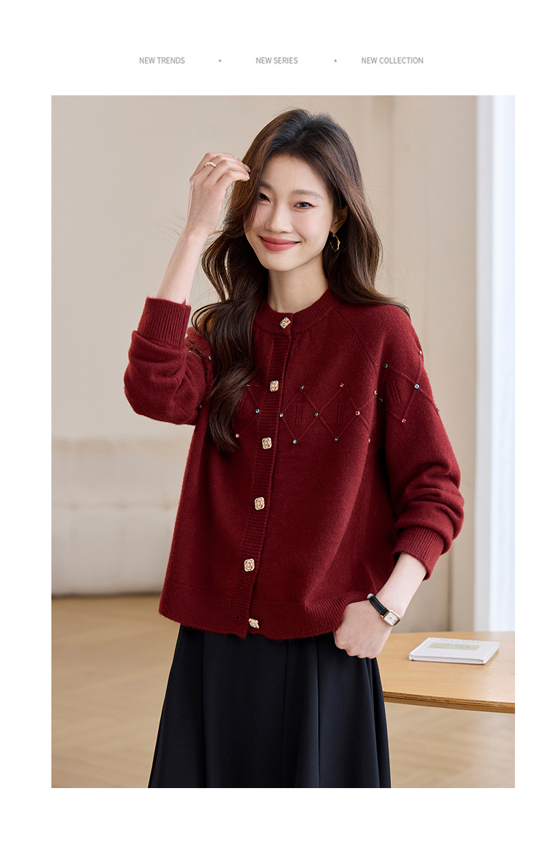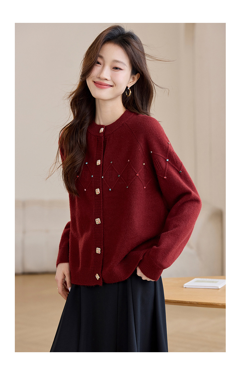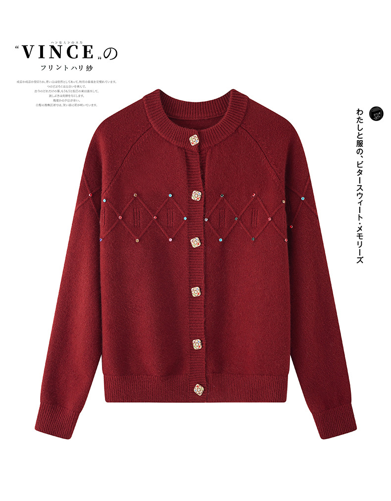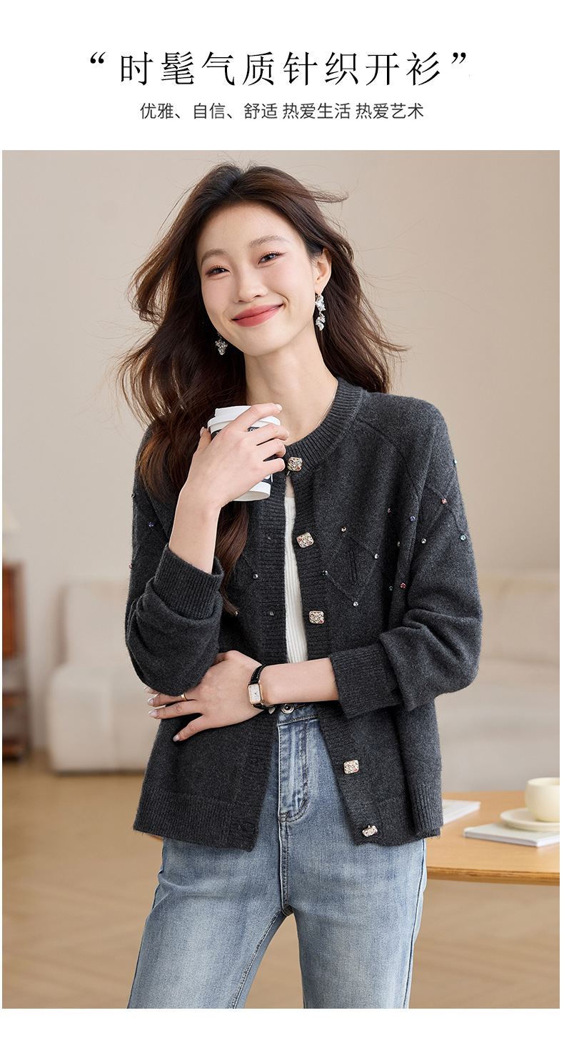 CC-22-2506春装新款开衫针织衫长袖复古民族风圆领百搭洋气小衫软糯上衣