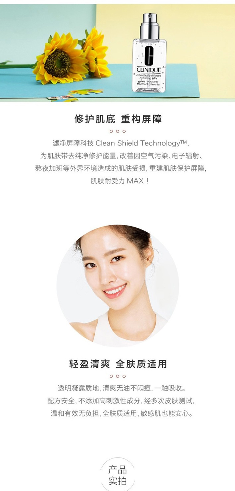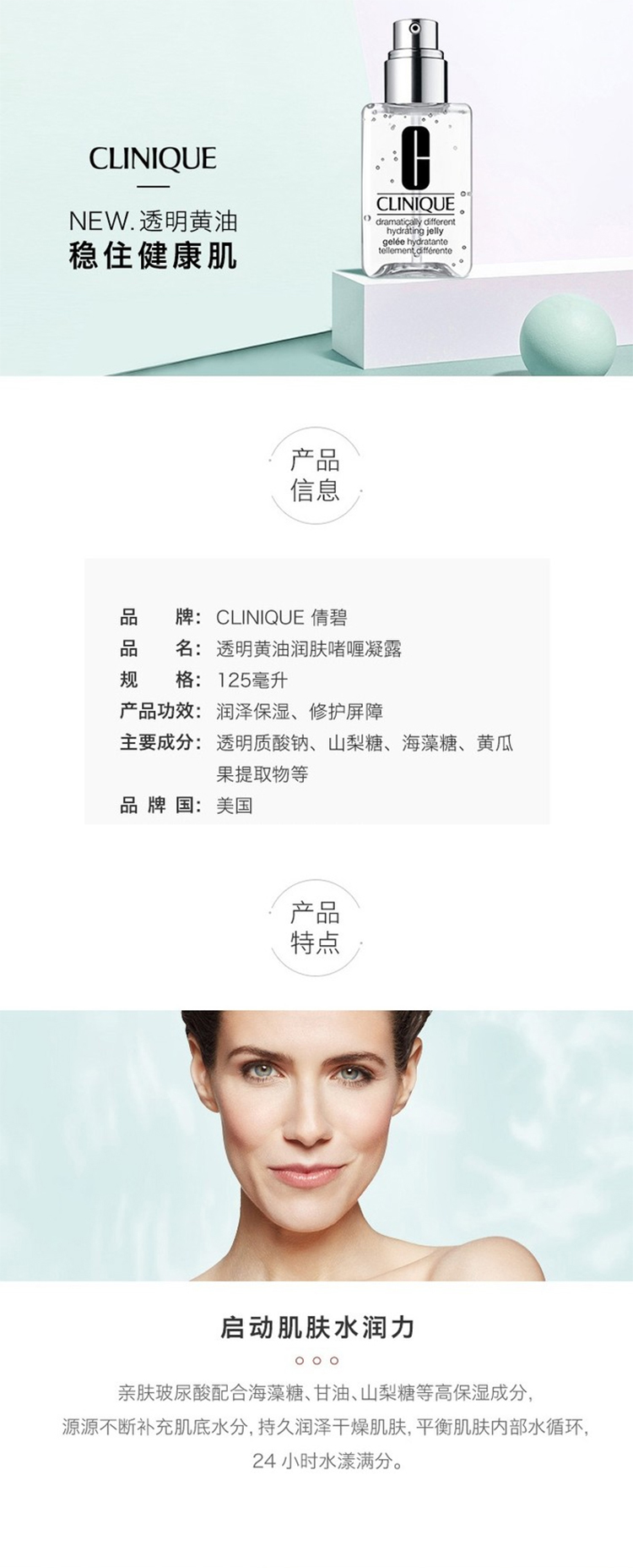 clinique倩碧卓越润肤凝露 125ml (透明黄油)清爽 倩碧王牌产品黄油家族新成员,星空既视感的全,清爽无油配方,好似肌肤净化器,强化肌底防御力,阻隔外界污染物,绽放健康净肌,适合所有肌肤类型。