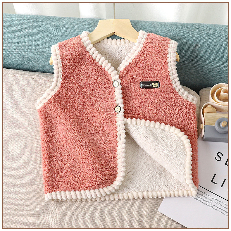 【捡漏价39元/2件】儿童羊羔绒马甲,采用双面加绒设计,温暖舒适,适合中小童穿着。简约纯色,搭配方便,打造百搭时尚风。中小童的休闲必备lish