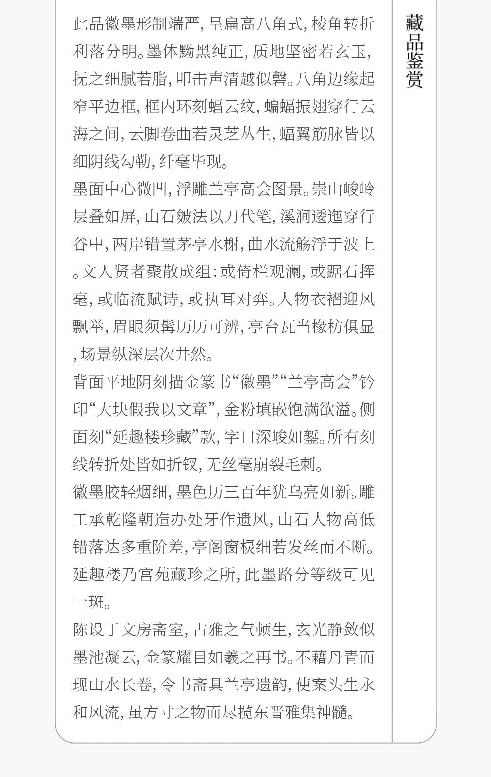 清 延趣楼珍藏兰亭高会图八角徽墨