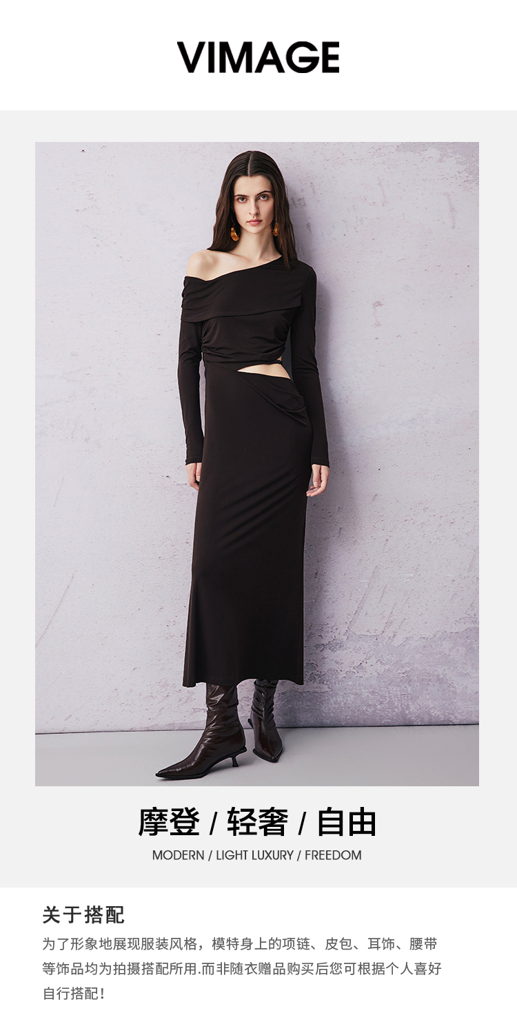VIMAGE纬漫纪春季新款设计感小众收腰气质连衣裙V2177704