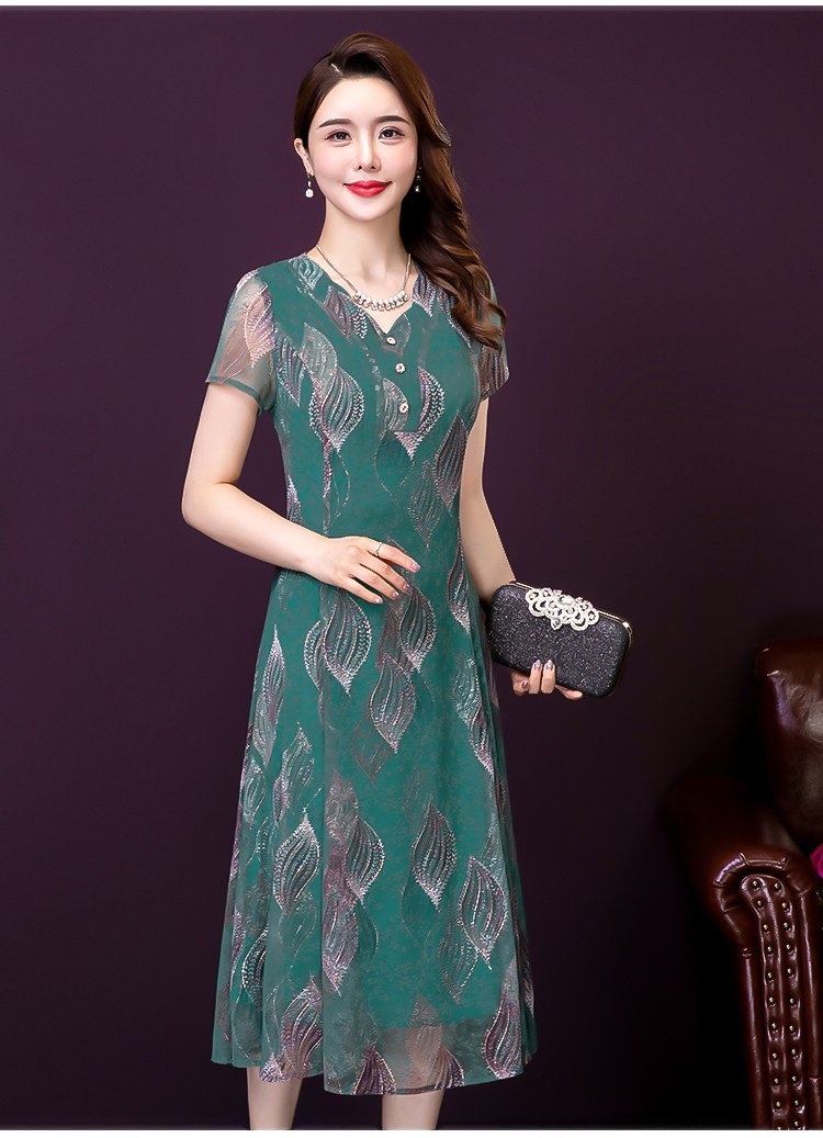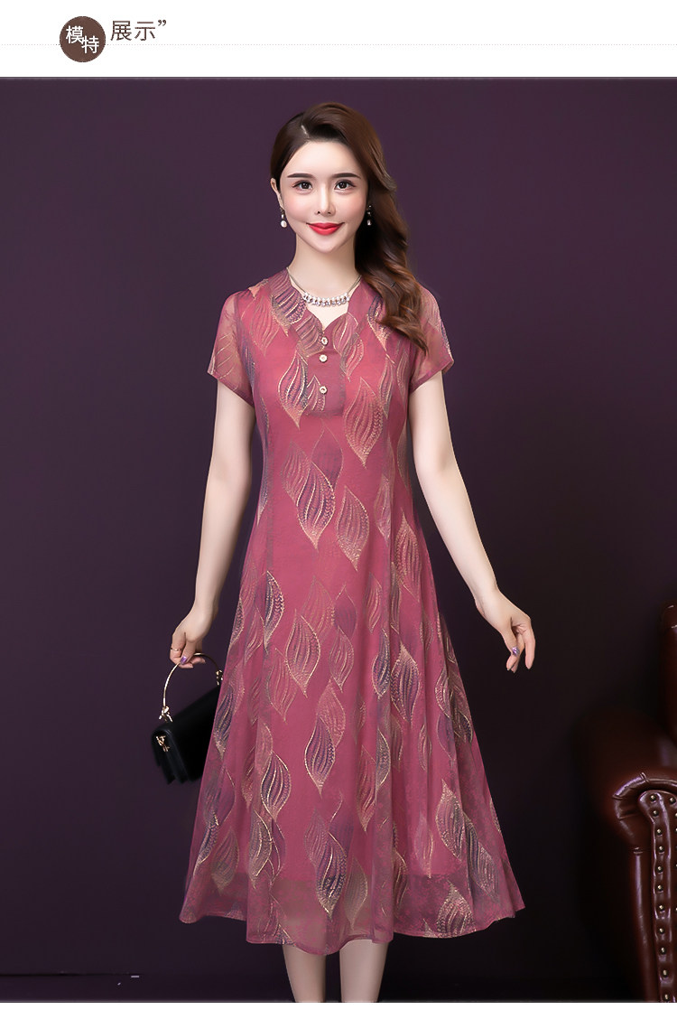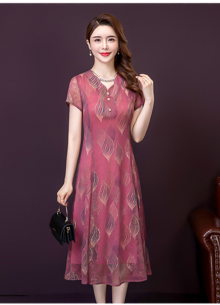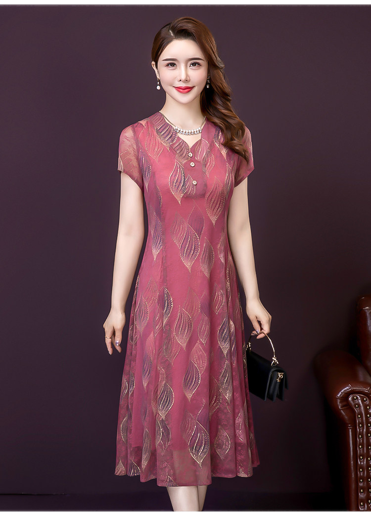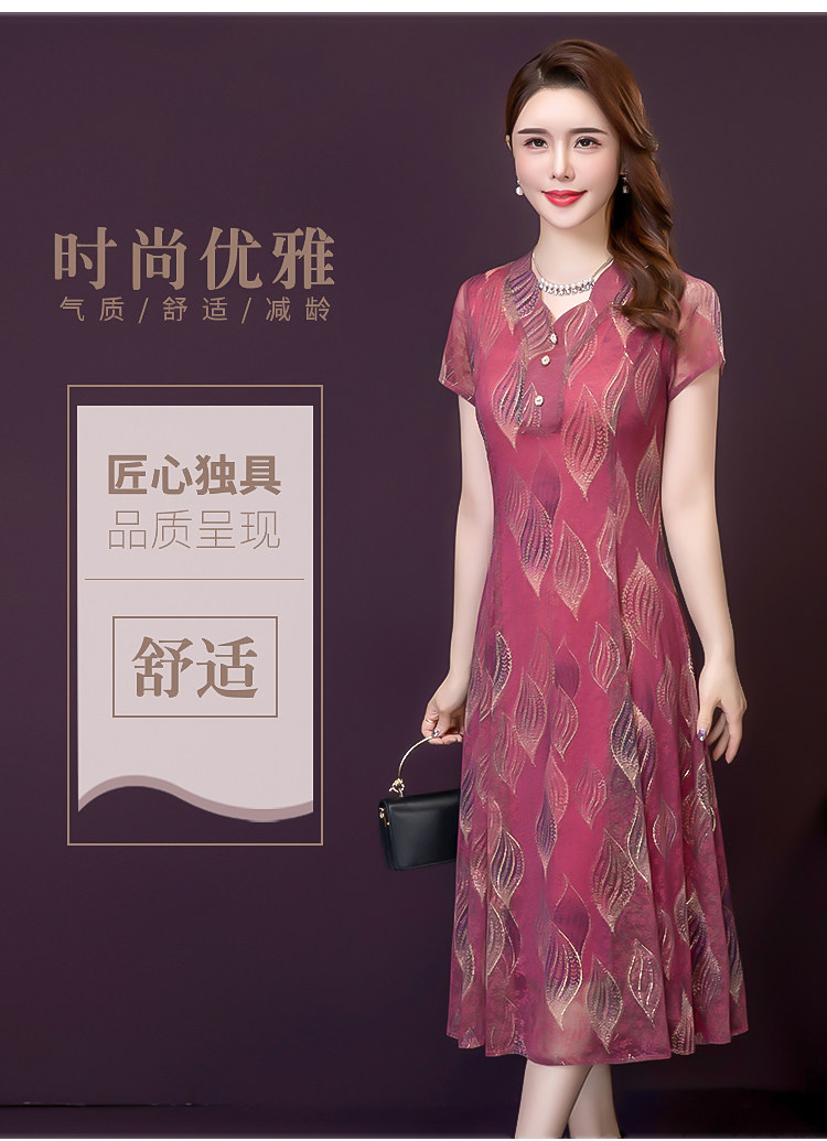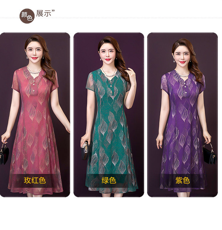 LFJR-8339实拍阔太太短袖洋气高档连衣裙
