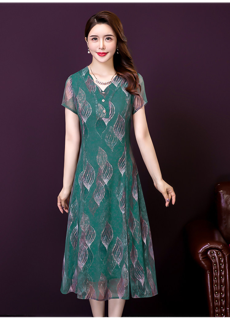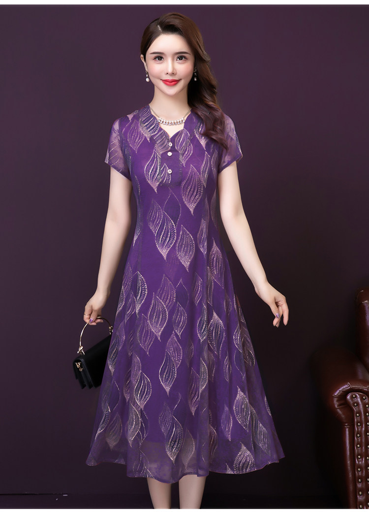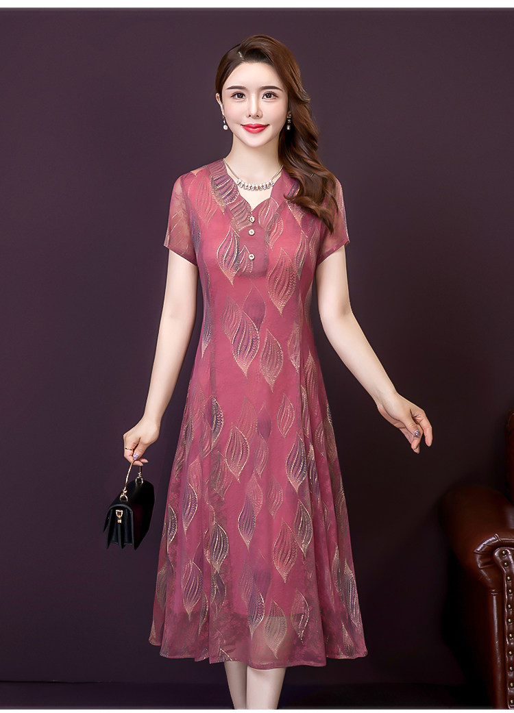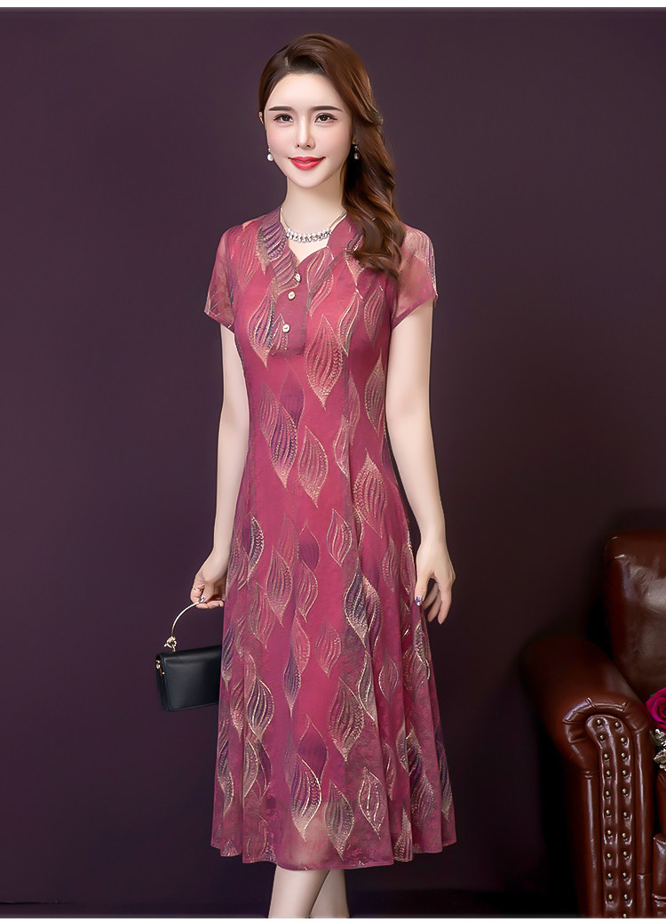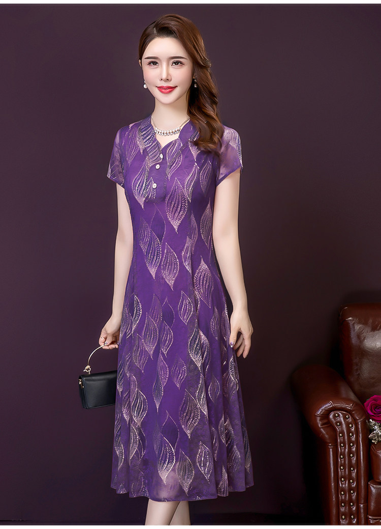 LFJR-8339实拍阔太太短袖洋气高档连衣裙