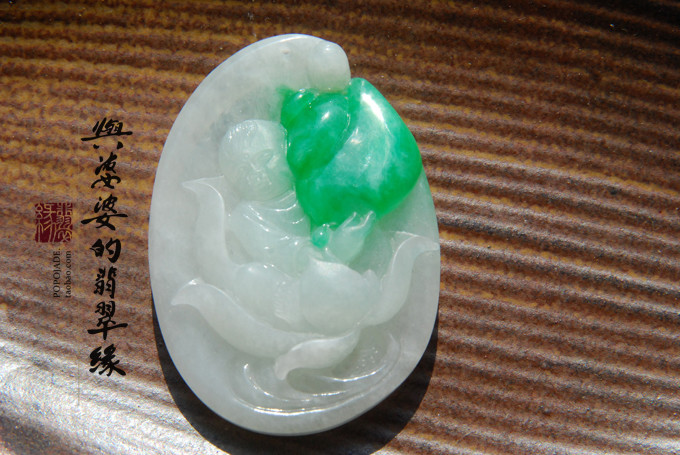 何为福宝?童子手奉的那一抹艳绿,绿到你的心里你、脑海里,无疑是整块挂件最具价值的部分,也是翡翠最珍贵的颜色!