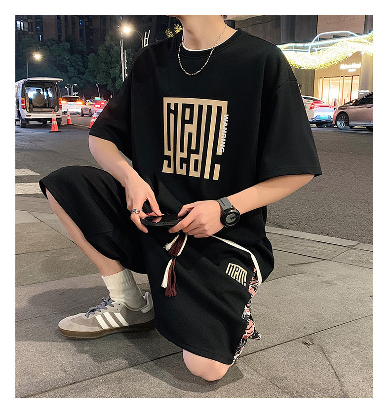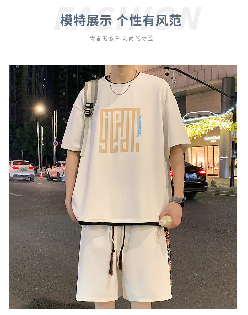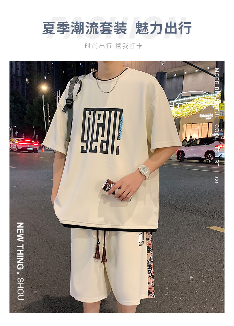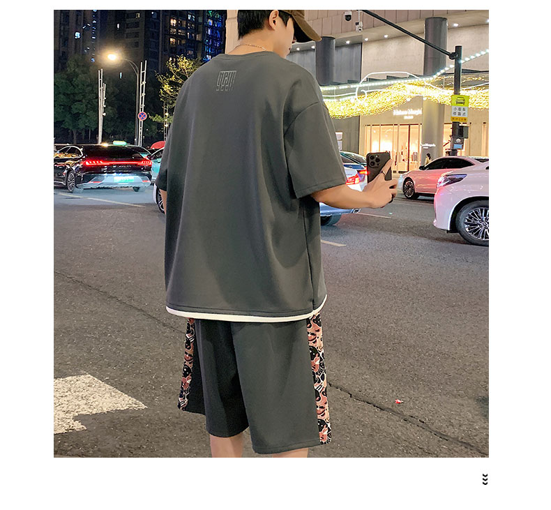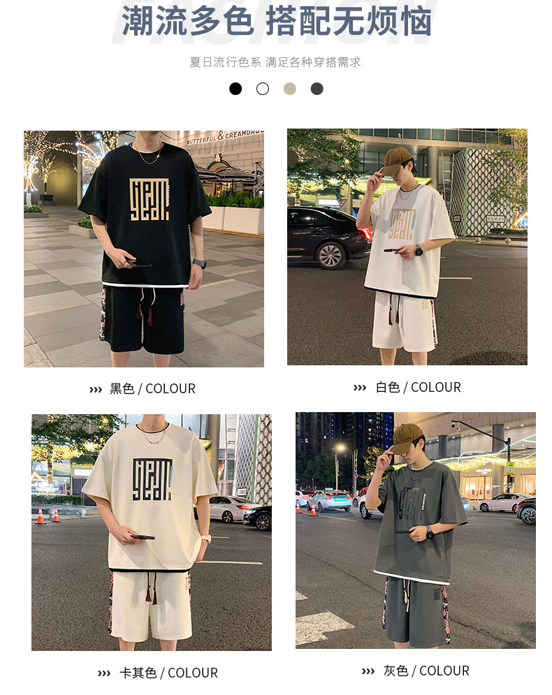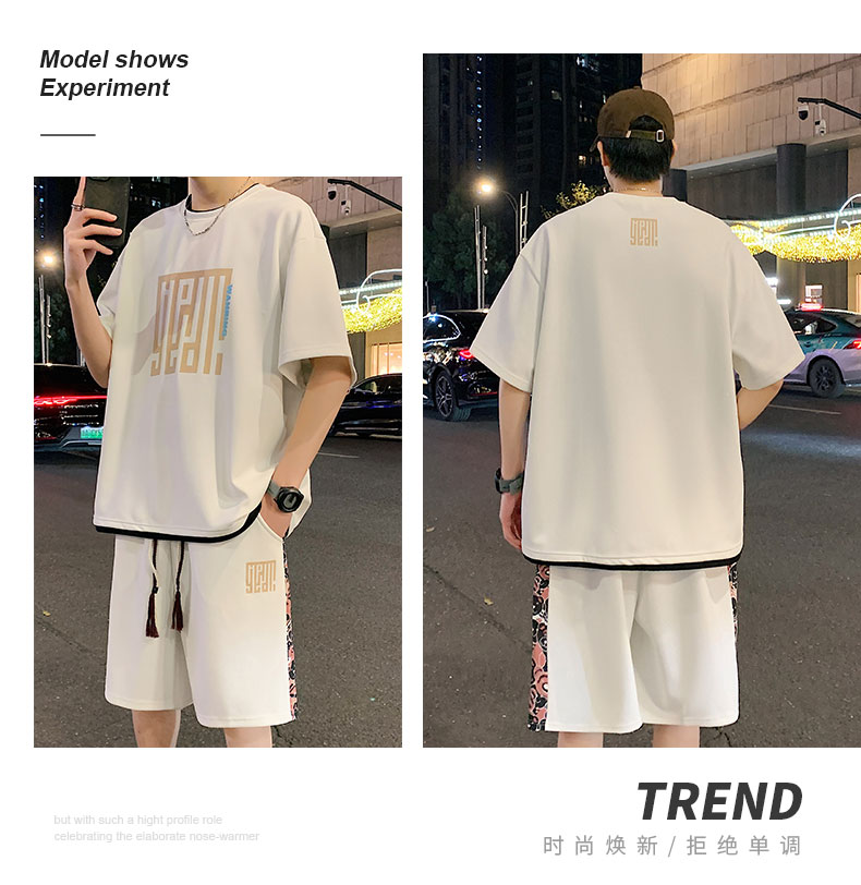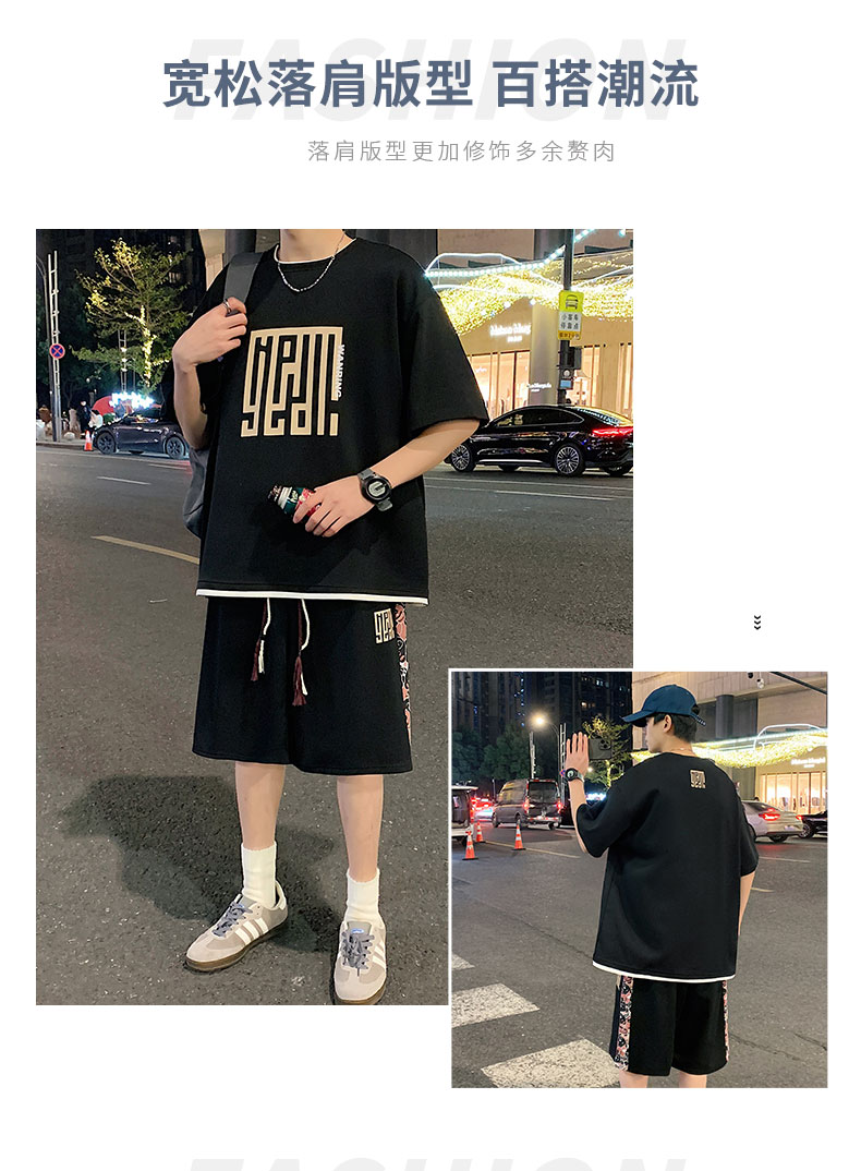 【套装】【DYY】大依优型大码圆领短袖T恤短裤套装夏季加肥加大肥佬休闲宽松透气弹力男装上衣潮款