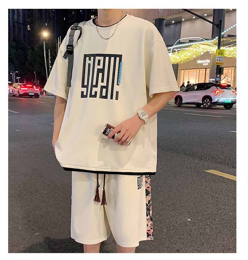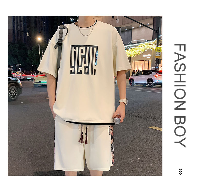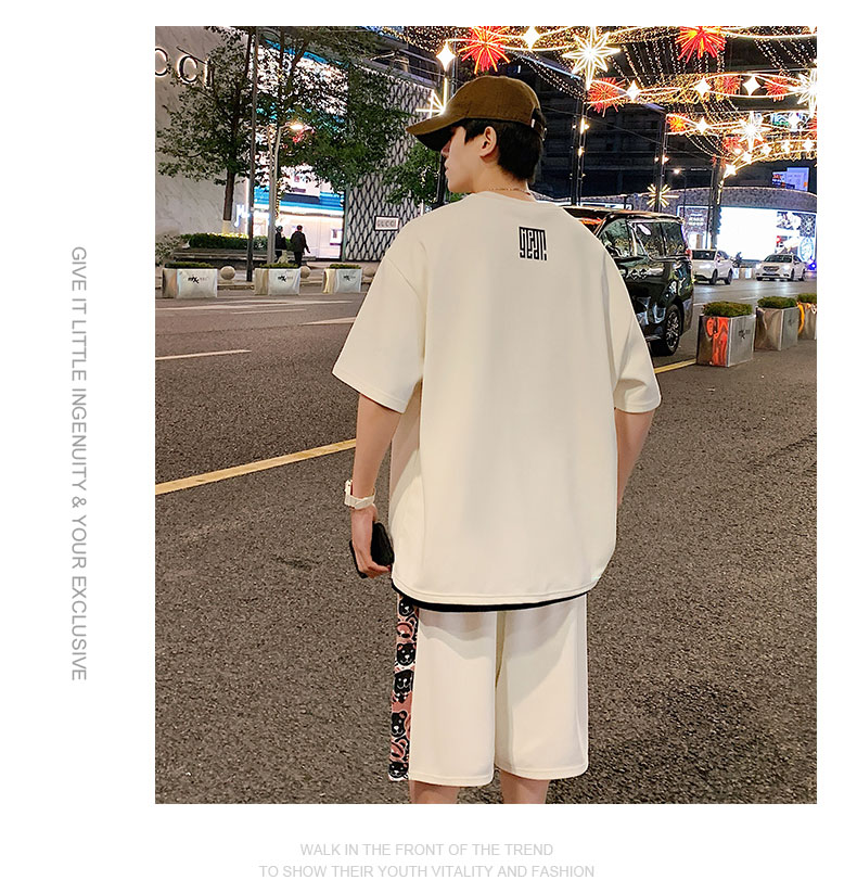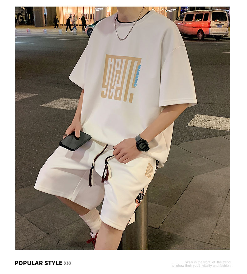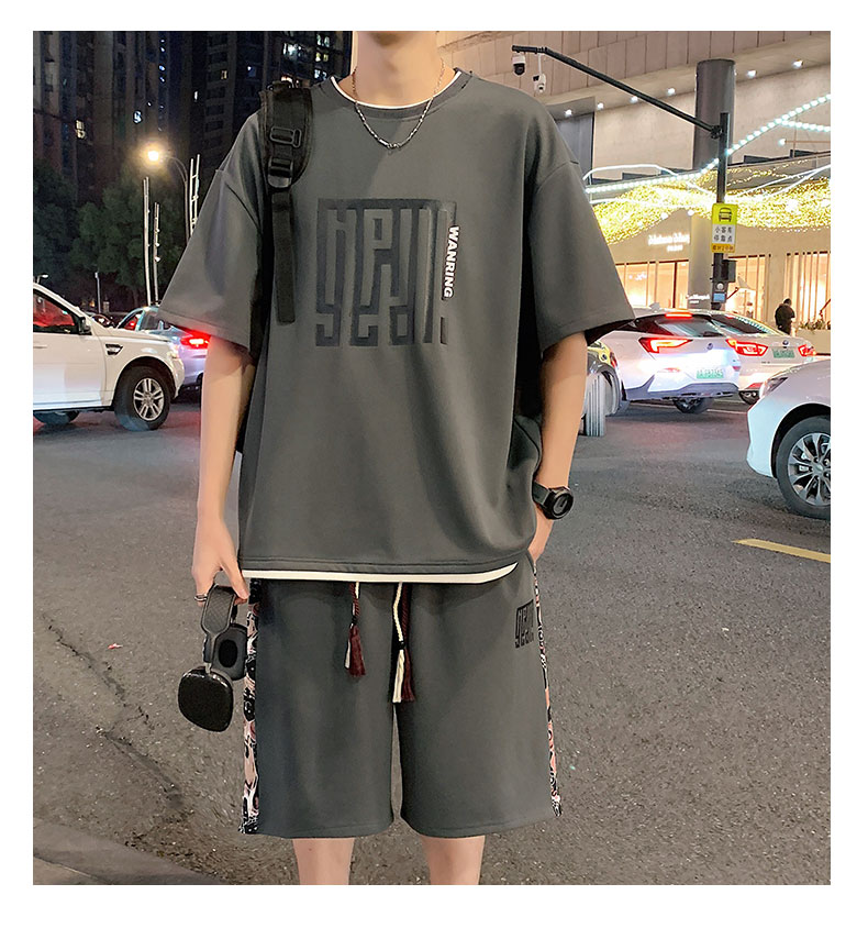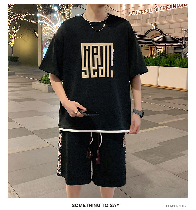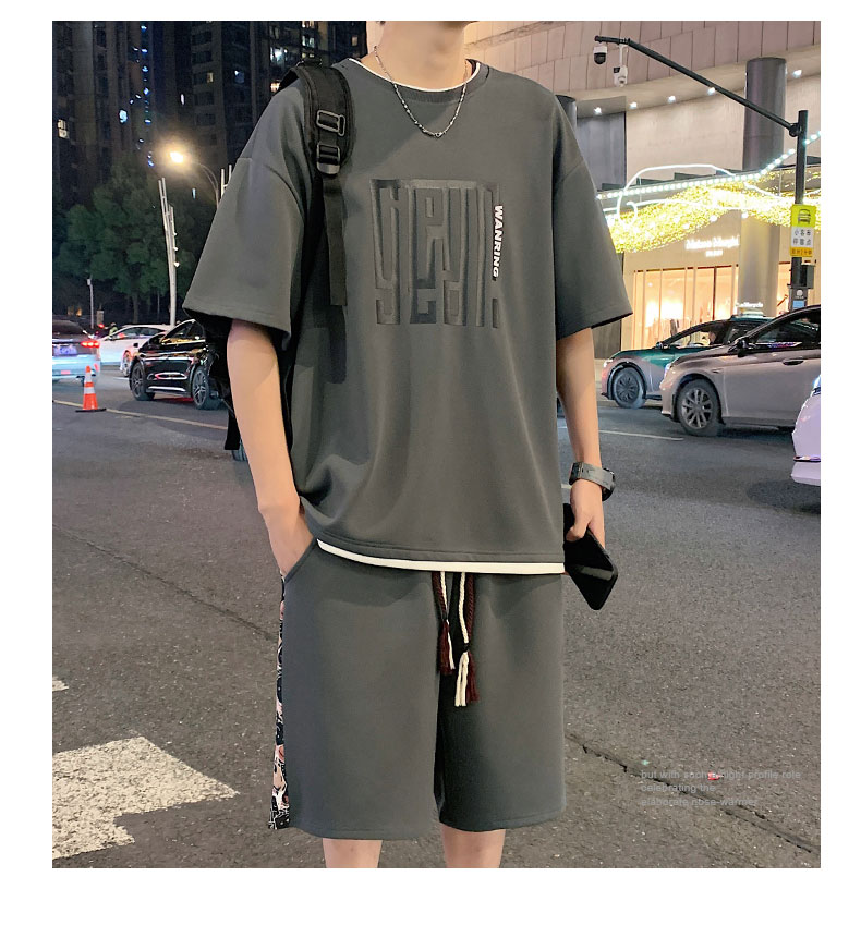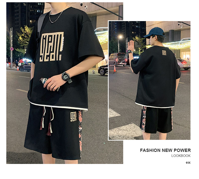 【套装】【DYY】大依优型大码圆领短袖T恤短裤套装夏季加肥加大肥佬休闲宽松透气弹力男装上衣潮款