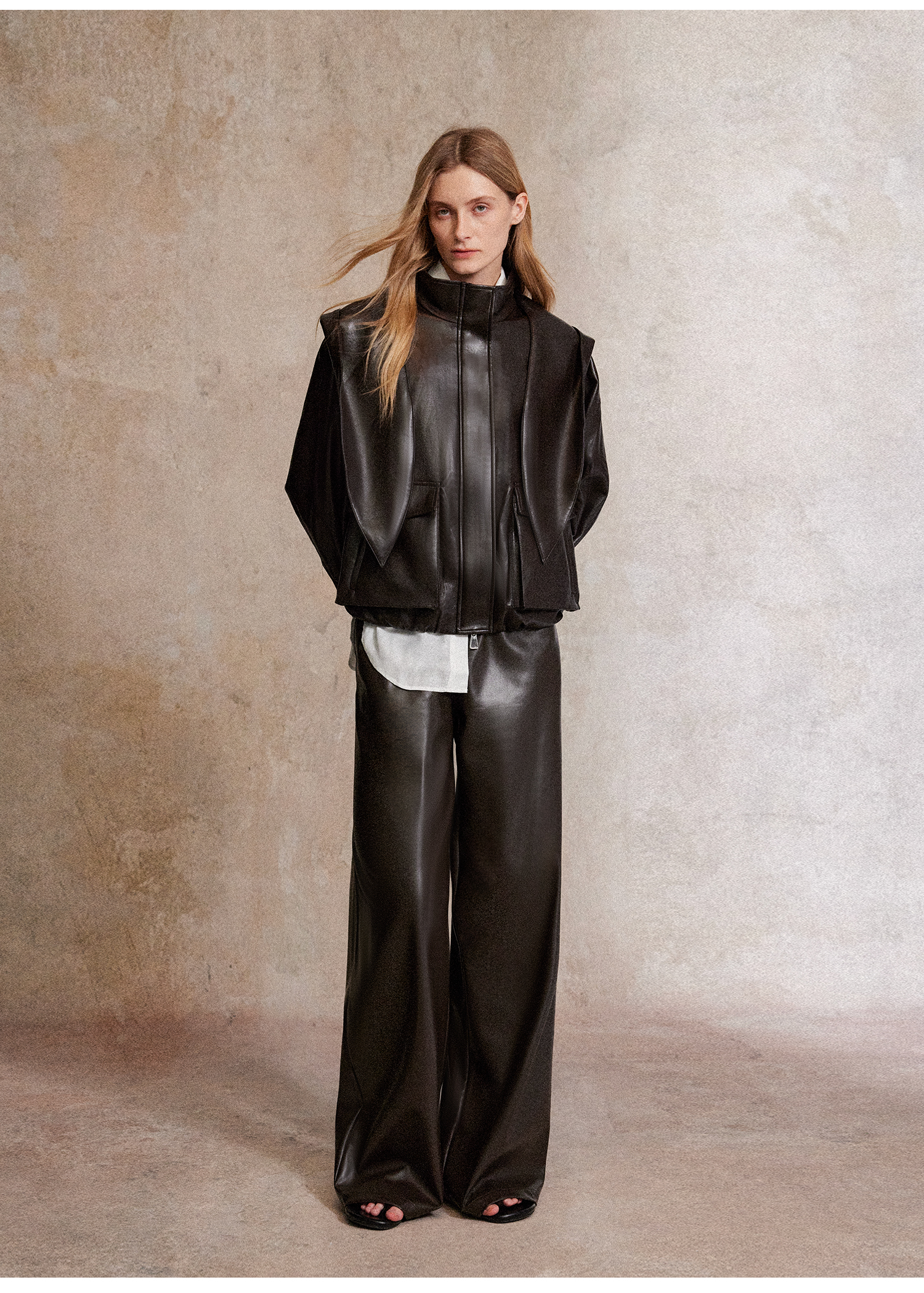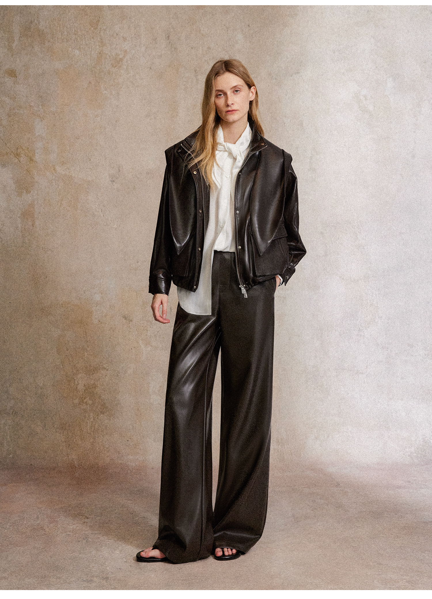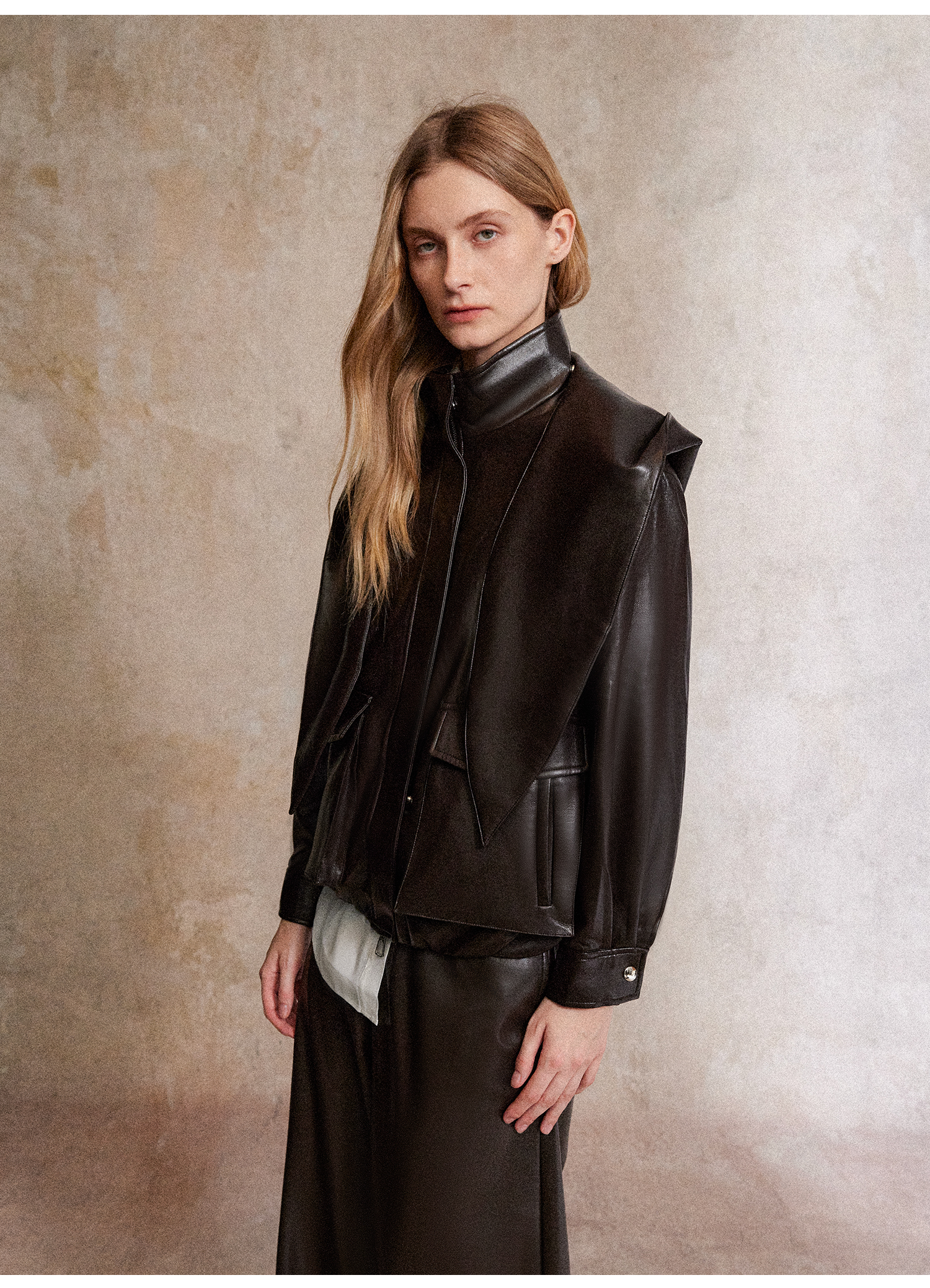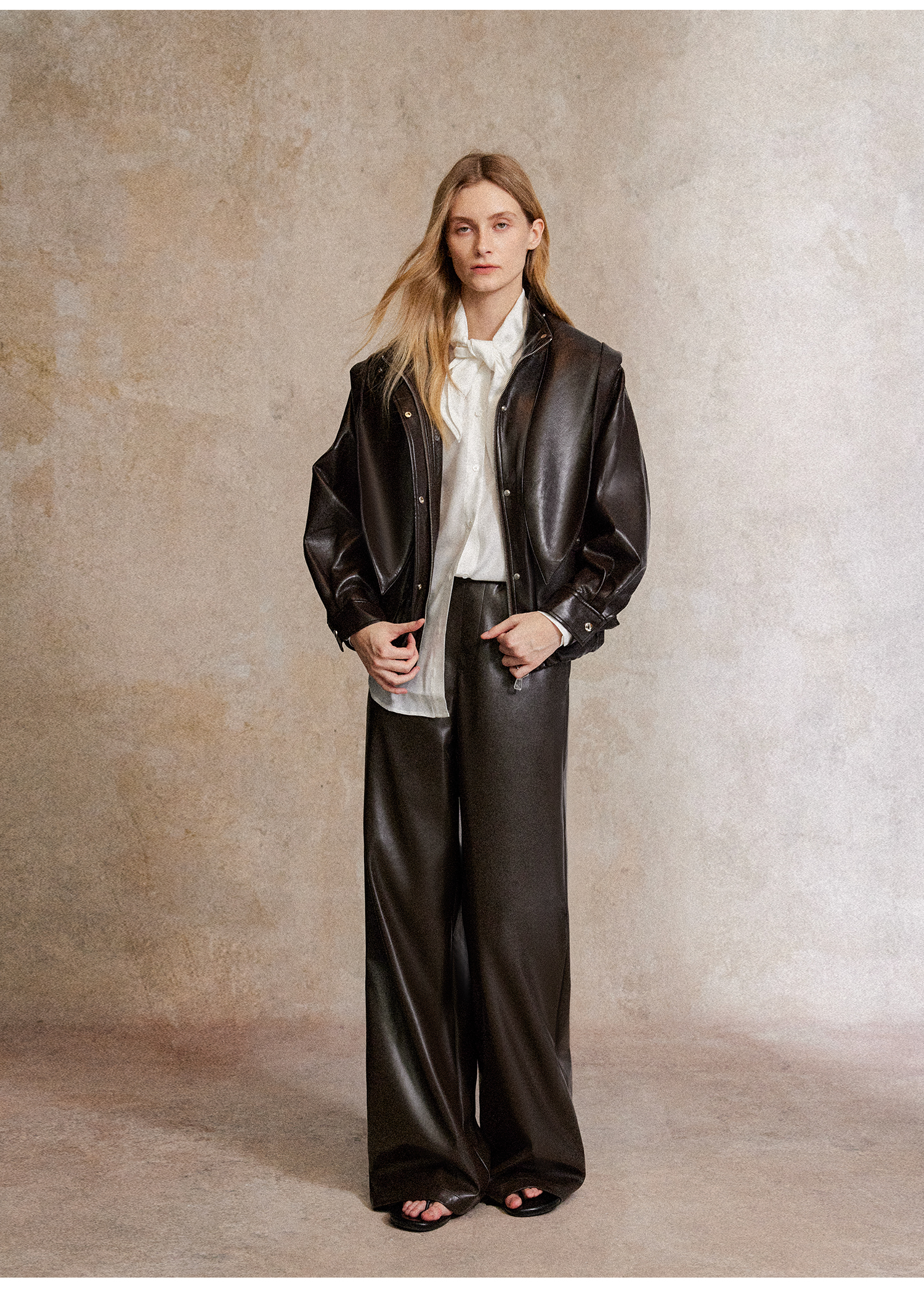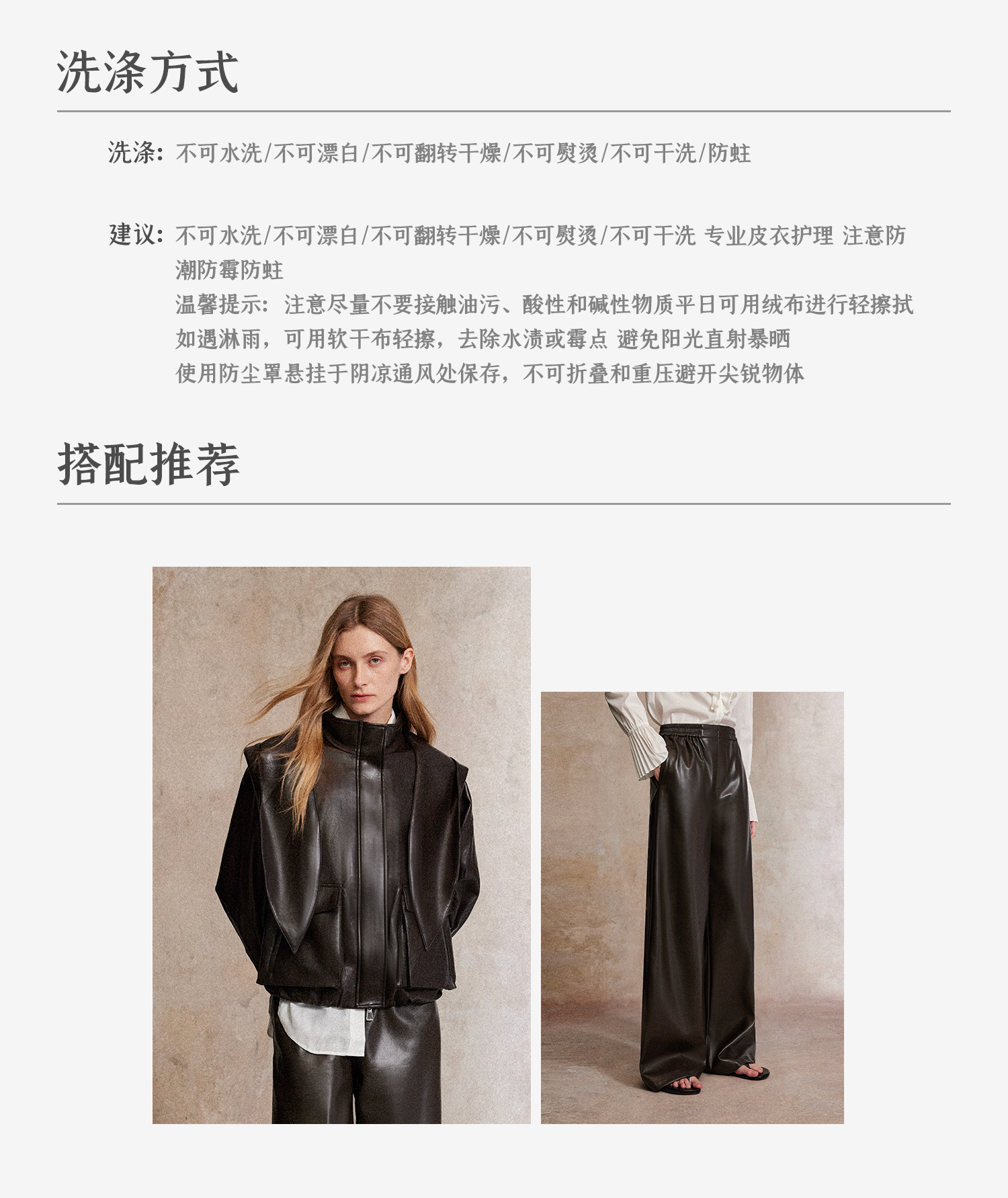 C+IMPRESS/西嘉酷飒新主张 连帽系结设计感两穿蛋白皮外套女皮衣