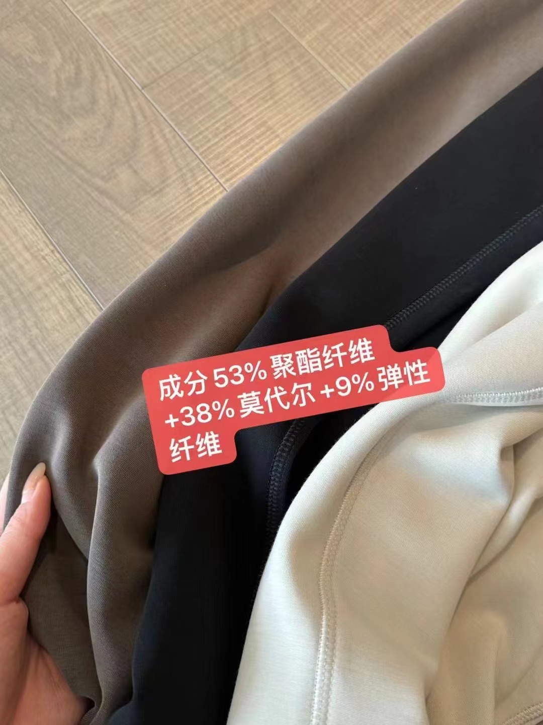 FABRIC/面料:53%聚酯纤维,38%莫代尔,9%弹性纤维