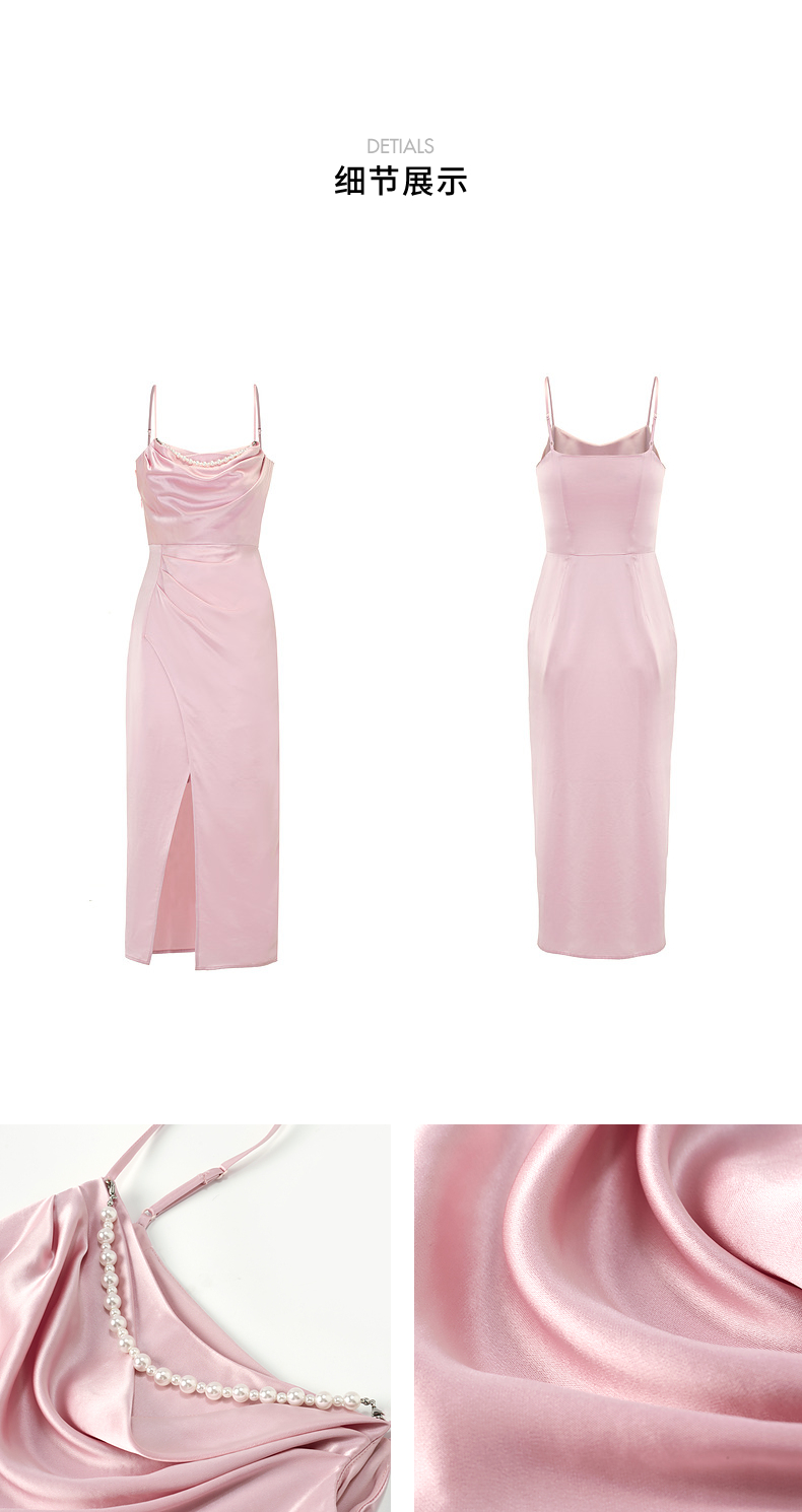 MAXRIENY法式浪漫荡领吊带连衣裙醋酸缎面裙子(货号:MS85DR025)