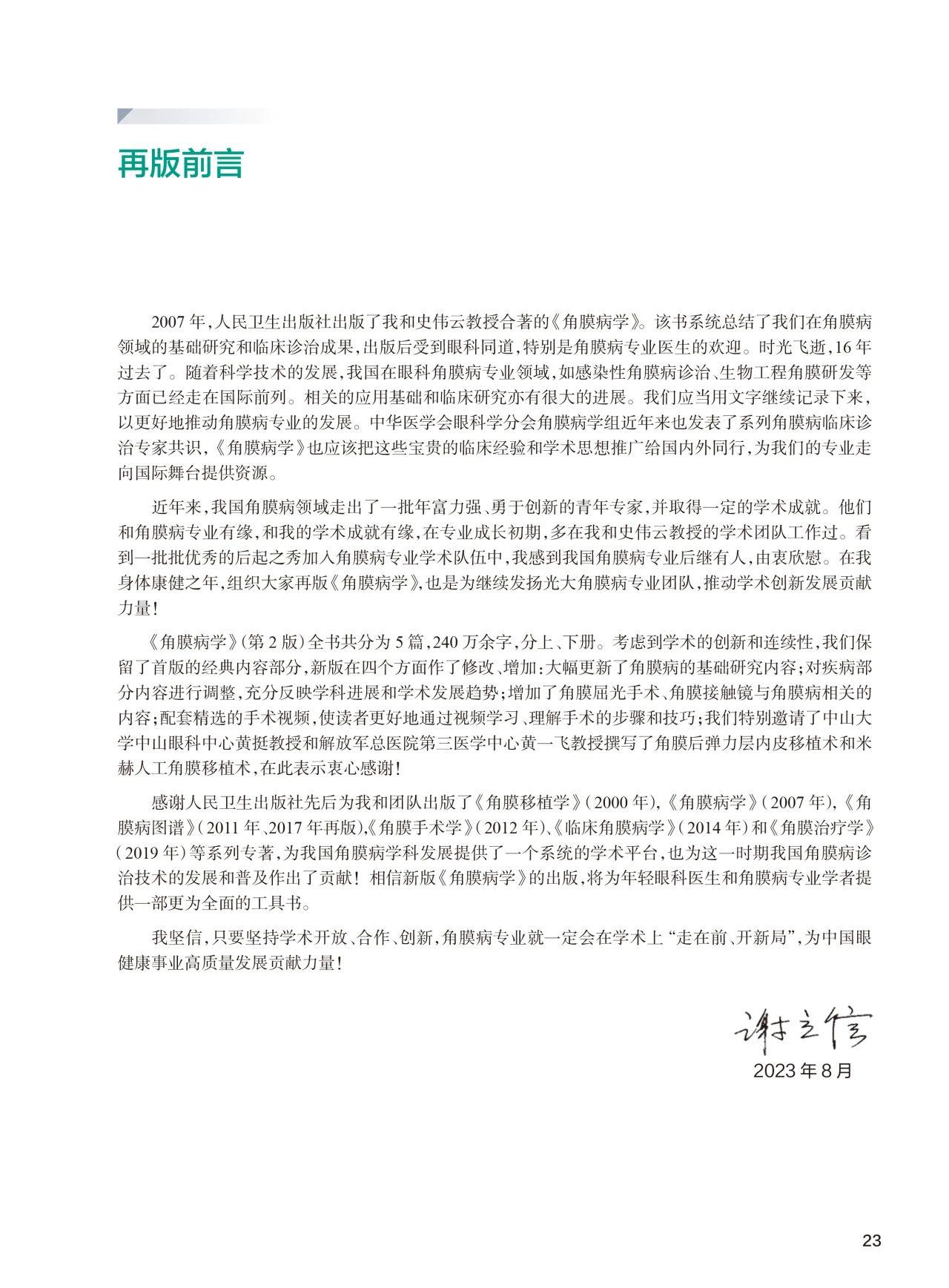 本书分上、下两册,共5大篇,35章,175节,版面字数240.8万字,含1800余幅插图。全面反映角膜病及相关专业领域的新进展、新成果:大幅更新角膜病基础研究内容;对疾病篇章全面修订,充分反映学科进展和学术发展趋势;增加角膜屈光手术、角膜接触镜与角膜病相关内容;配套26段精选手术视频;为眼科角膜病专业研究生、医师和相关研究人员提供由浅入深、全面系统的角膜病规范和创新诊疗知识。