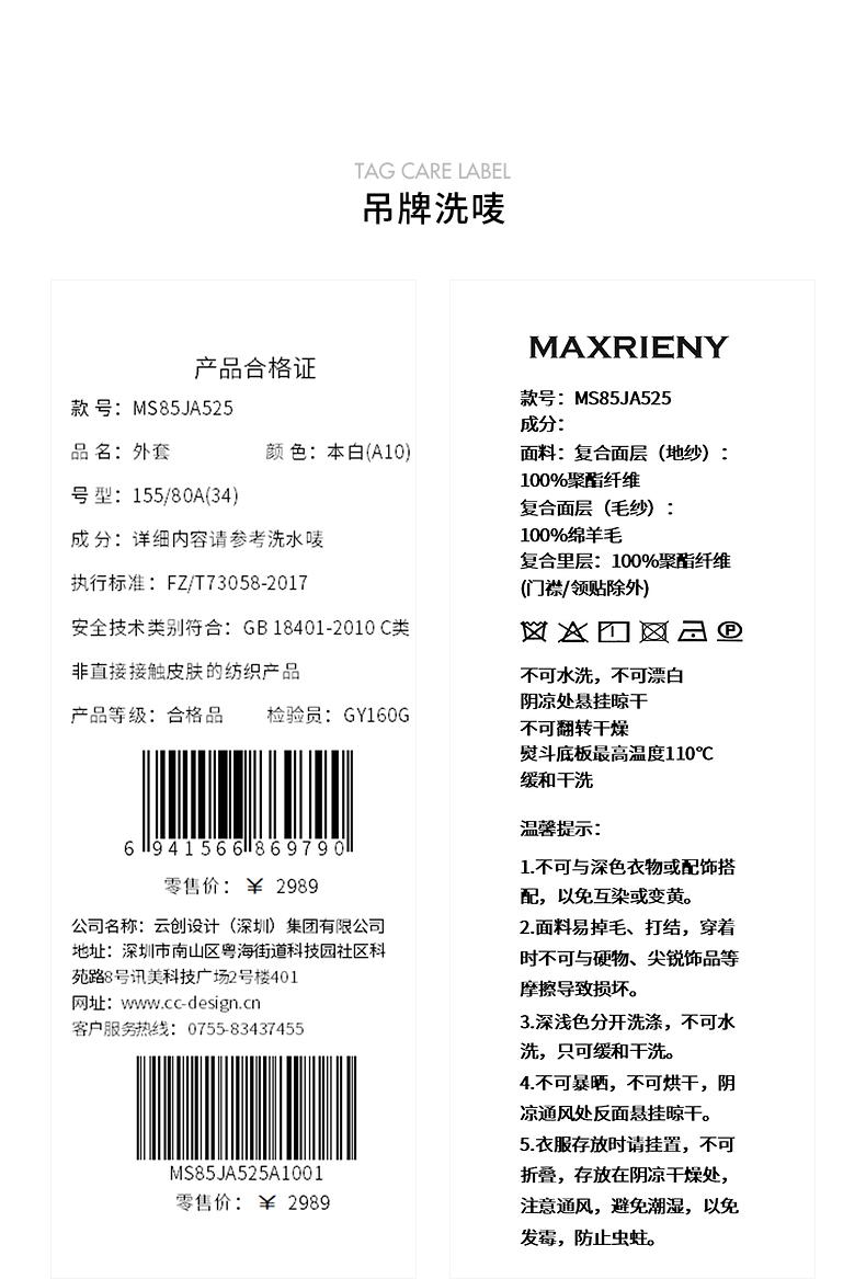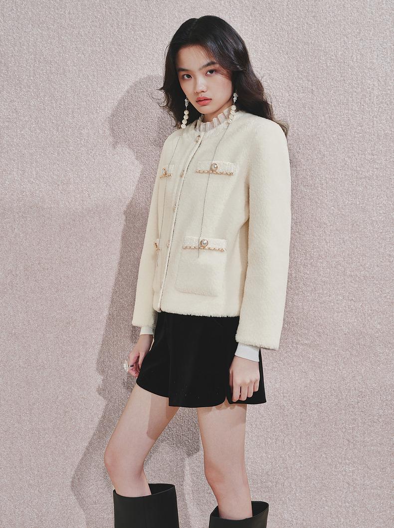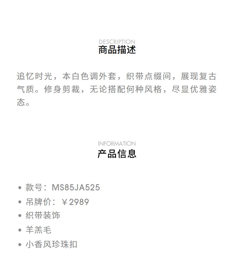 MAXRIENY富家千金羊毛外套女24秋新款法式小香风高级气质感设计(货号:MS85JA525)