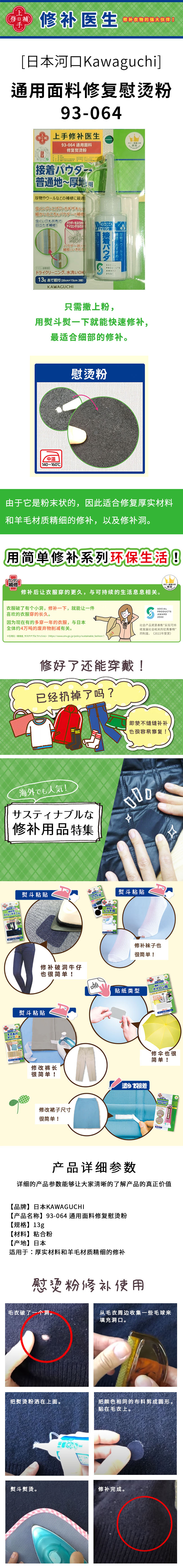 日本河口KAWAGUCHI 93-064 通用面料修复熨烫粉