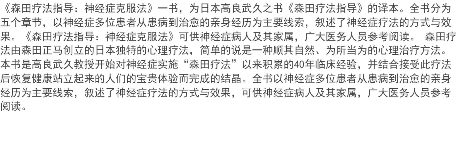 森田疗法指导神经症克服法 【日】高良武久 王祖承 陆谢森 陈幼寅 上海交通大学出版社