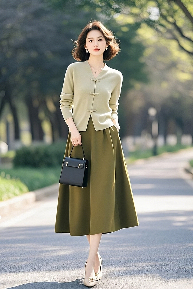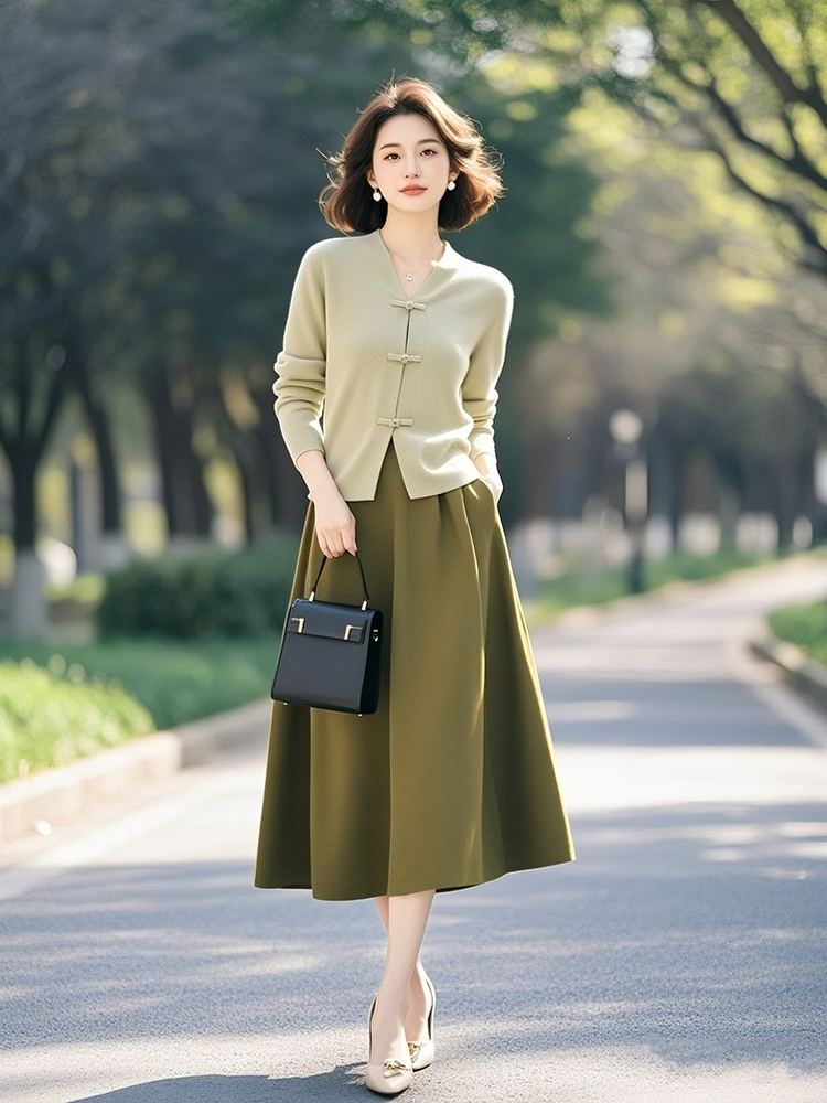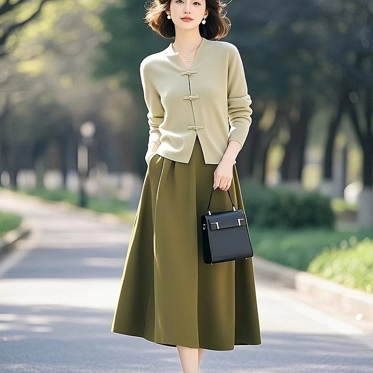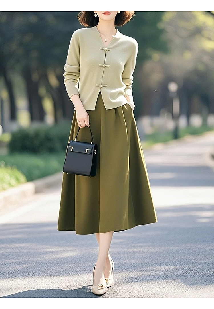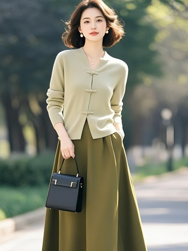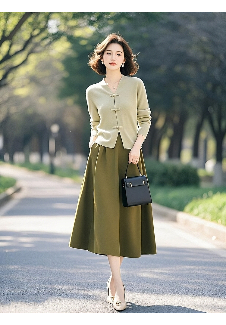 (预售15天)休闲气质新中式,绿色针织毛衣减龄两件套装LJX-369