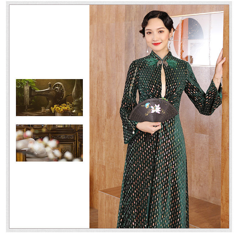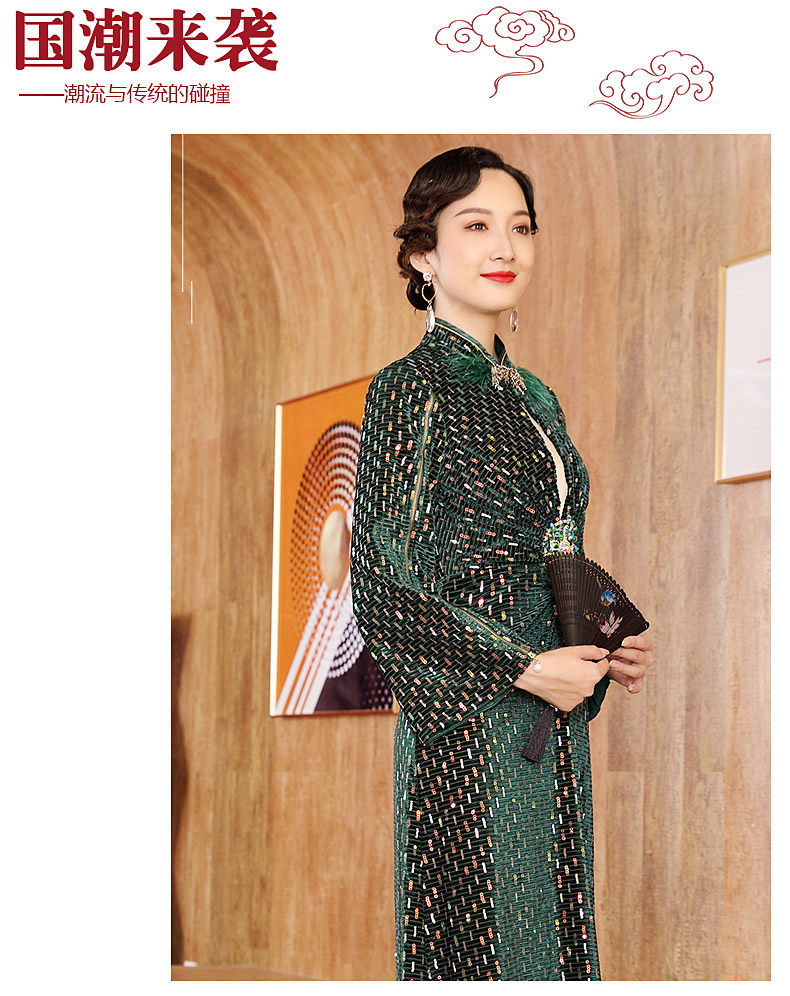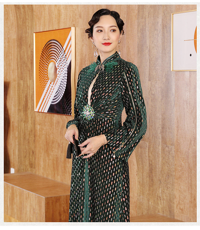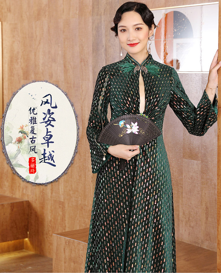 DLQ-A2644新款轻奢名媛气质亮片丝绒礼服