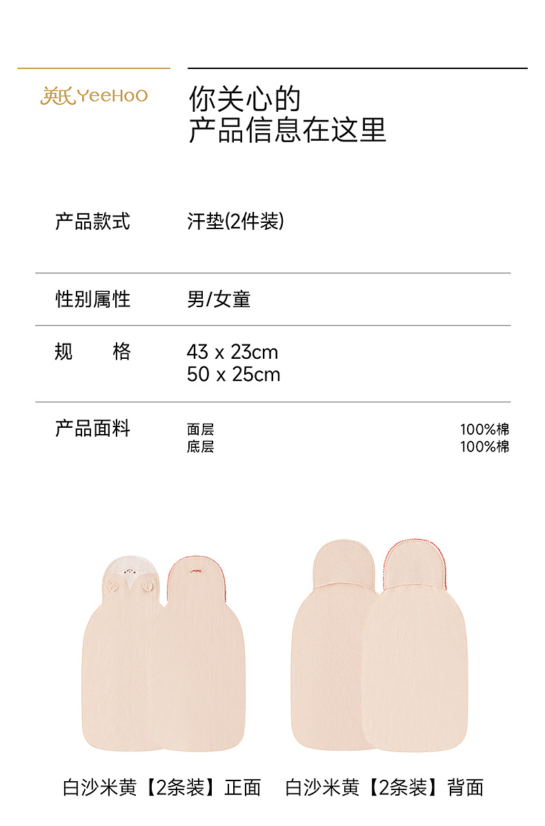 【商场同款】英氏儿童吸汗巾双层纯棉纱布巾新生宝宝垫背巾2条装