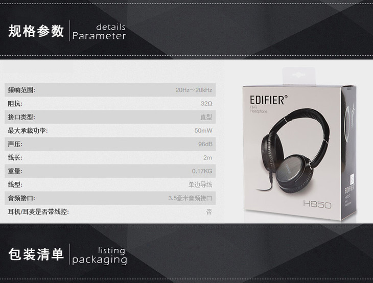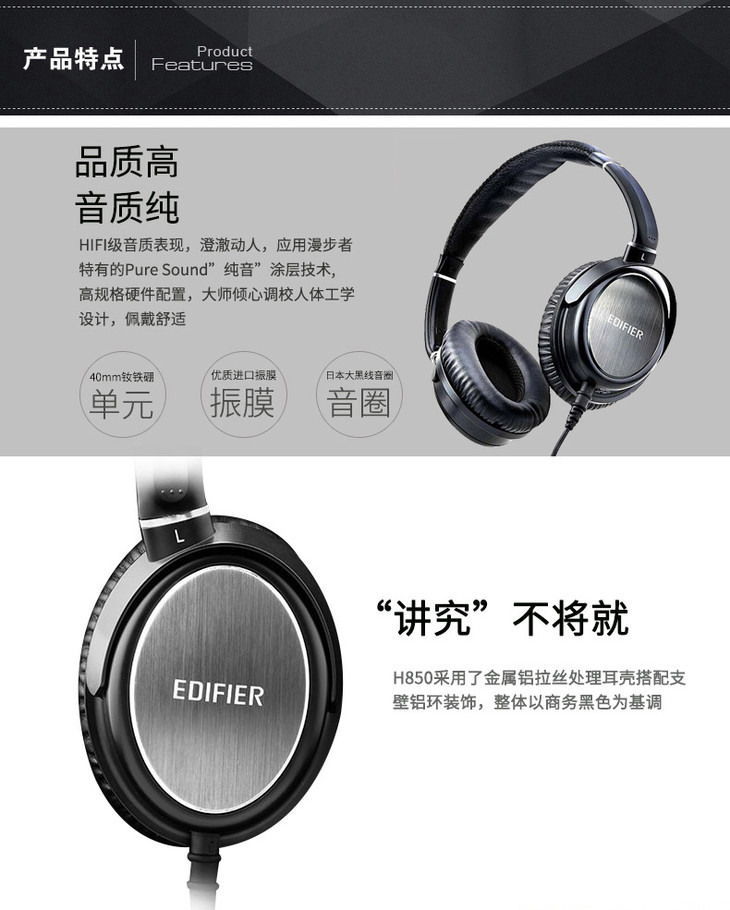 Edifier/漫步者 H850 HIFI音乐发烧耳机头戴式电脑手机MP3耳机潮
