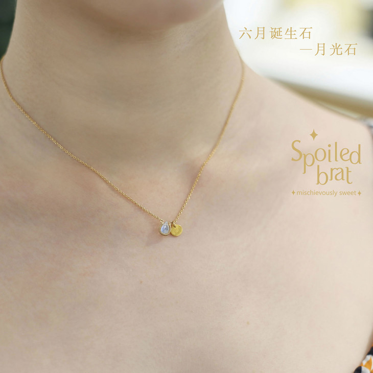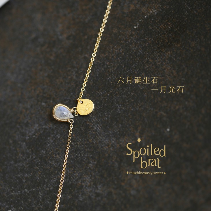 材质:美国进口14K注金,天然月光石,logo牌为纯银镀金
