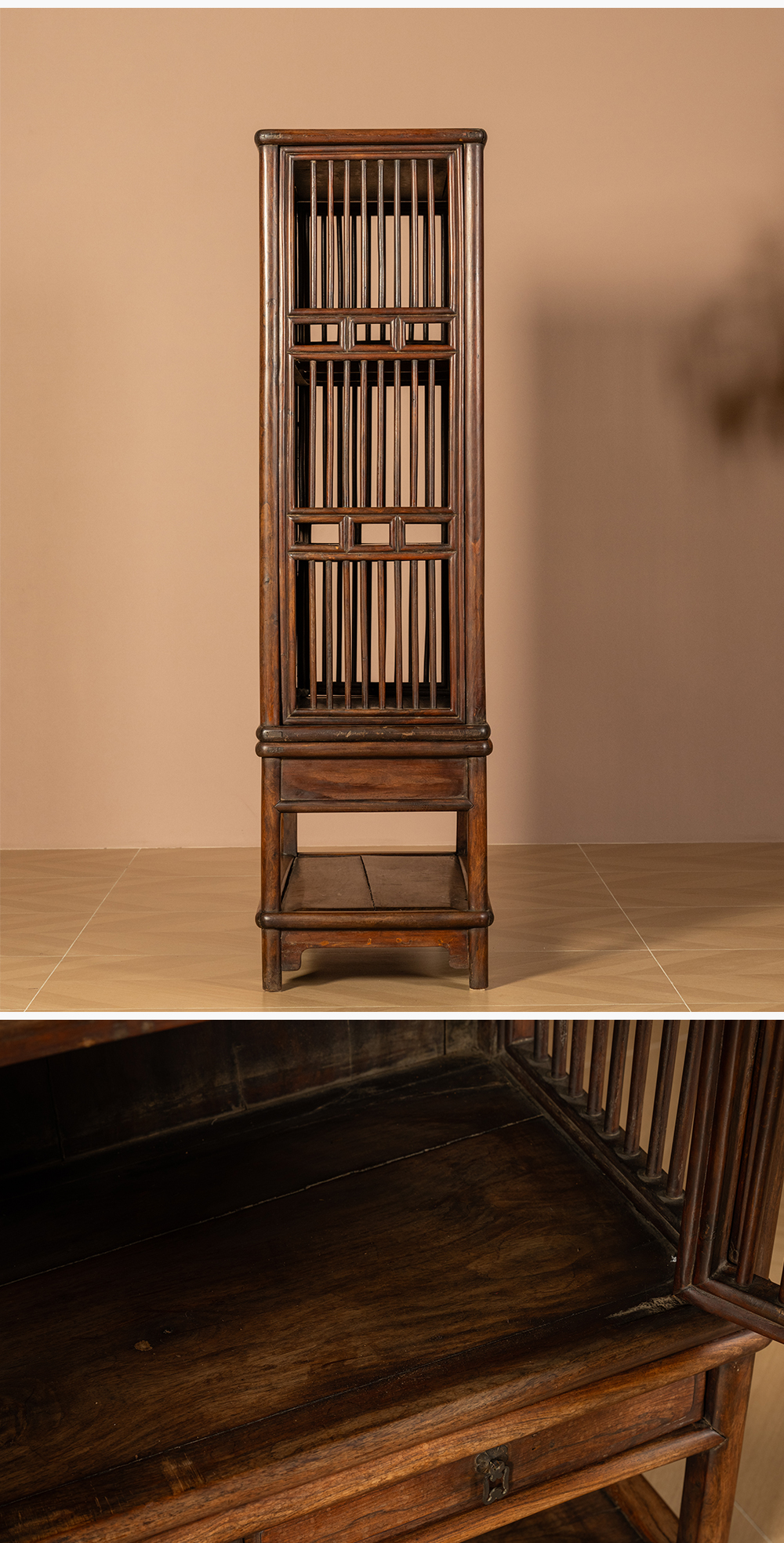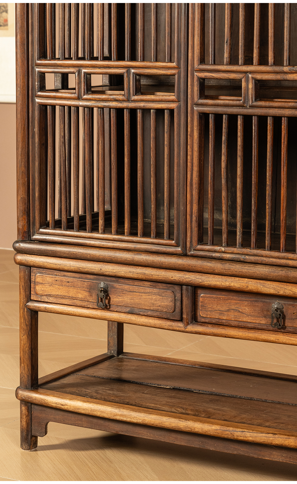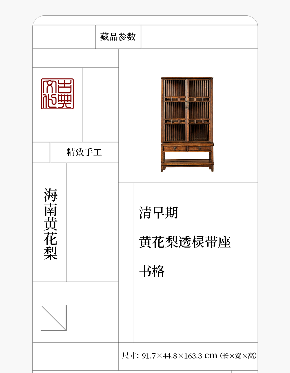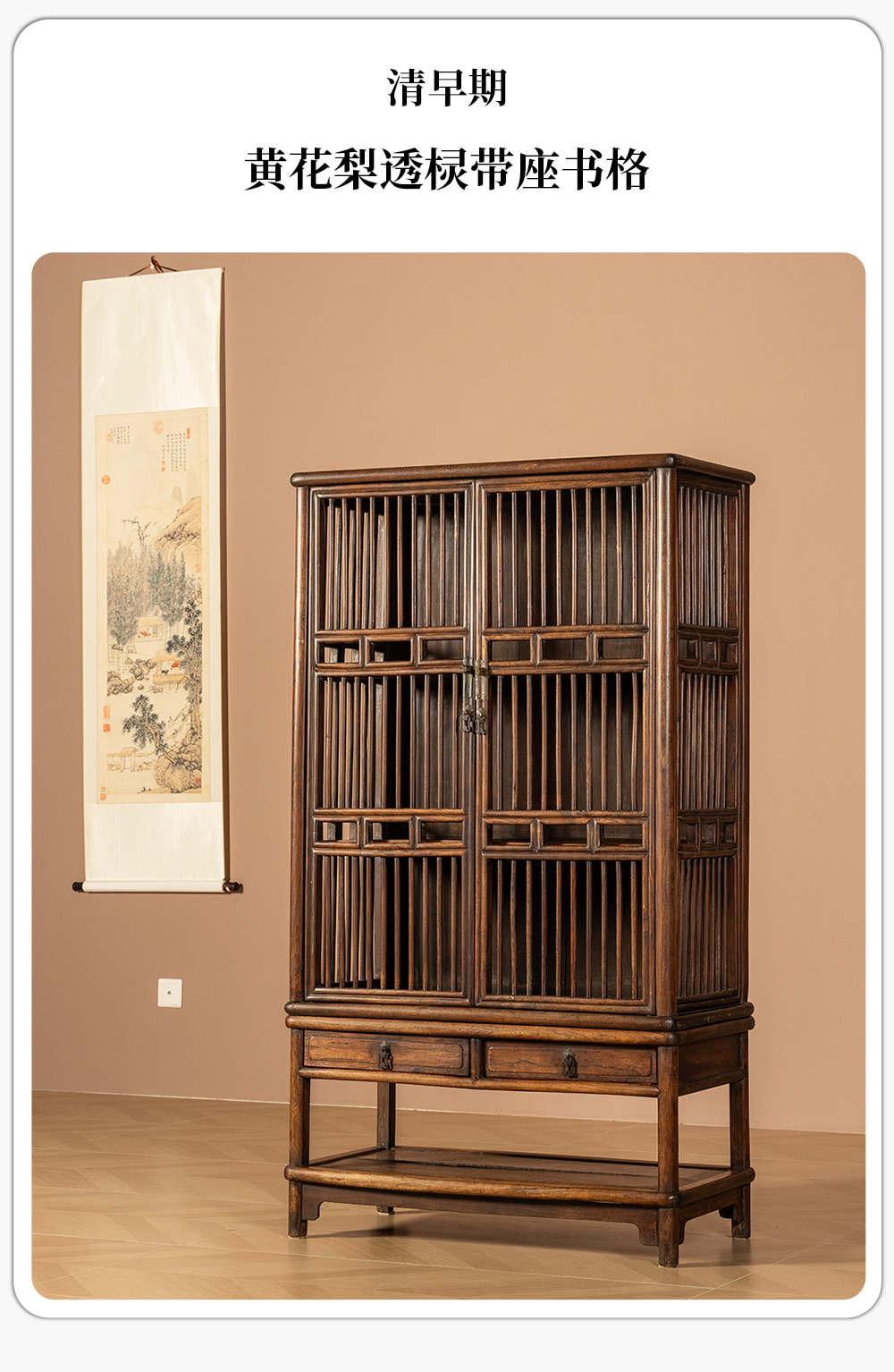 清早期 黄花梨透棂带座书格