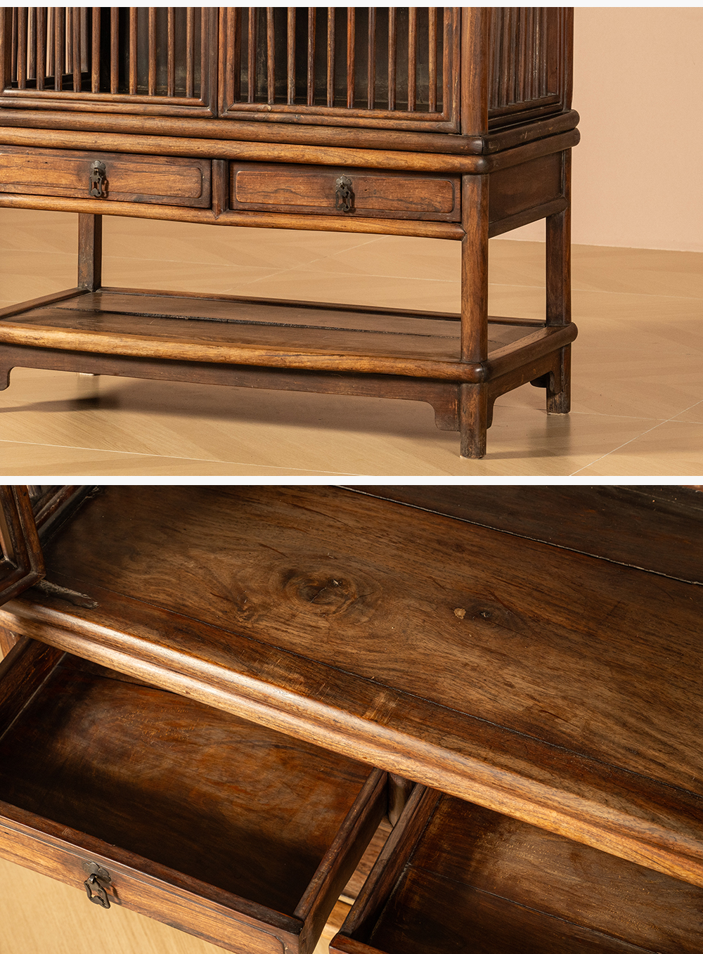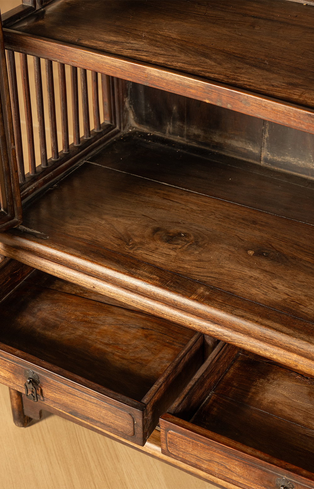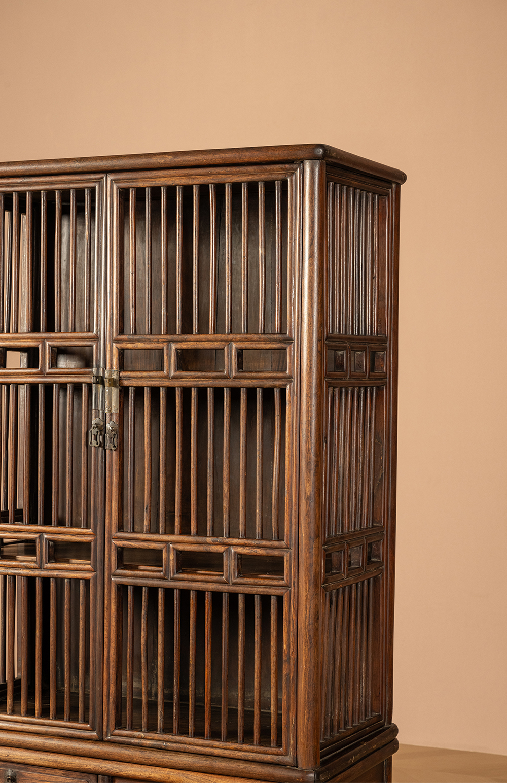 清早期 黄花梨透棂带座书格