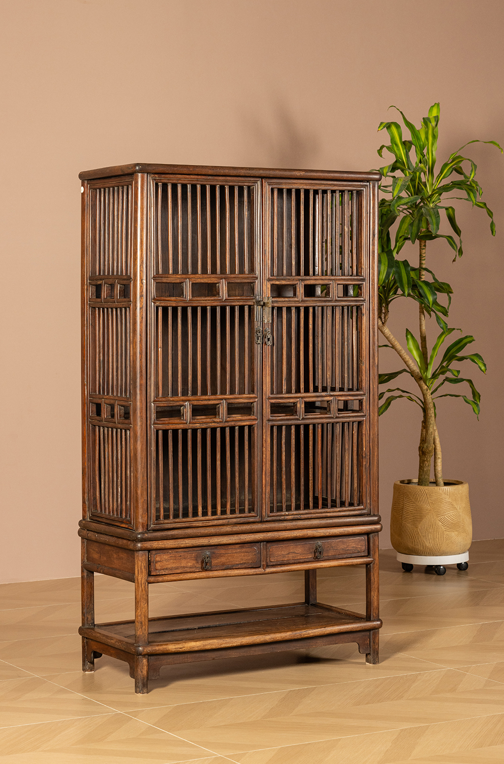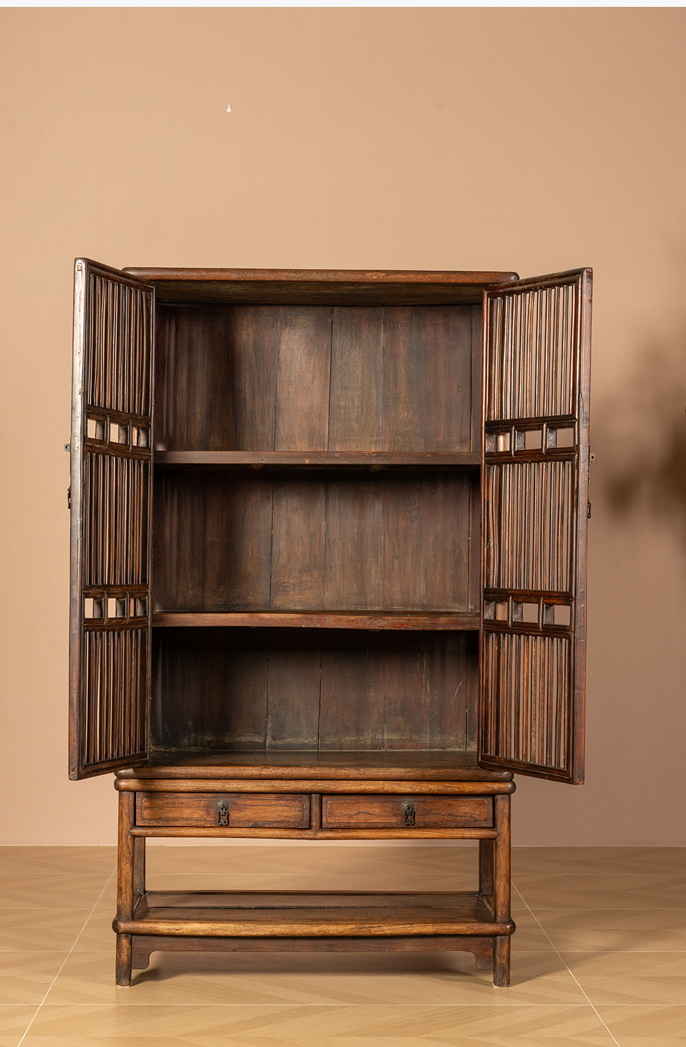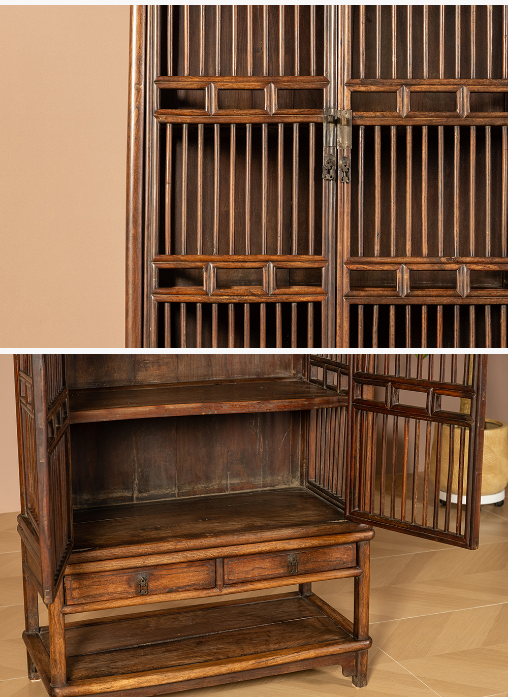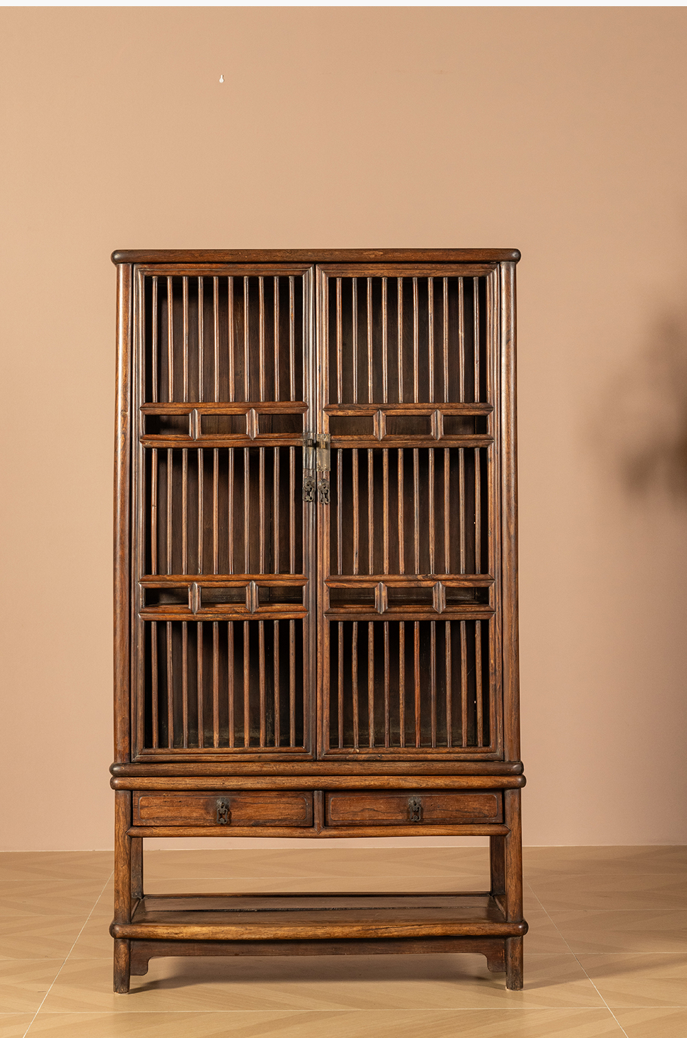 清早期 黄花梨透棂带座书格