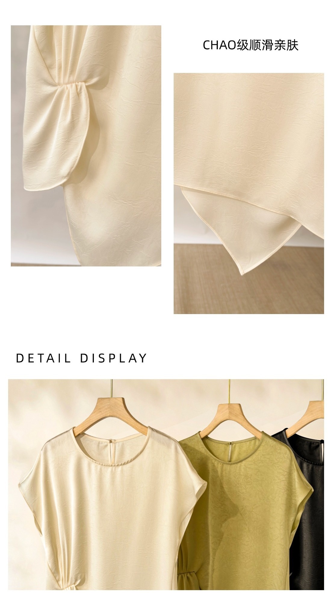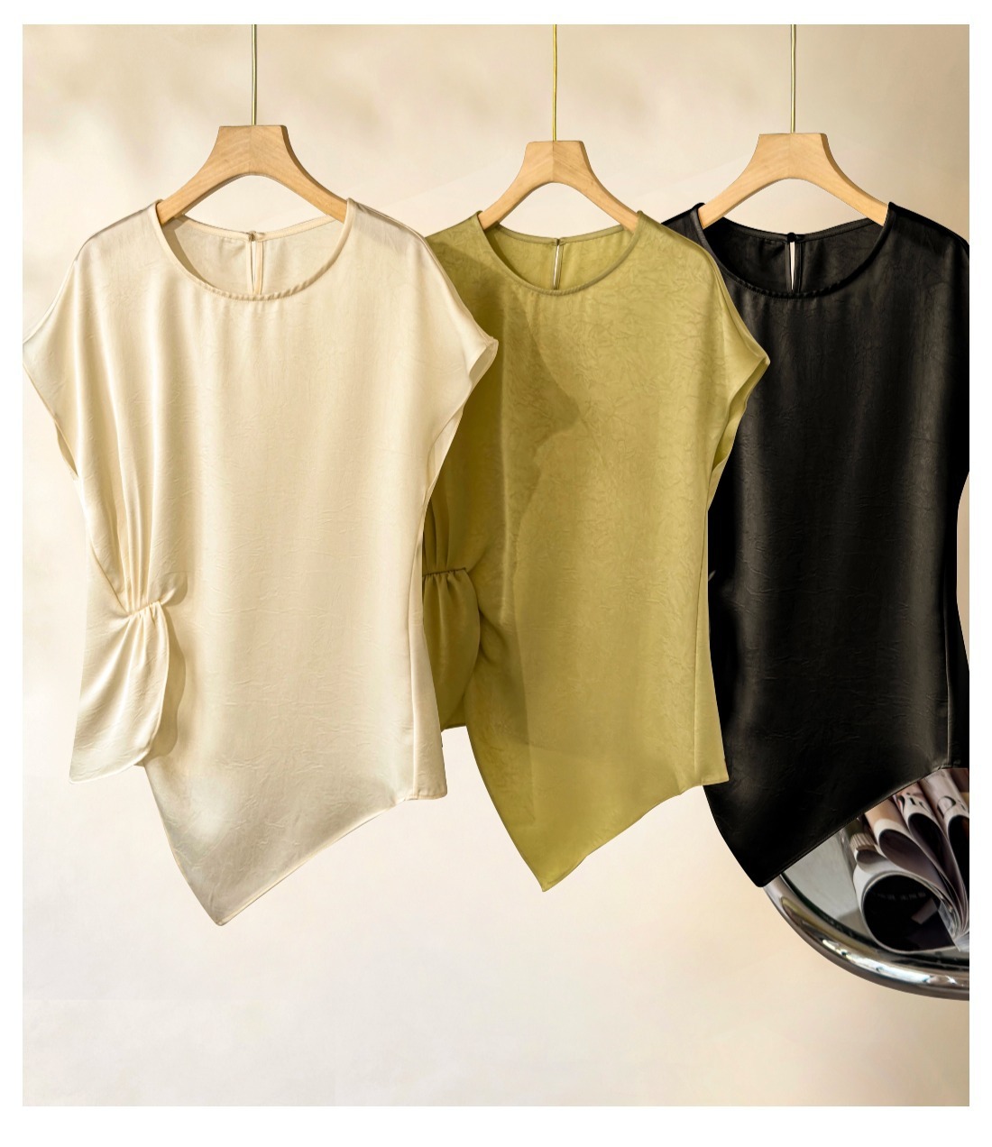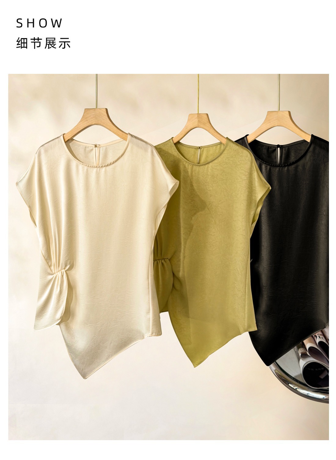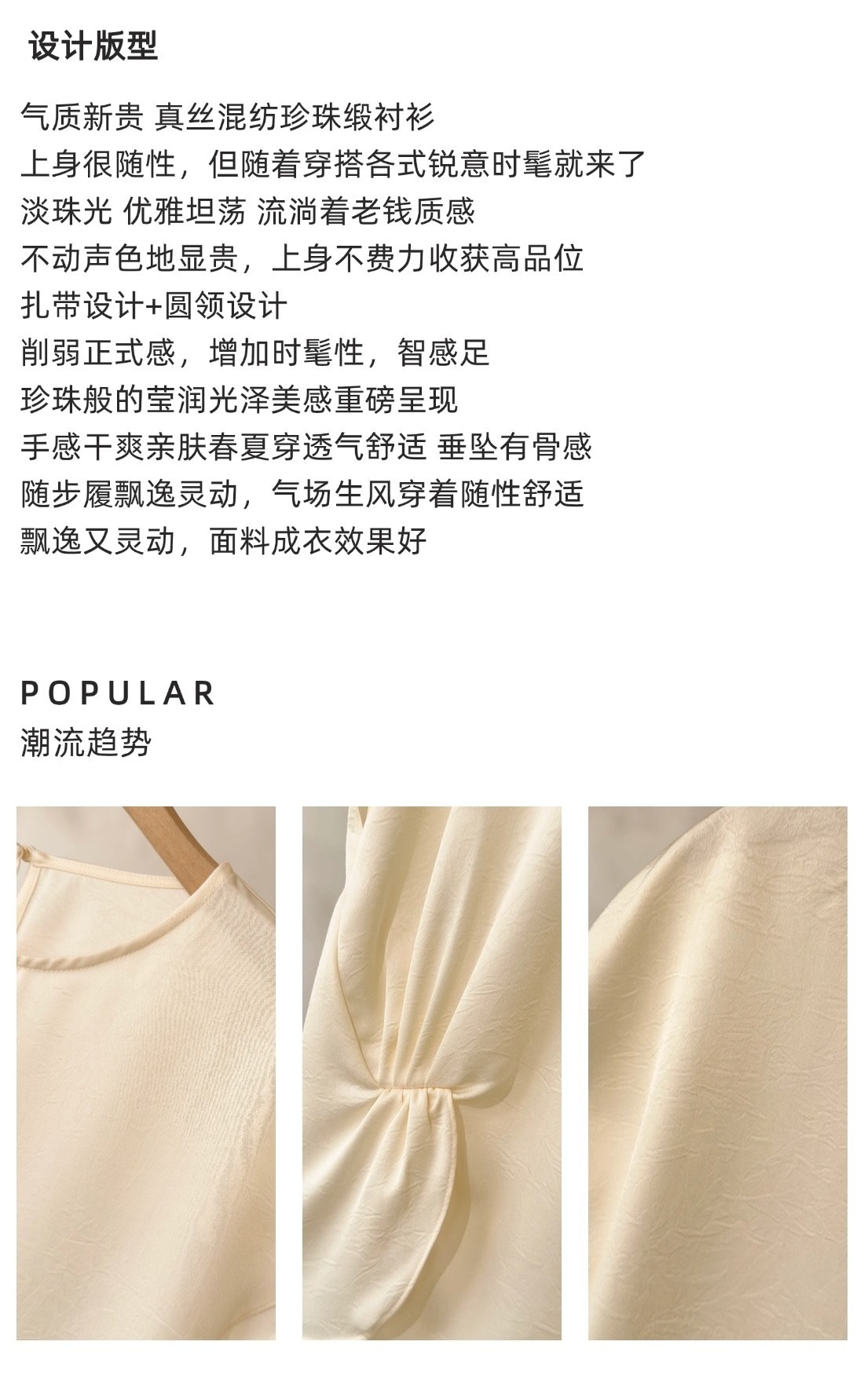 「自」全新升级【铂金会员312/天猫419/差价107】(22134)洛诗琳褶皱桑蚕丝衬衫2025年夏季收腰圆领不规则设计感小衫