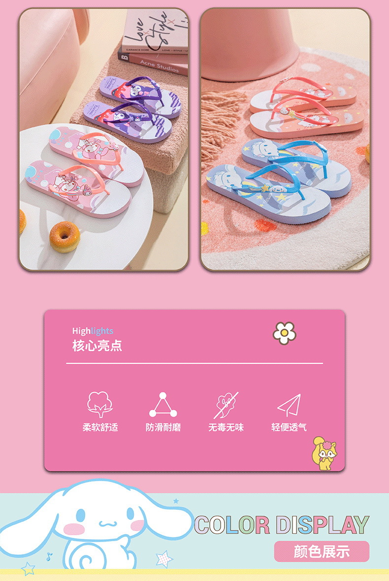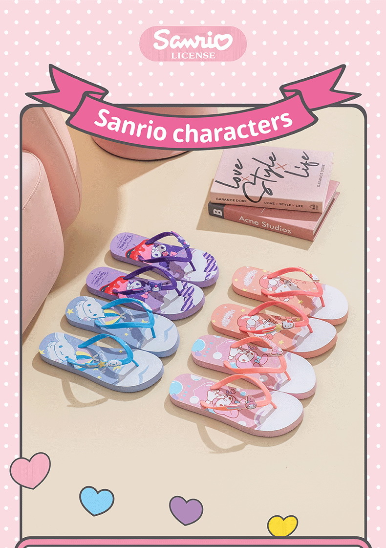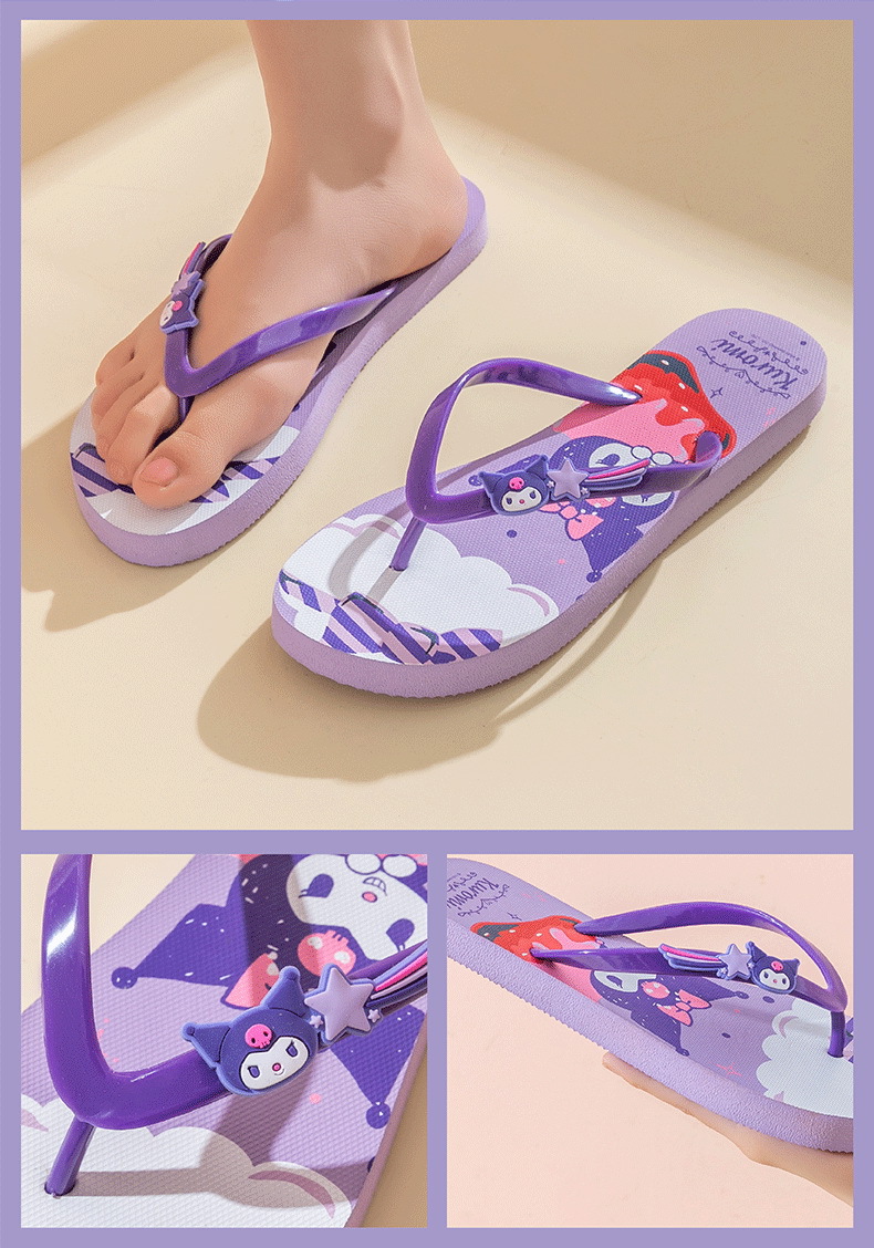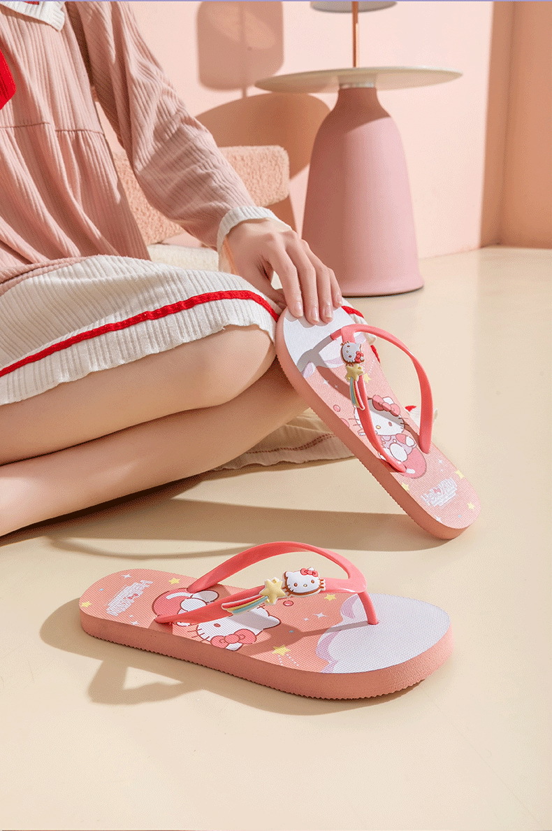 【轻便舒适,潮流百搭】三丽鸥凯蒂猫 玉桂狗美乐蒂 库洛米拖鞋 女大童成人人字拖 户外凉拖沙滩拖鞋-QQ