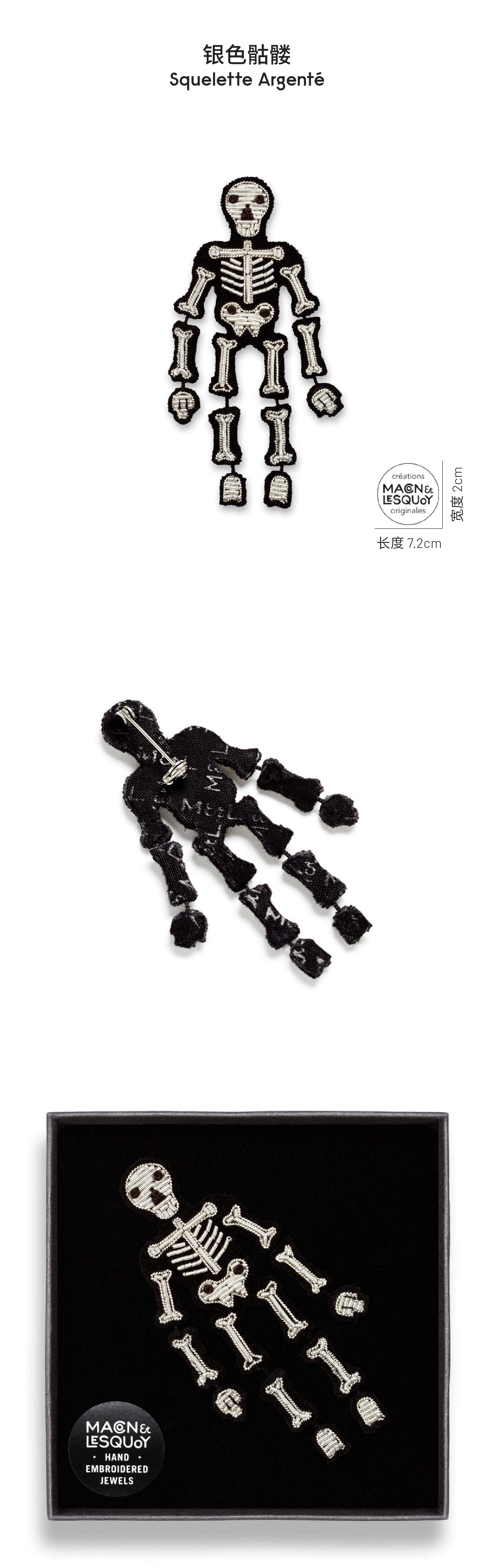 Macon&Lesquoy法国原创设计 银色骷髅 恐怖系列 M&L刺绣手工饰品胸针