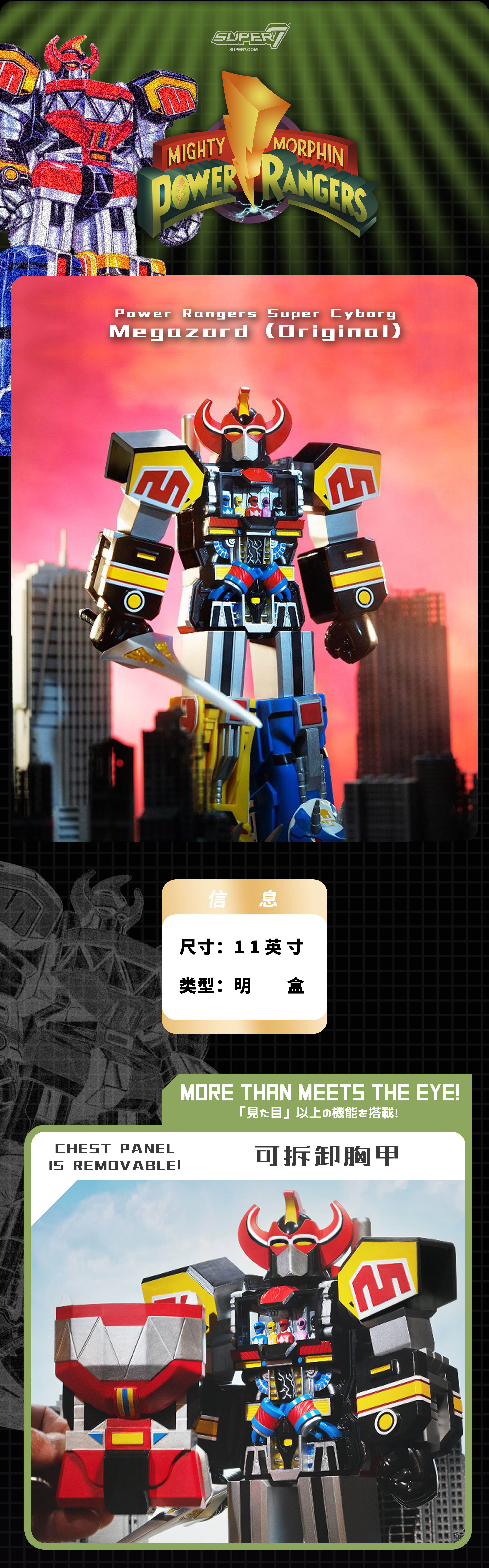 现货 Super7 恐龙战队 大兽神 Megazord 原色版 11英寸