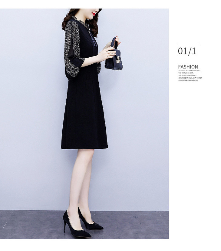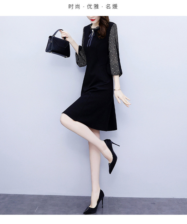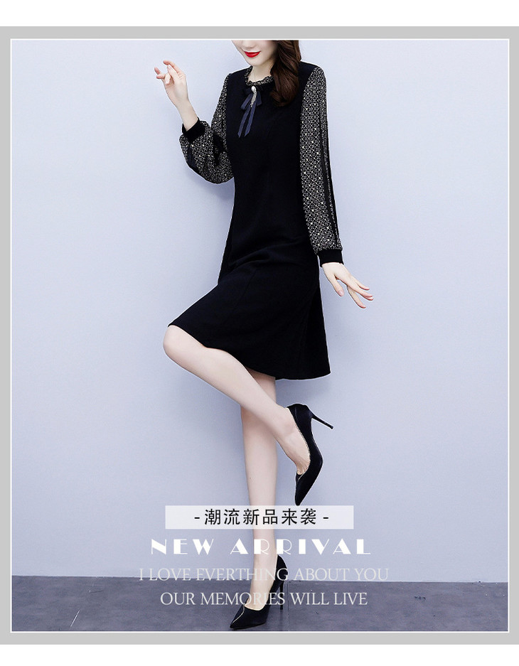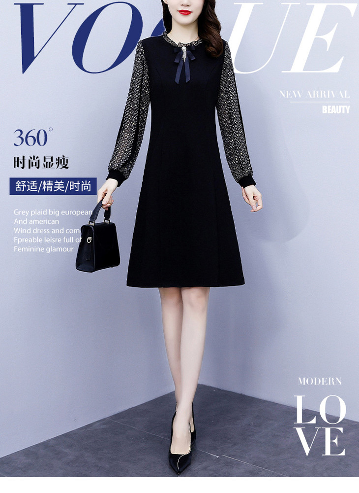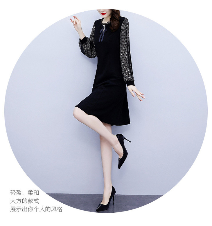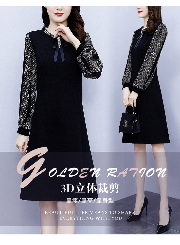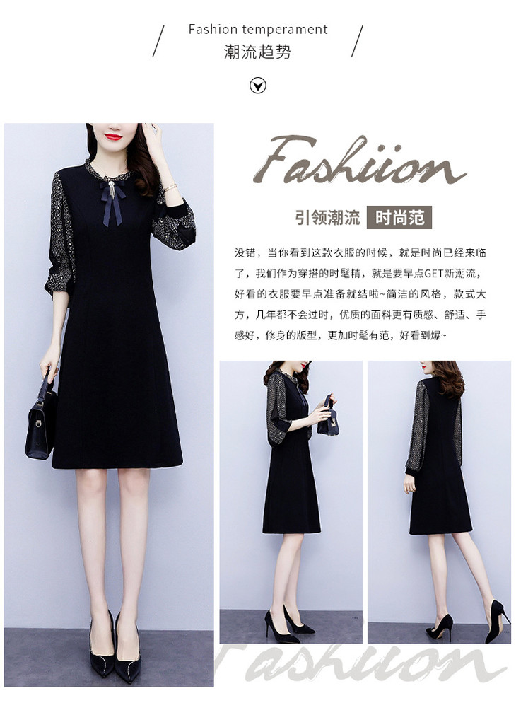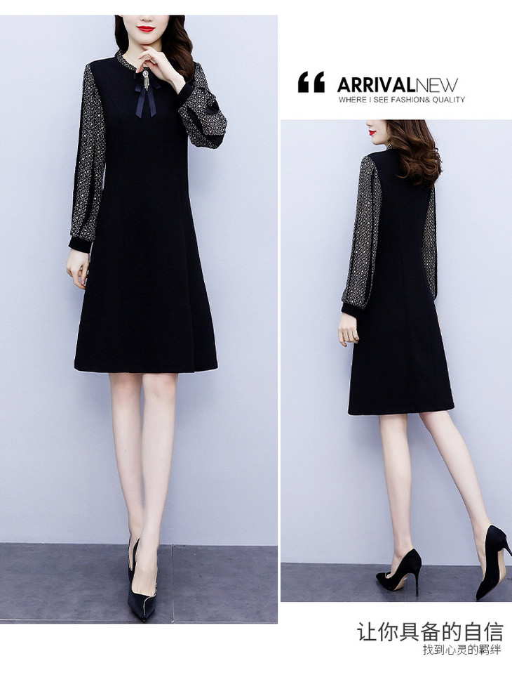 NYL37661新款时尚洋气圆领灯笼袖拼接假两件连衣裙