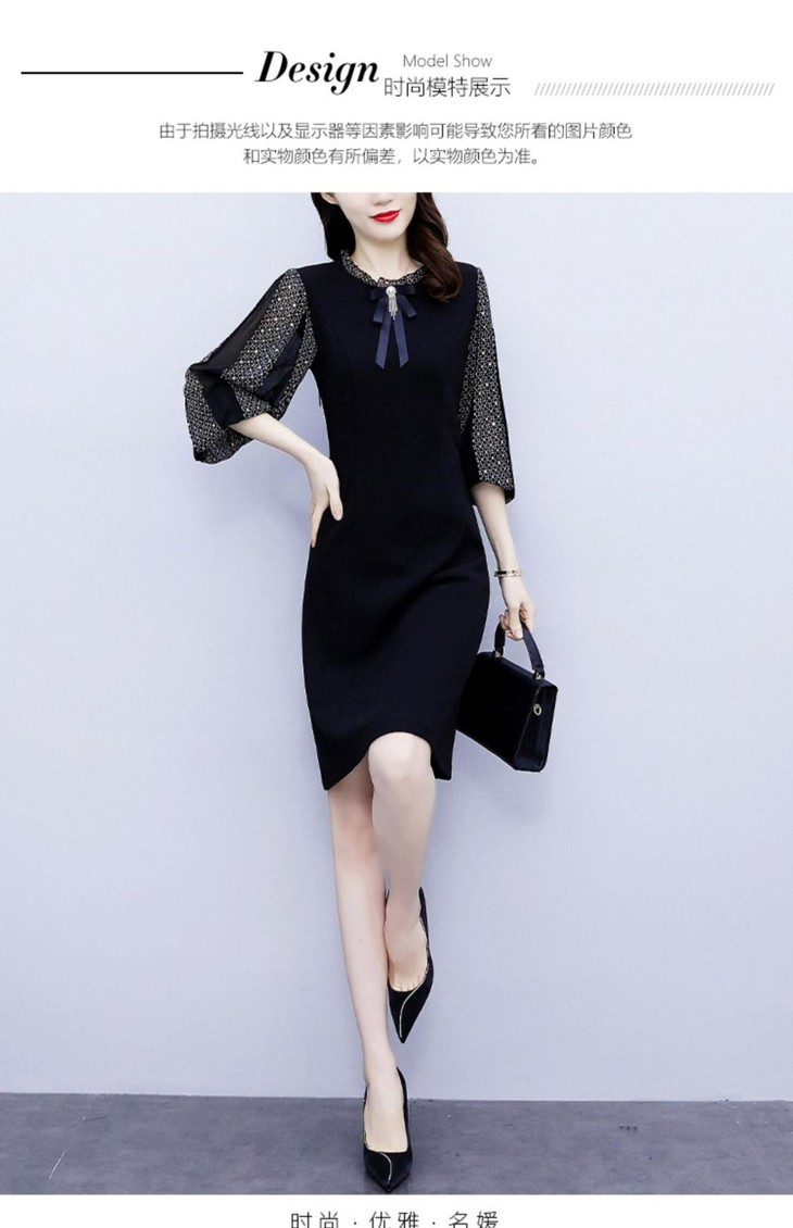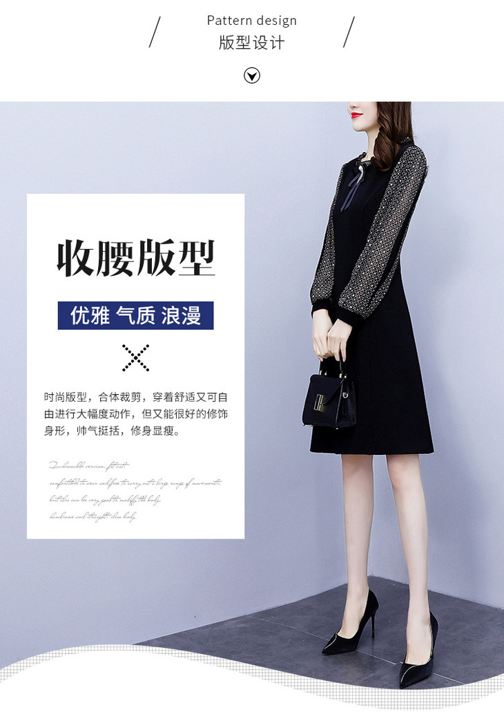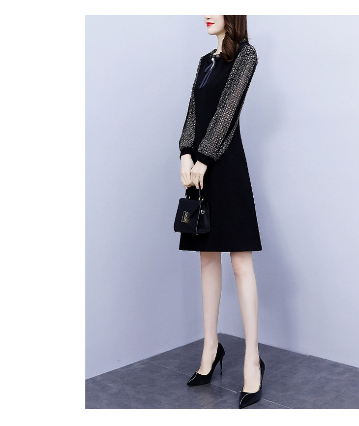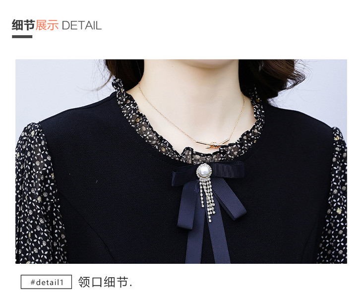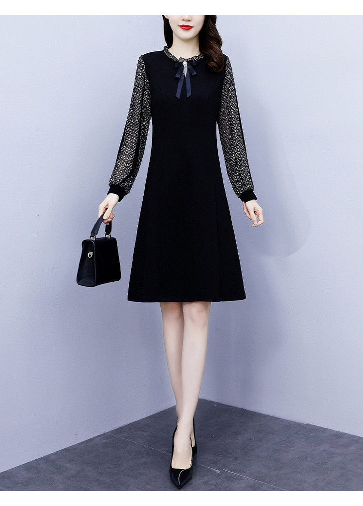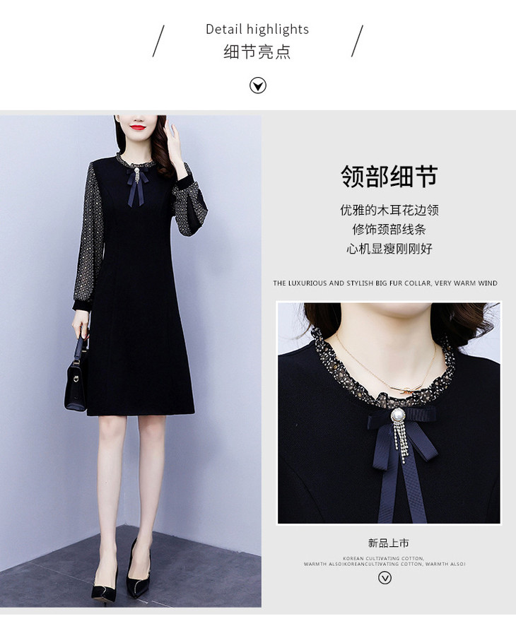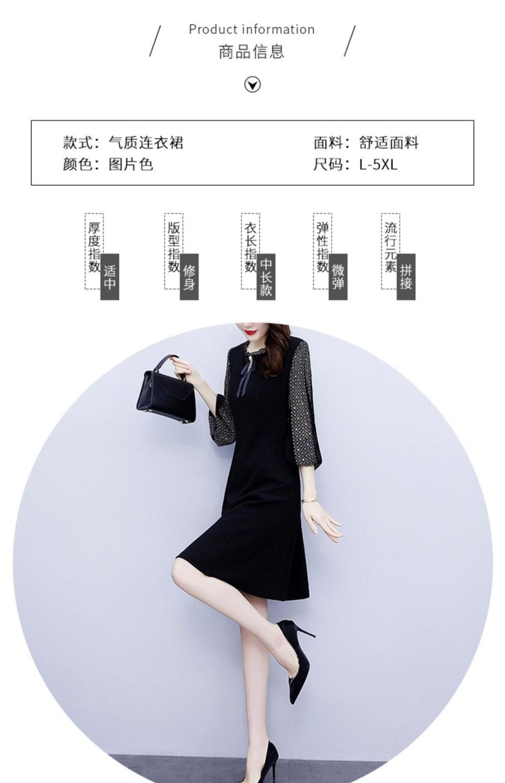 NYL37661新款时尚洋气圆领灯笼袖拼接假两件连衣裙